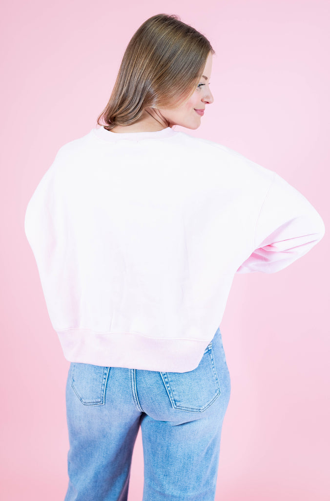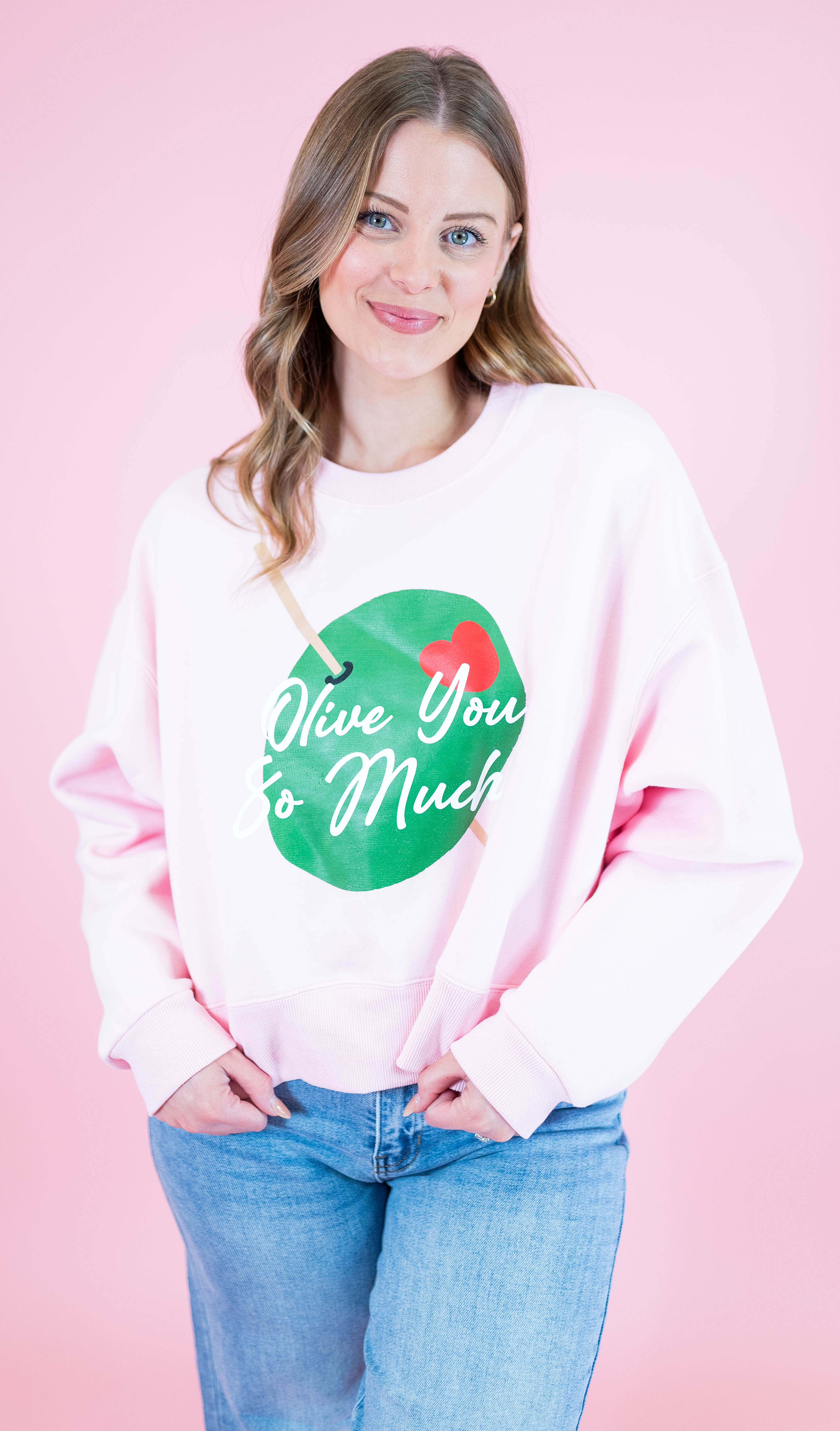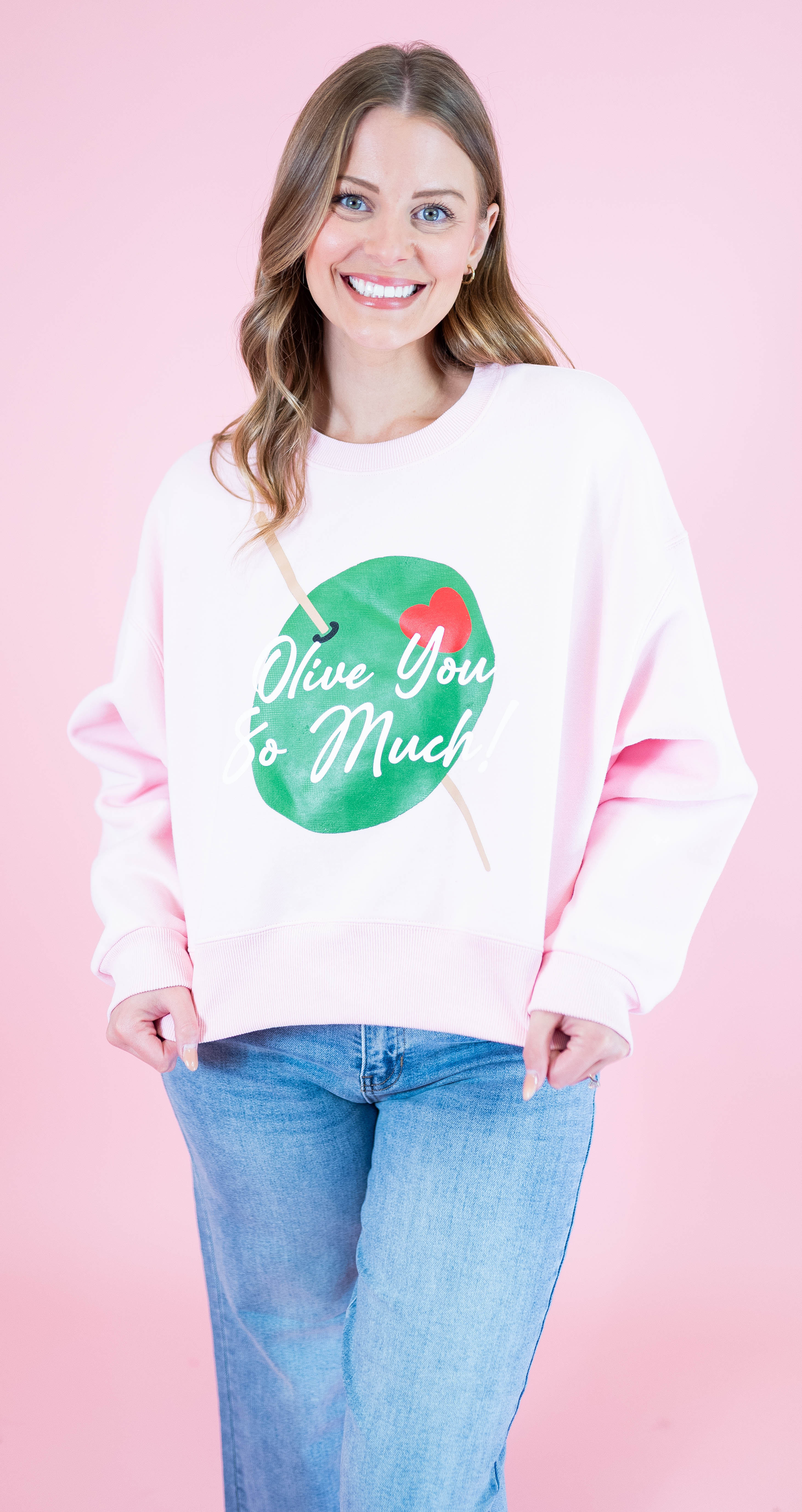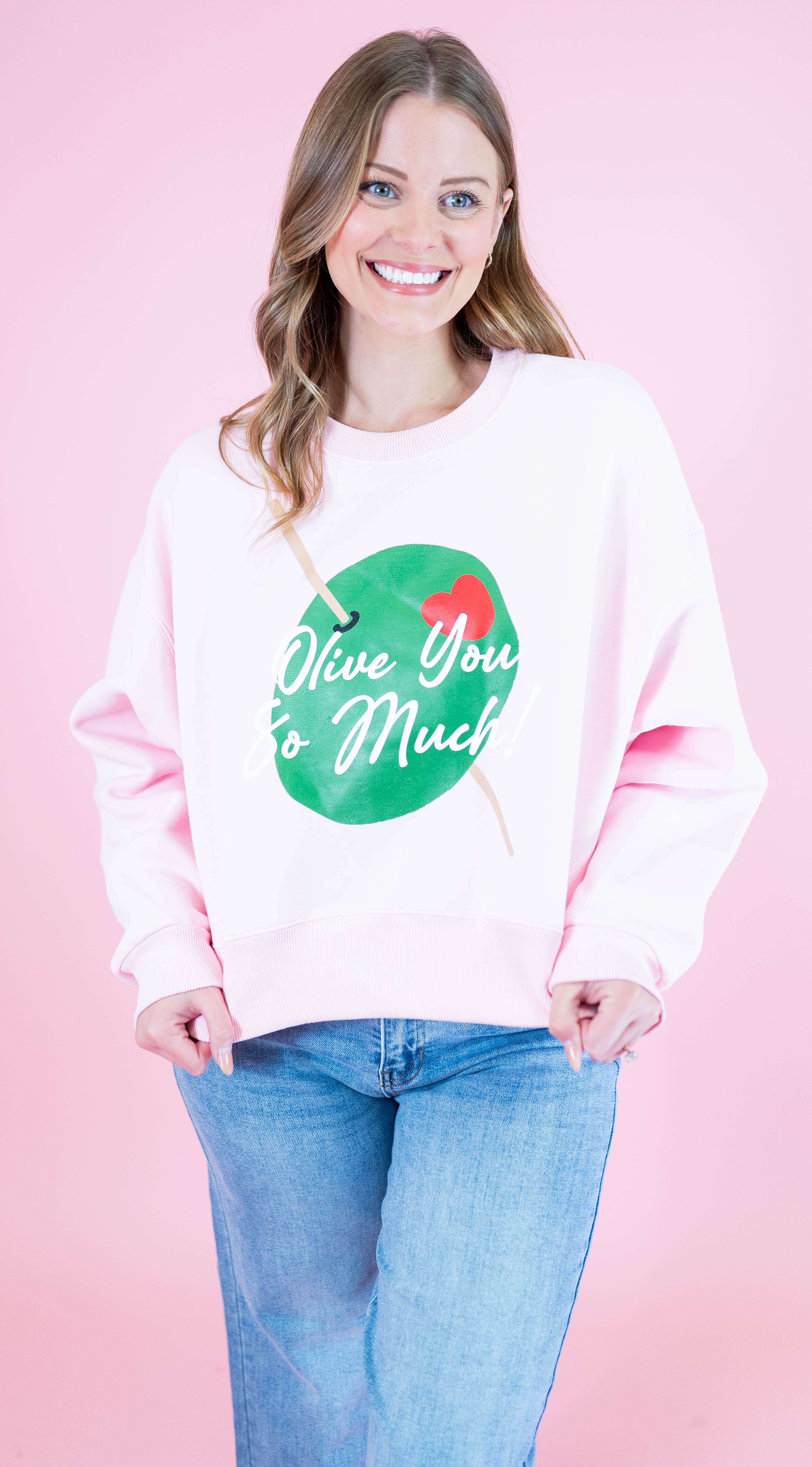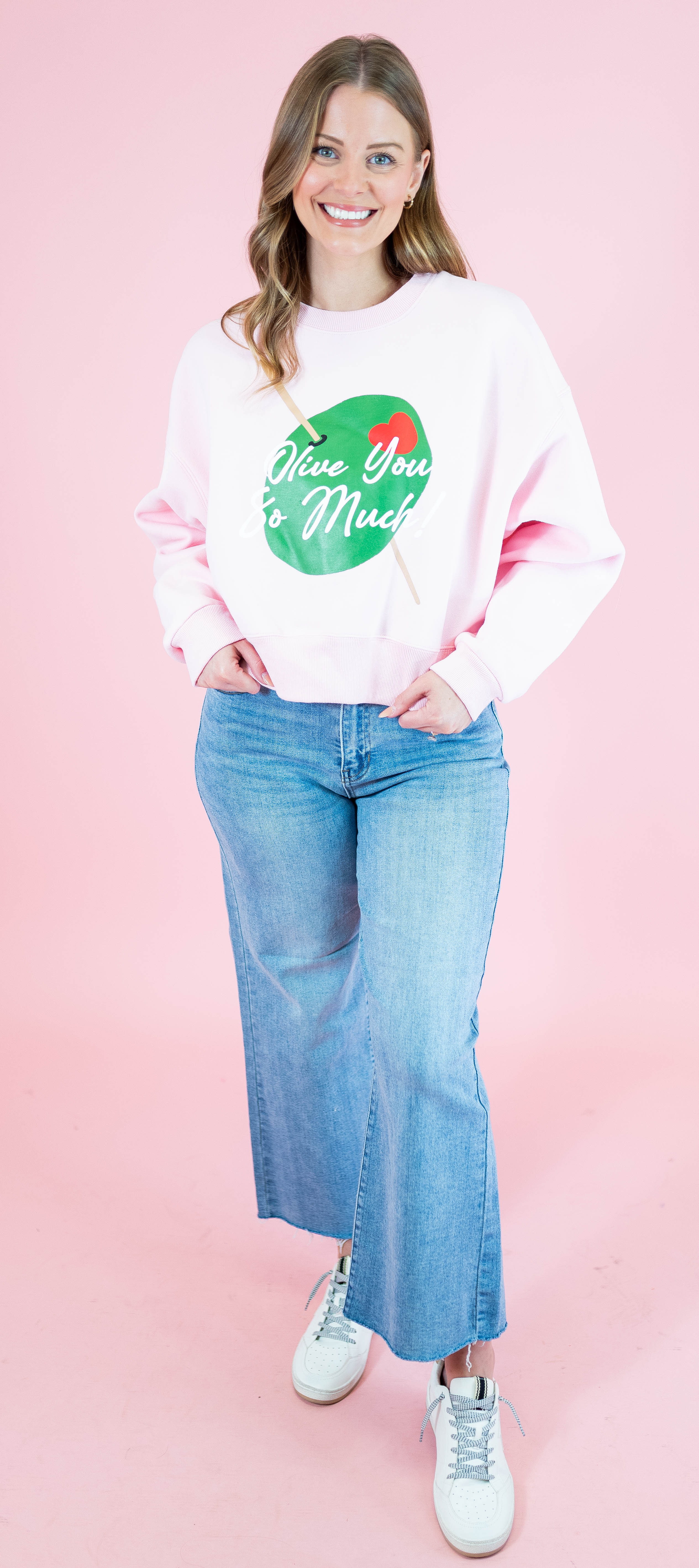 Embrace cozy vibes with the Olive You So Much Crop Sweatshirt—a playful twist on casual comfort.