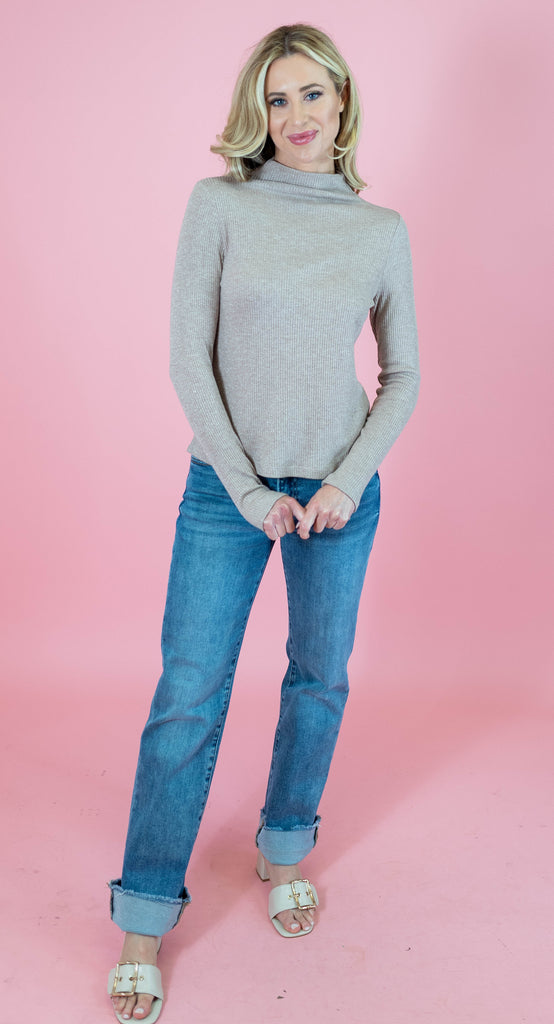 The Fallon Shimmer Mock Neck Top