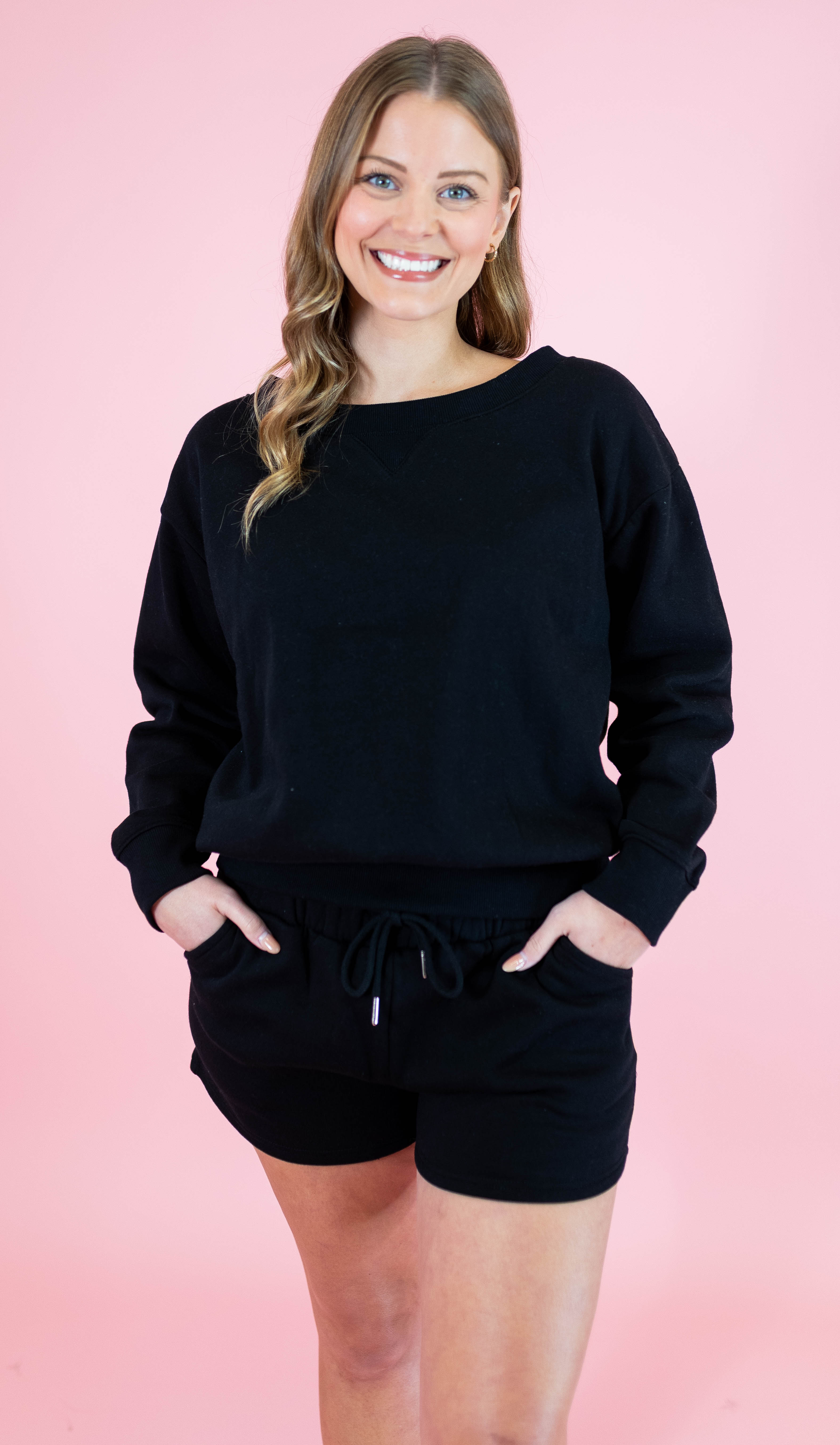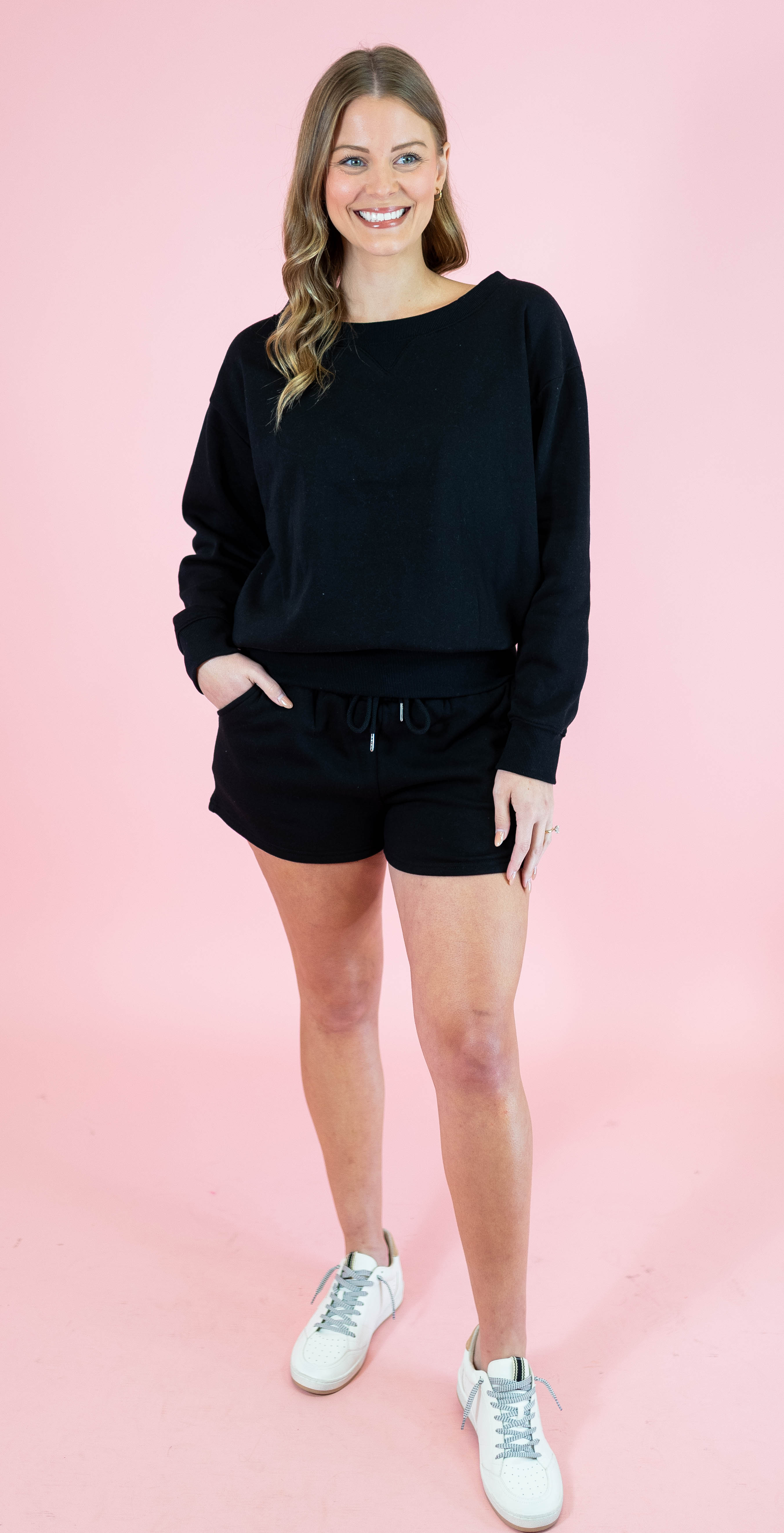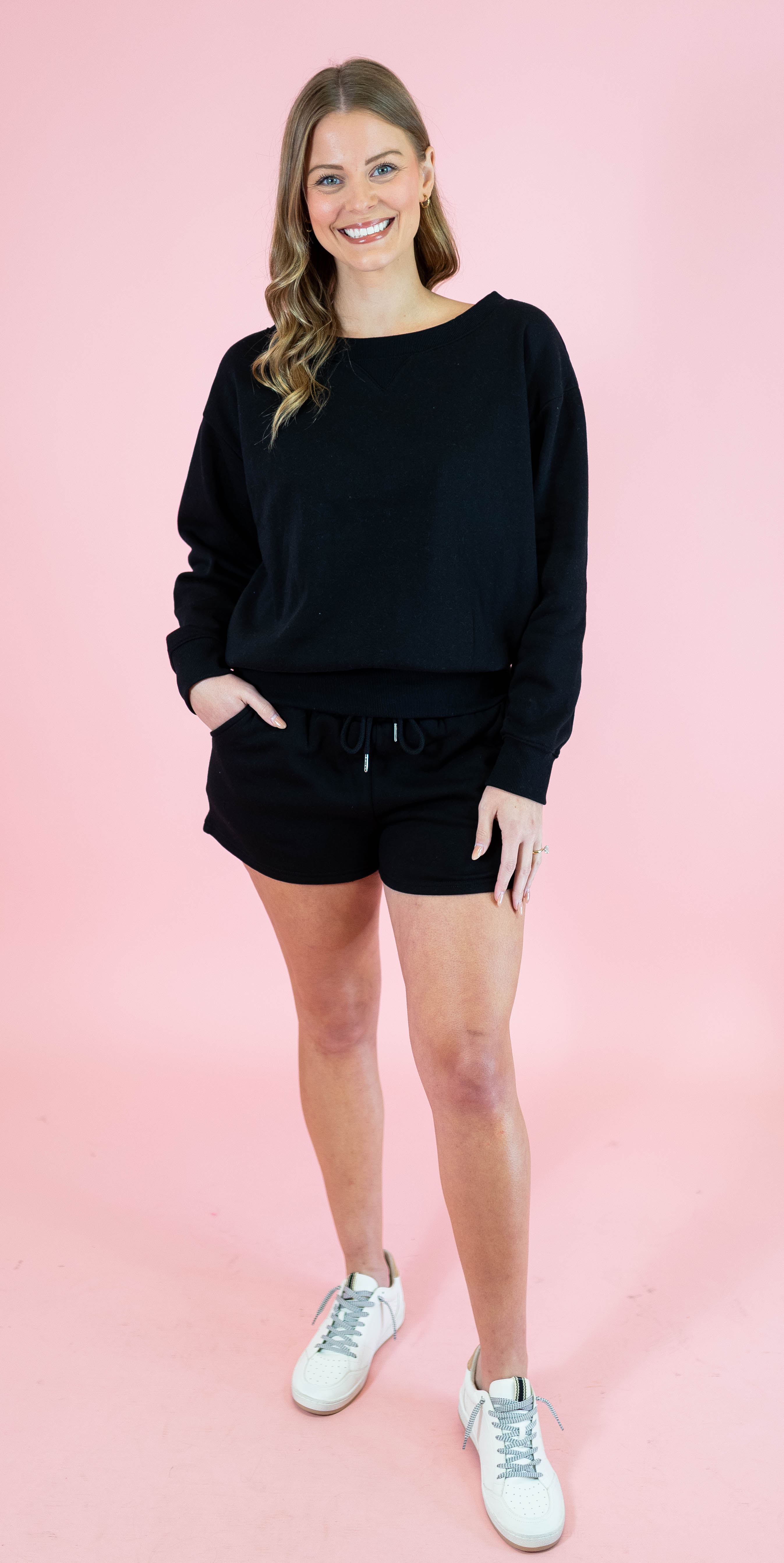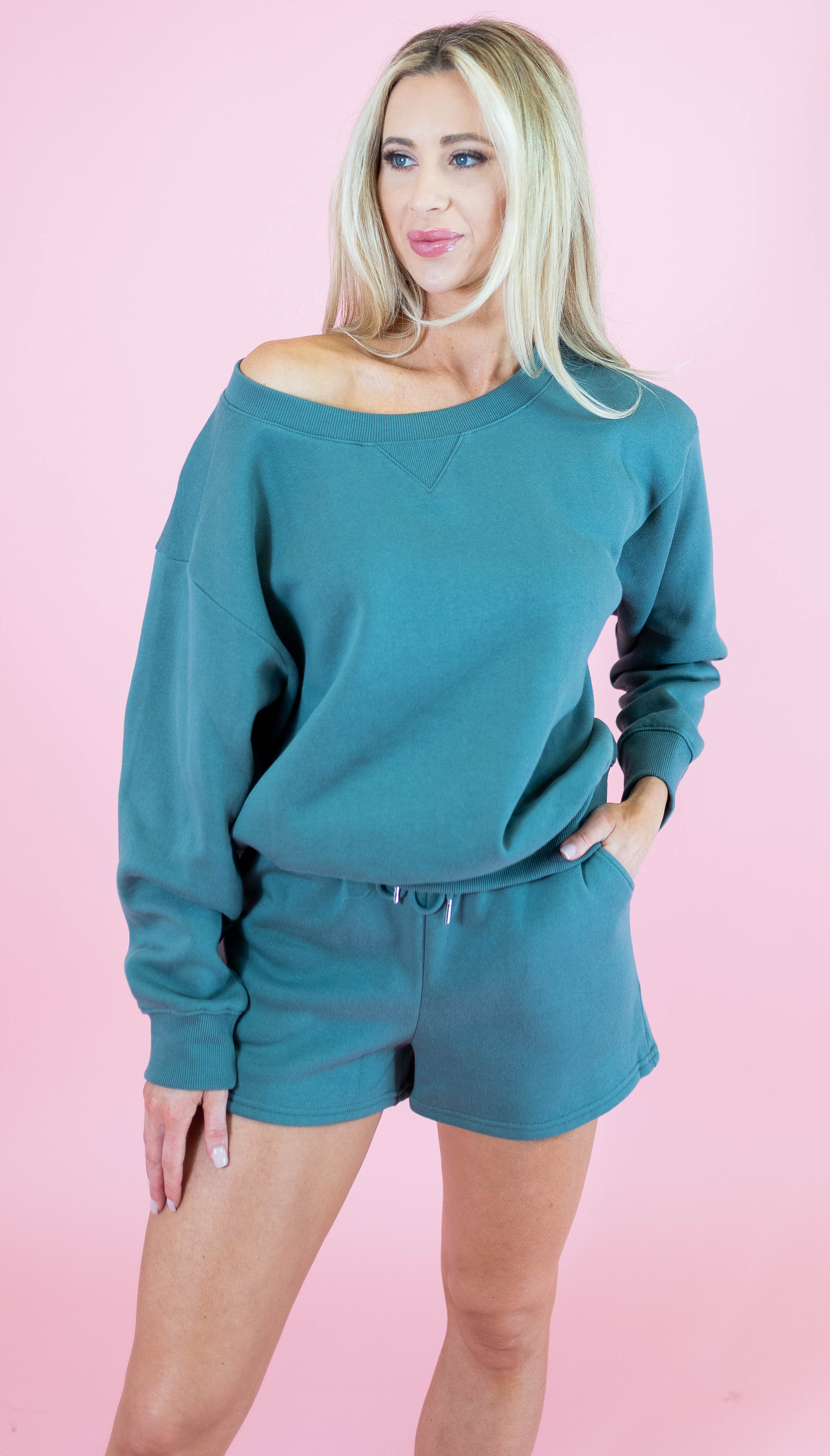 Zenana Fleece Boat Neck Sweatshirt & Shorts Set