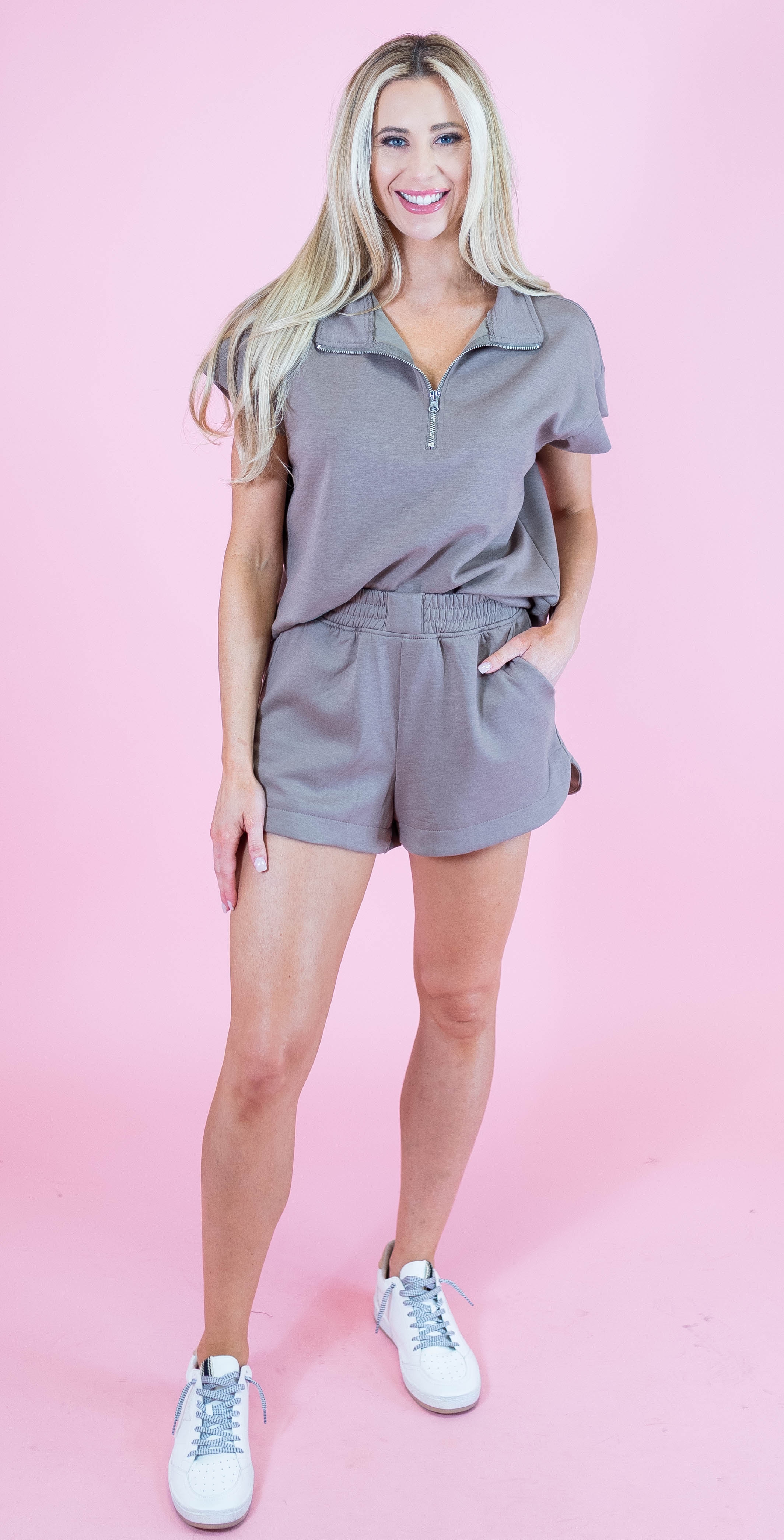 Zenana Scuba High Neck Half Zip Top & Shorts Set