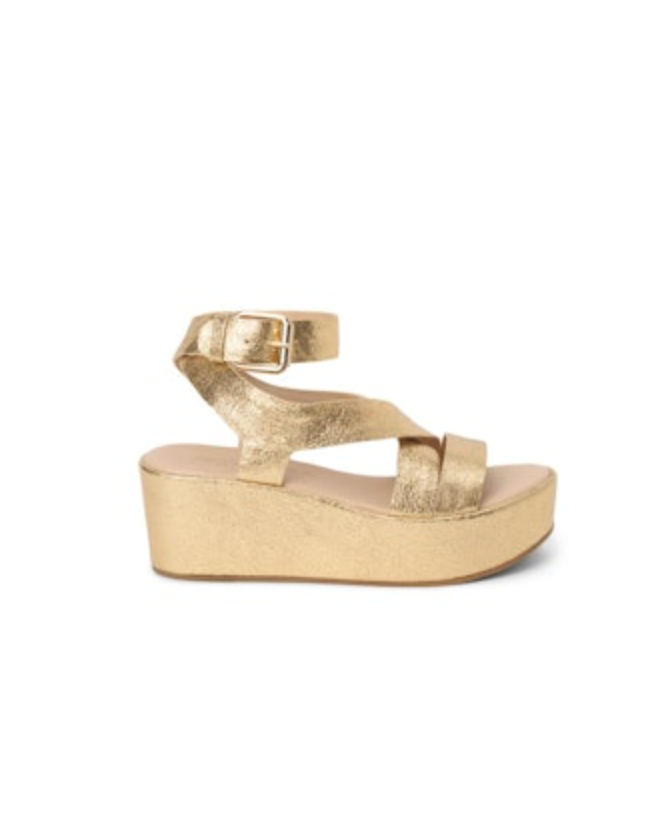 Pascal Platform Sandals - Gold Crinkle Leather