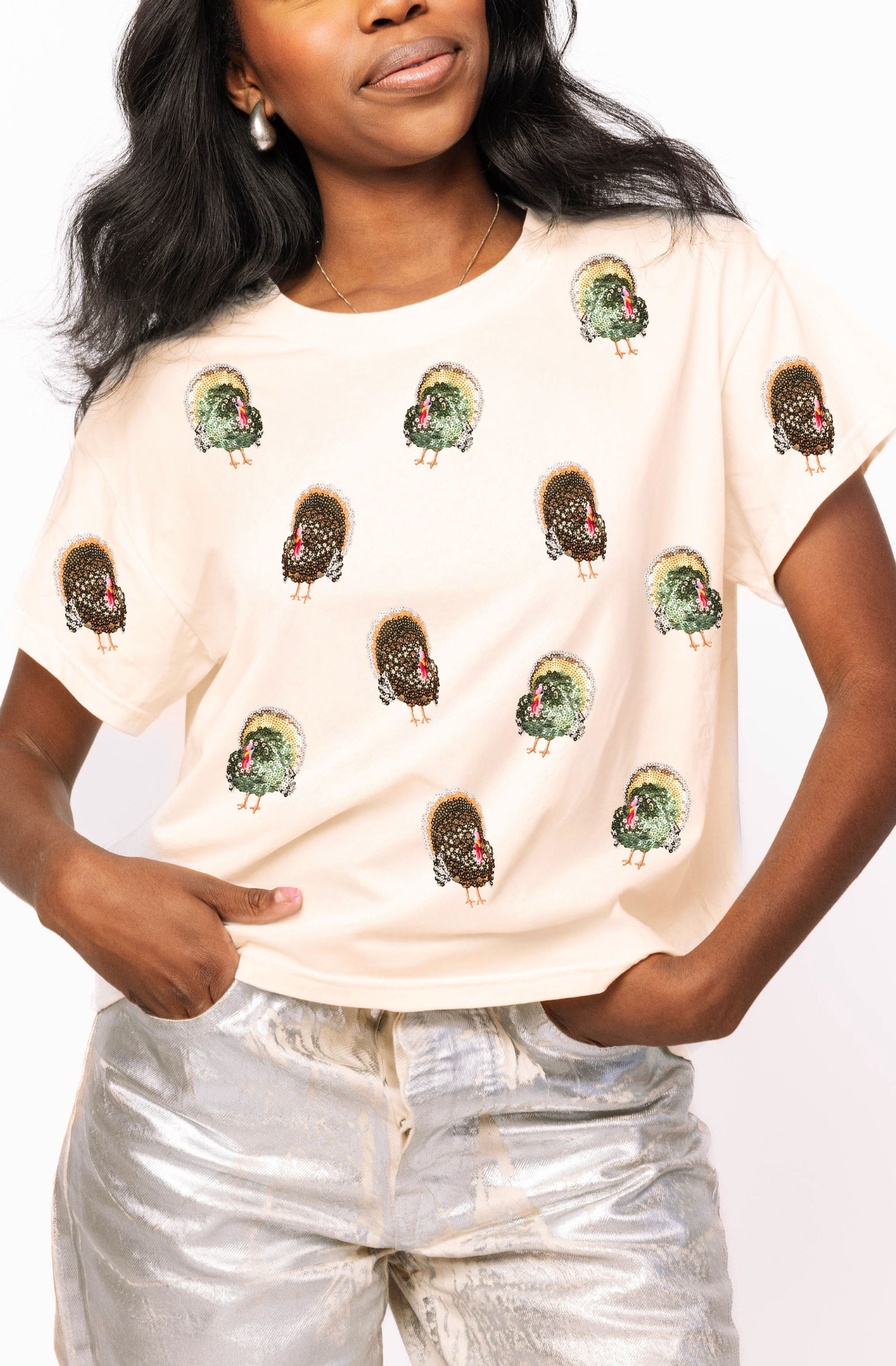 Queen Of Sparkles: Beige Small Turkey Icon Tee