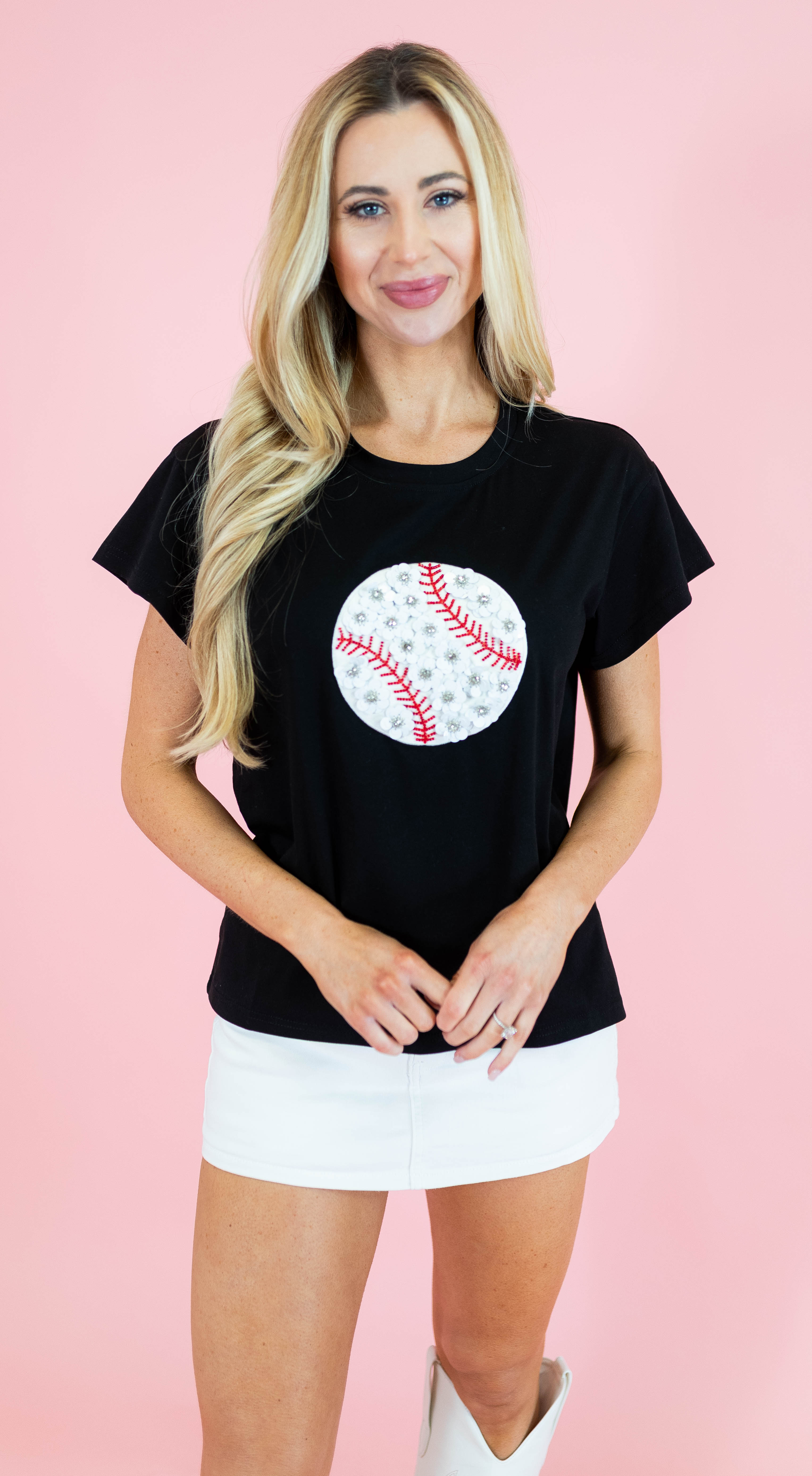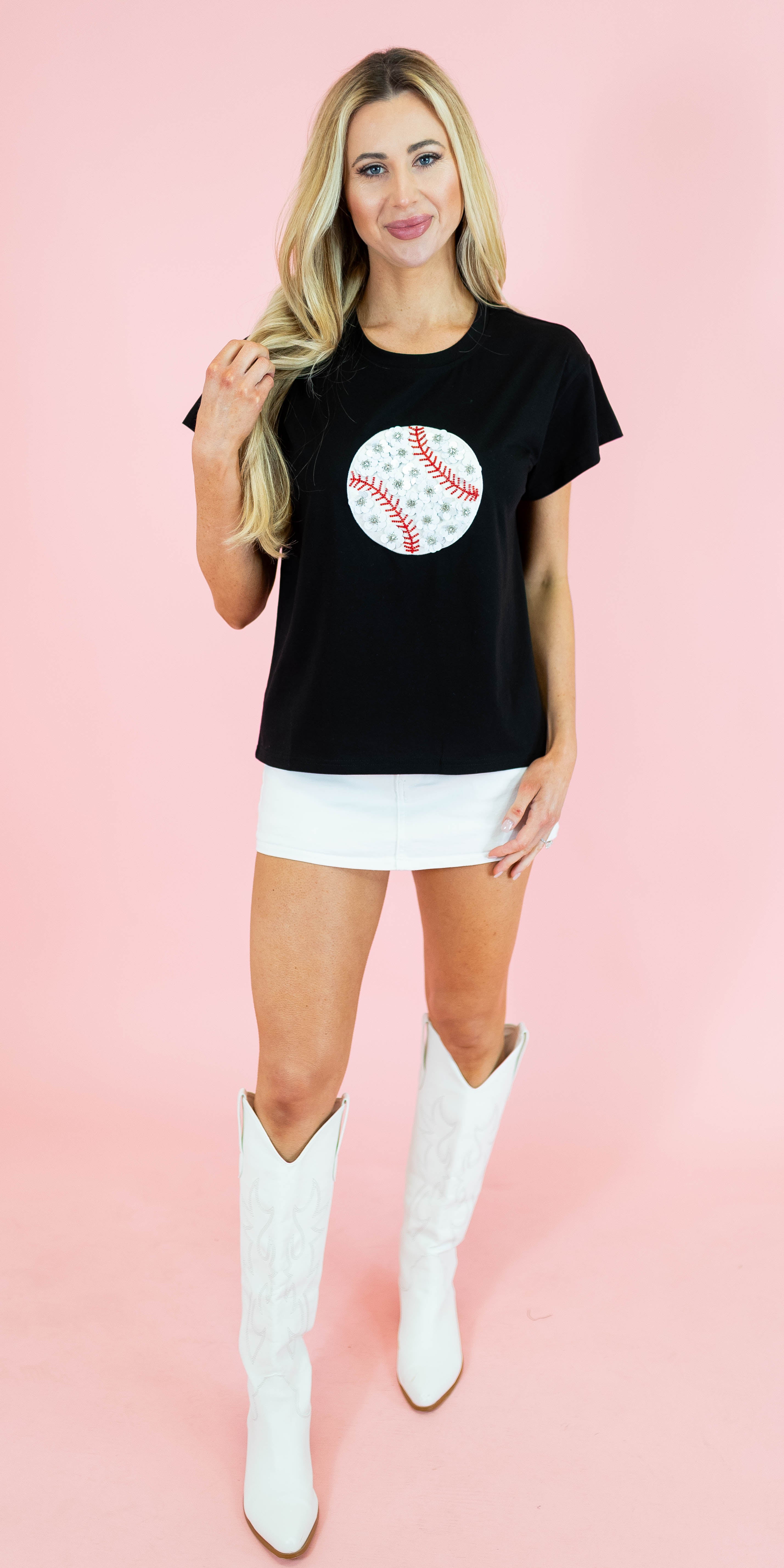 Step up to the plate in style with this Queen Of Sparkles black flower baseball tee that's ready for game day or any day you want to feel like a superstar. The sparkly floral design transforms a classic baseball tee into a show-stopping statement piece that celebrates your love of the sport with serious flair. Perfect for cheering from the stands, casual team hangouts, or just channeling that athletic-chic energy wherever you go. This tee proves you can be both a sports enthusiast and a total sparkle queen.