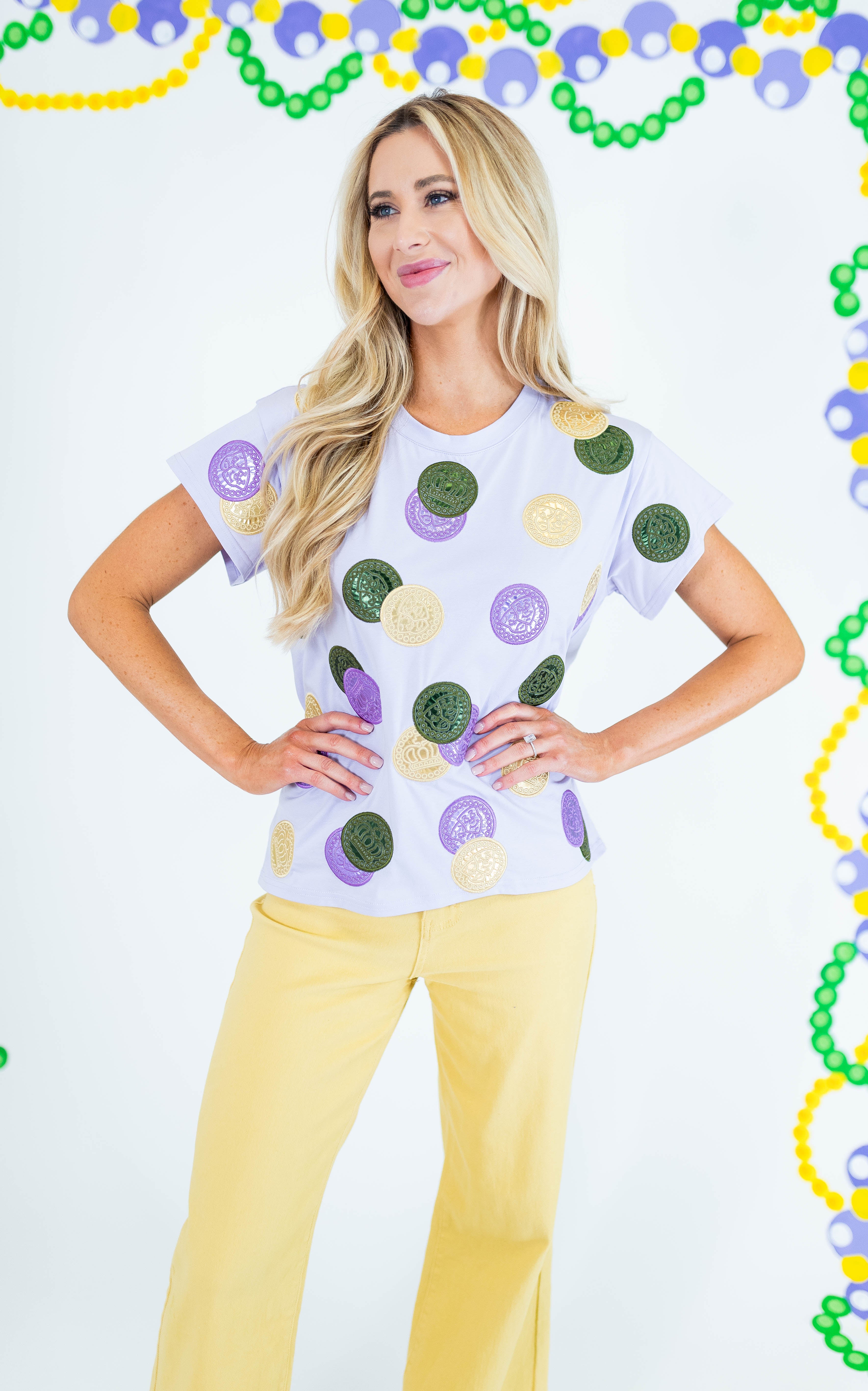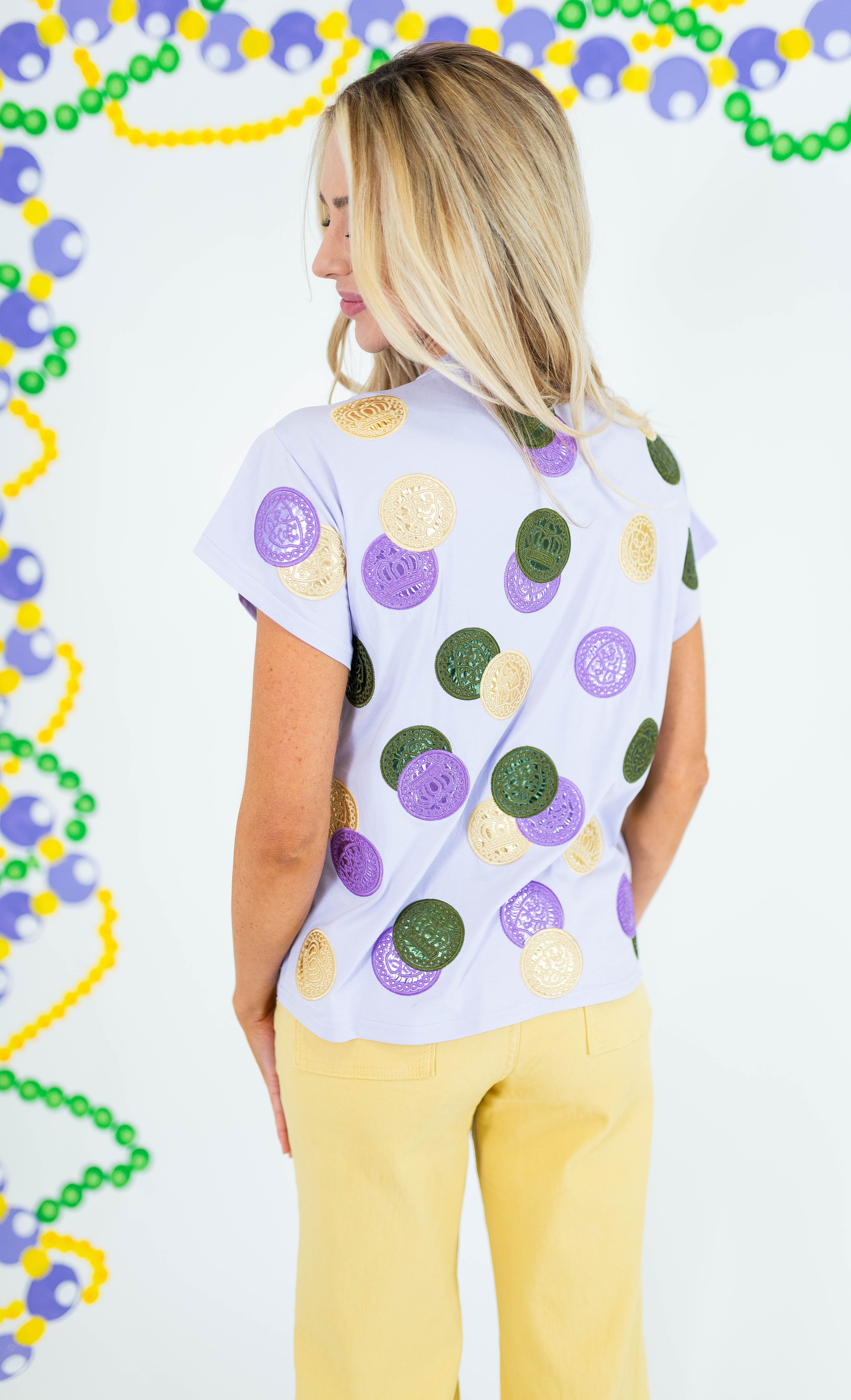 Queen Of Sparkles: Lavender Mardi Gras Doubloon Tee