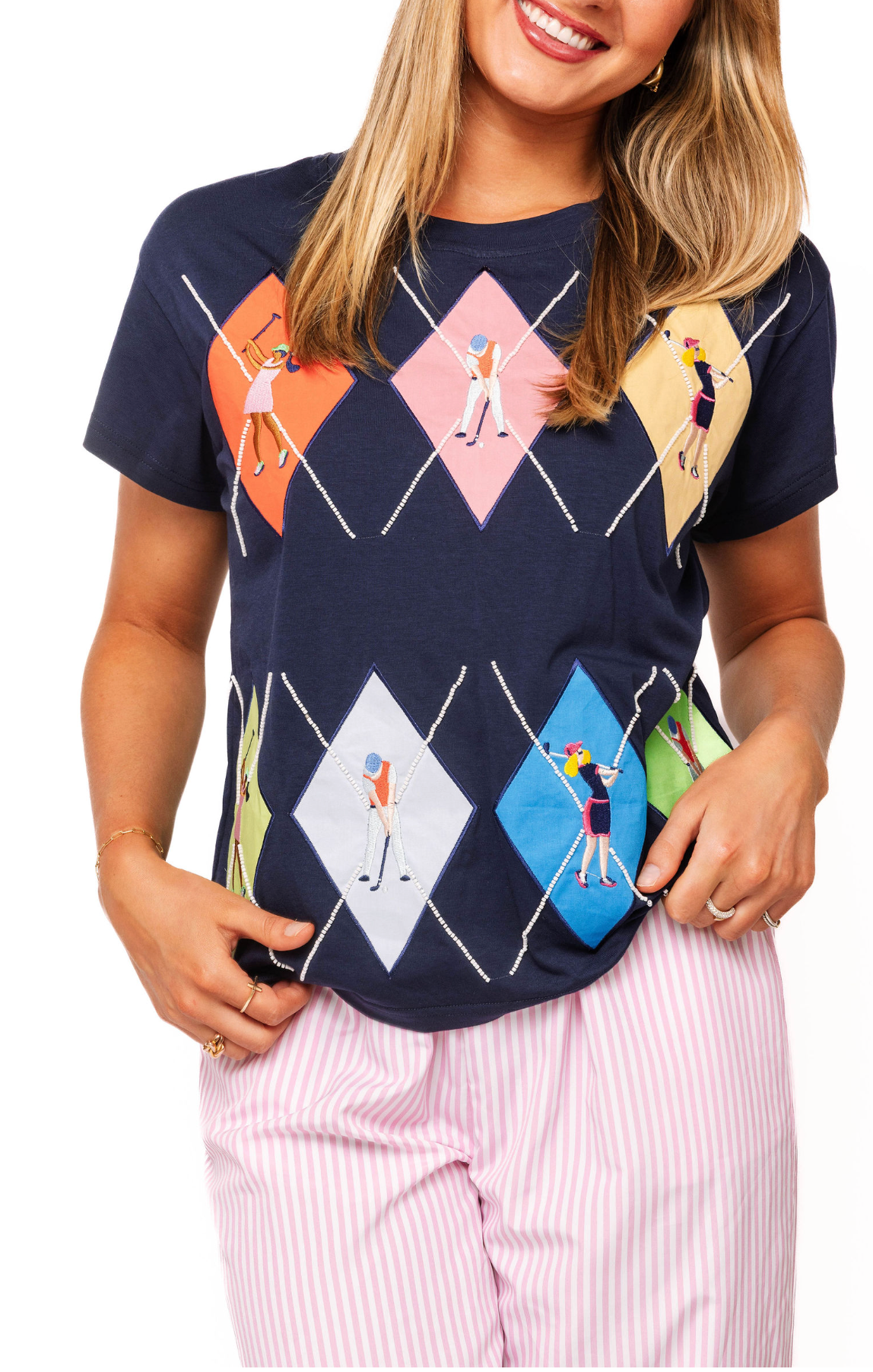 Queen Of Sparkles: Navy Multi Argyle Golfer Tee