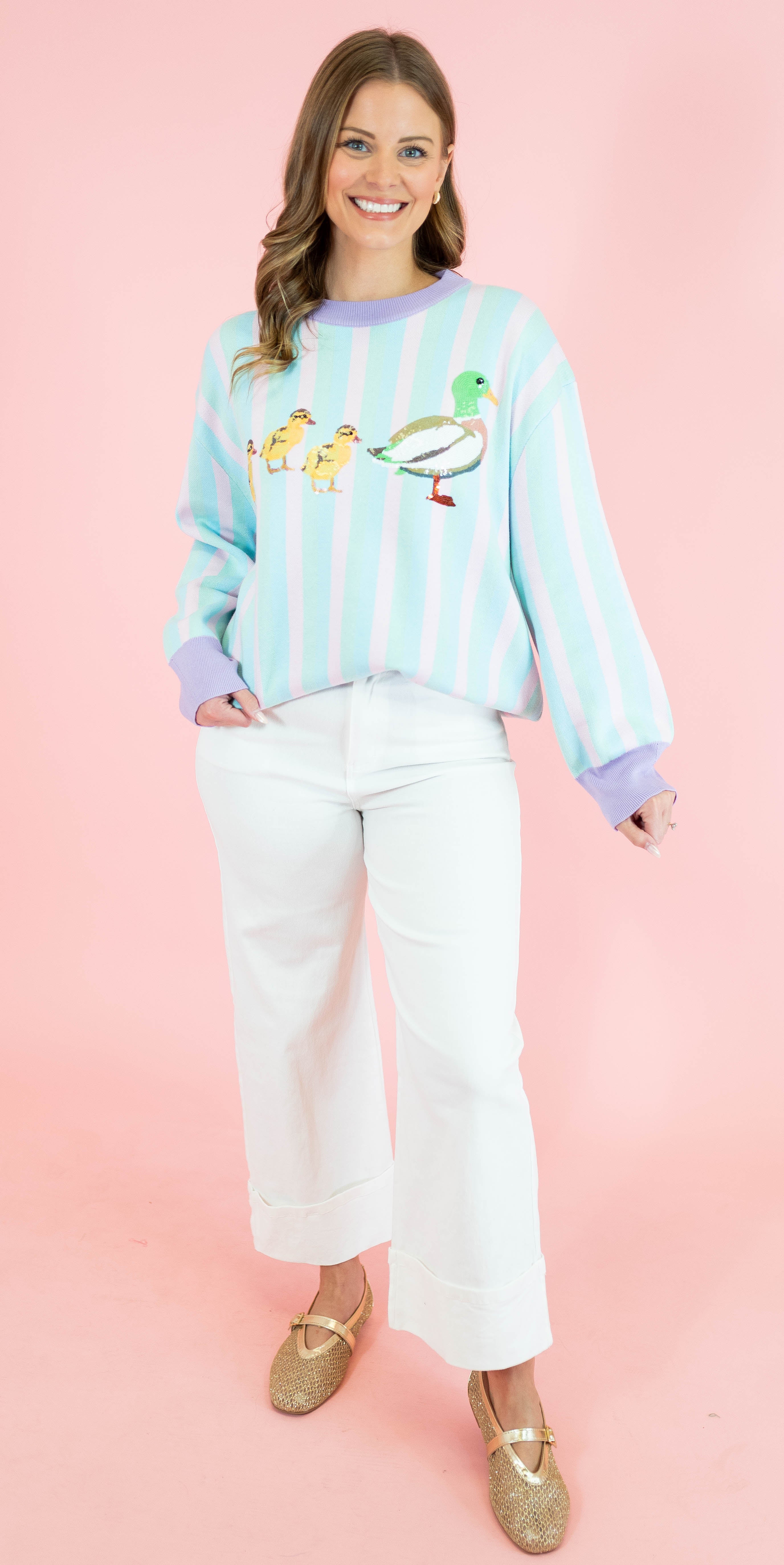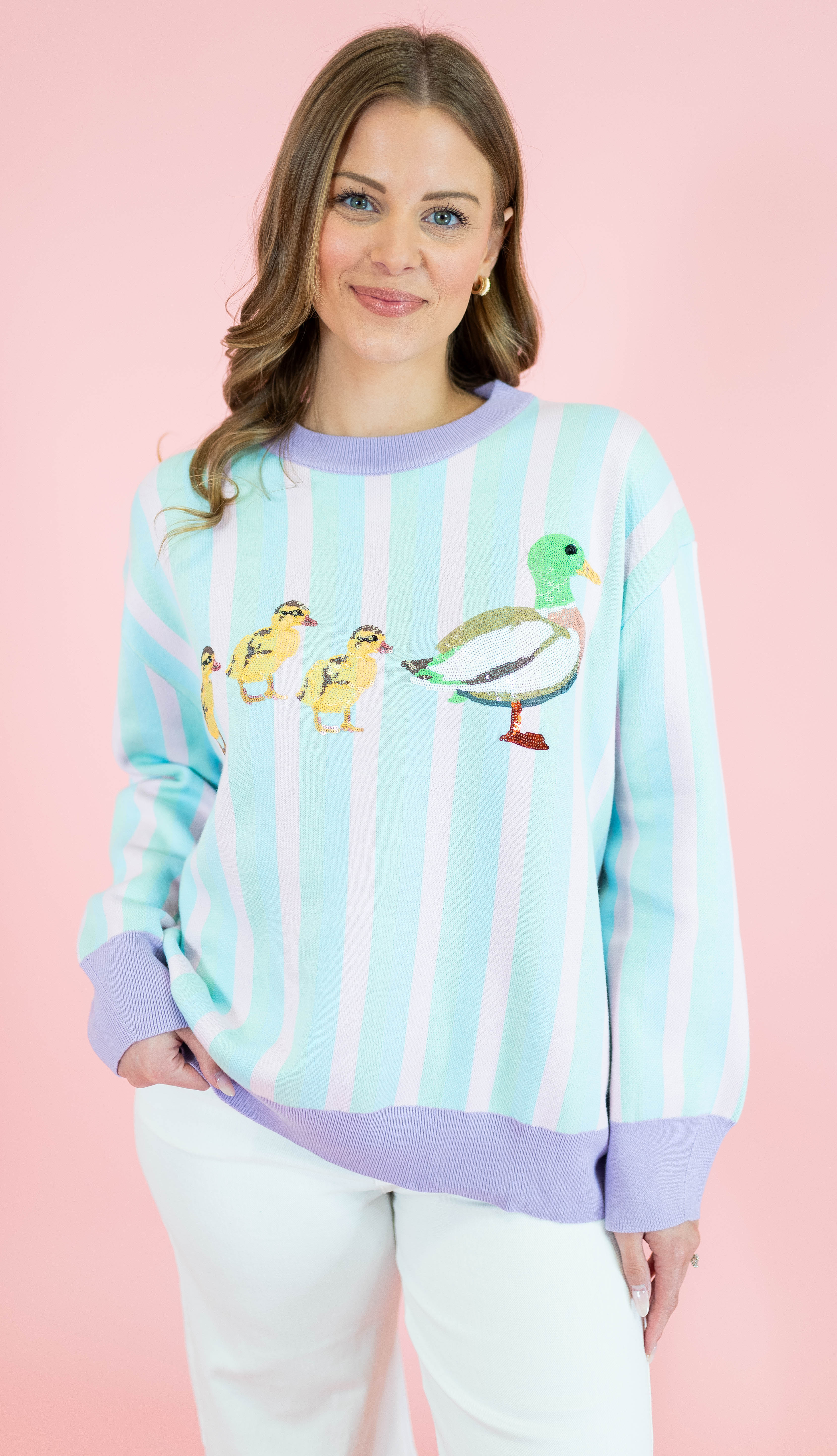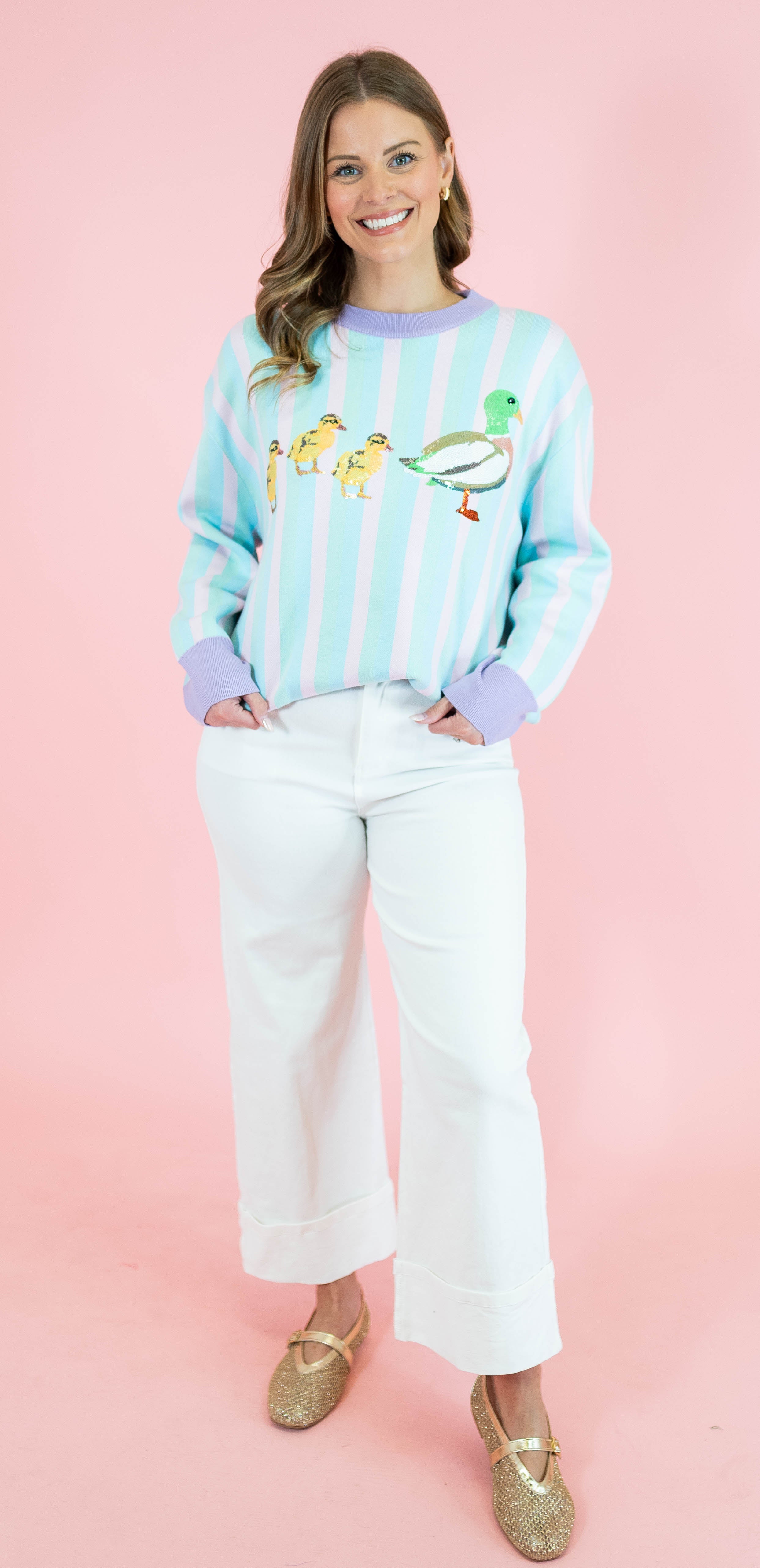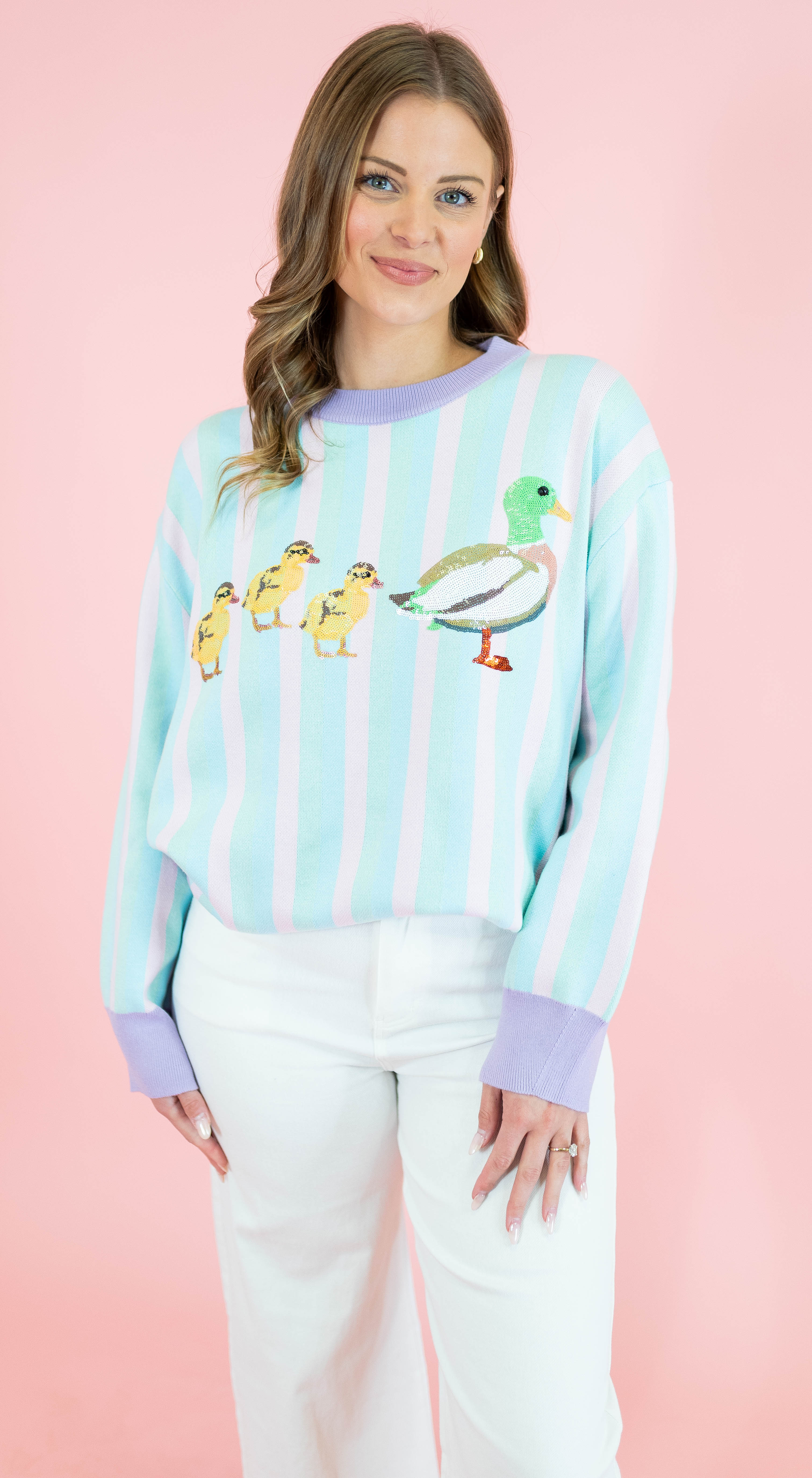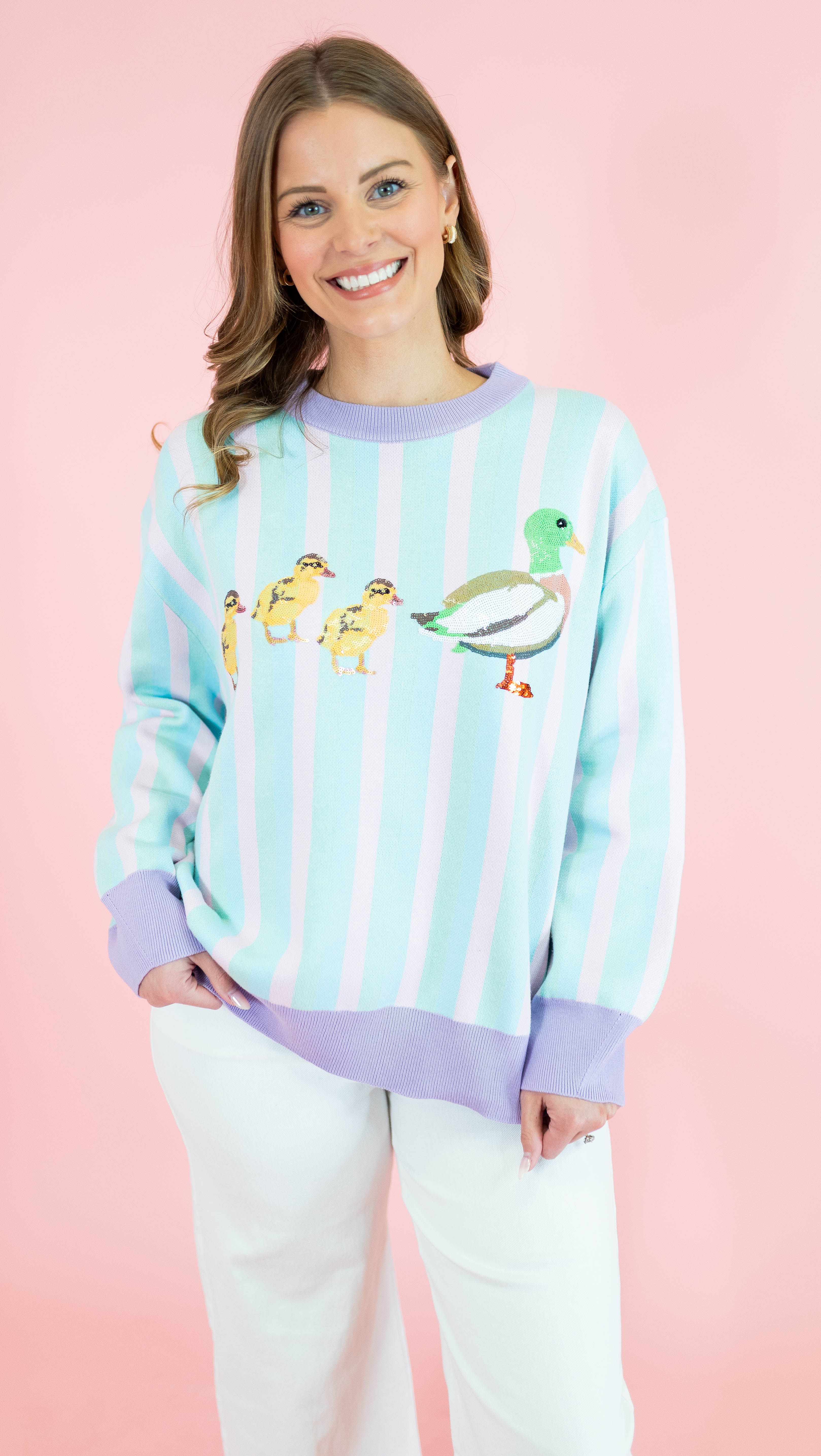 Queen Of Sparkles: Pastel Striped Duck & Chicks Sweater