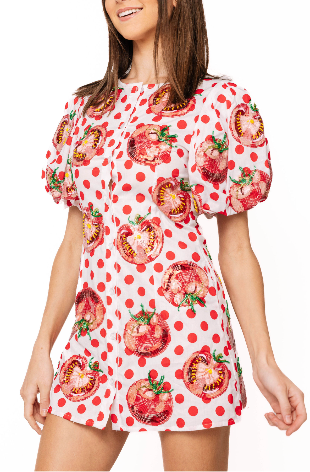 Embrace your inner tomato queen in this whimsical Queen Of Sparkles button-up dress, bursting with cheerful white and red polka dots. Perfect for channeling Italian festival vibes and spreading joy wherever you go, this playful piece celebrates bold self-expression and fun-loving style. Whether you're dancing through summer celebrations or making a statement at your next gathering, this dress delivers sparkle and personality in every polka dot. A delightful choice for anyone ready to turn heads and have a blast doing it.