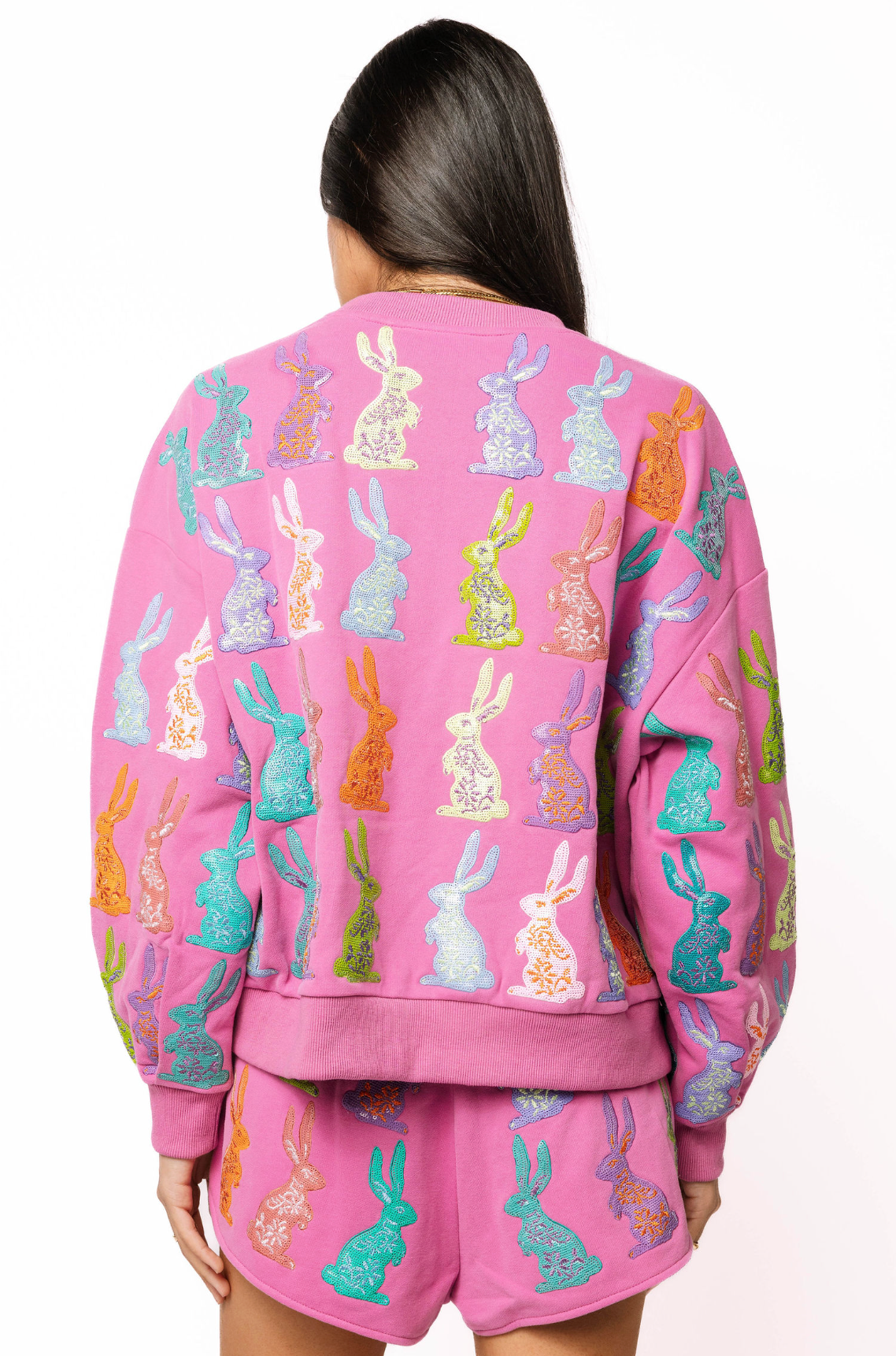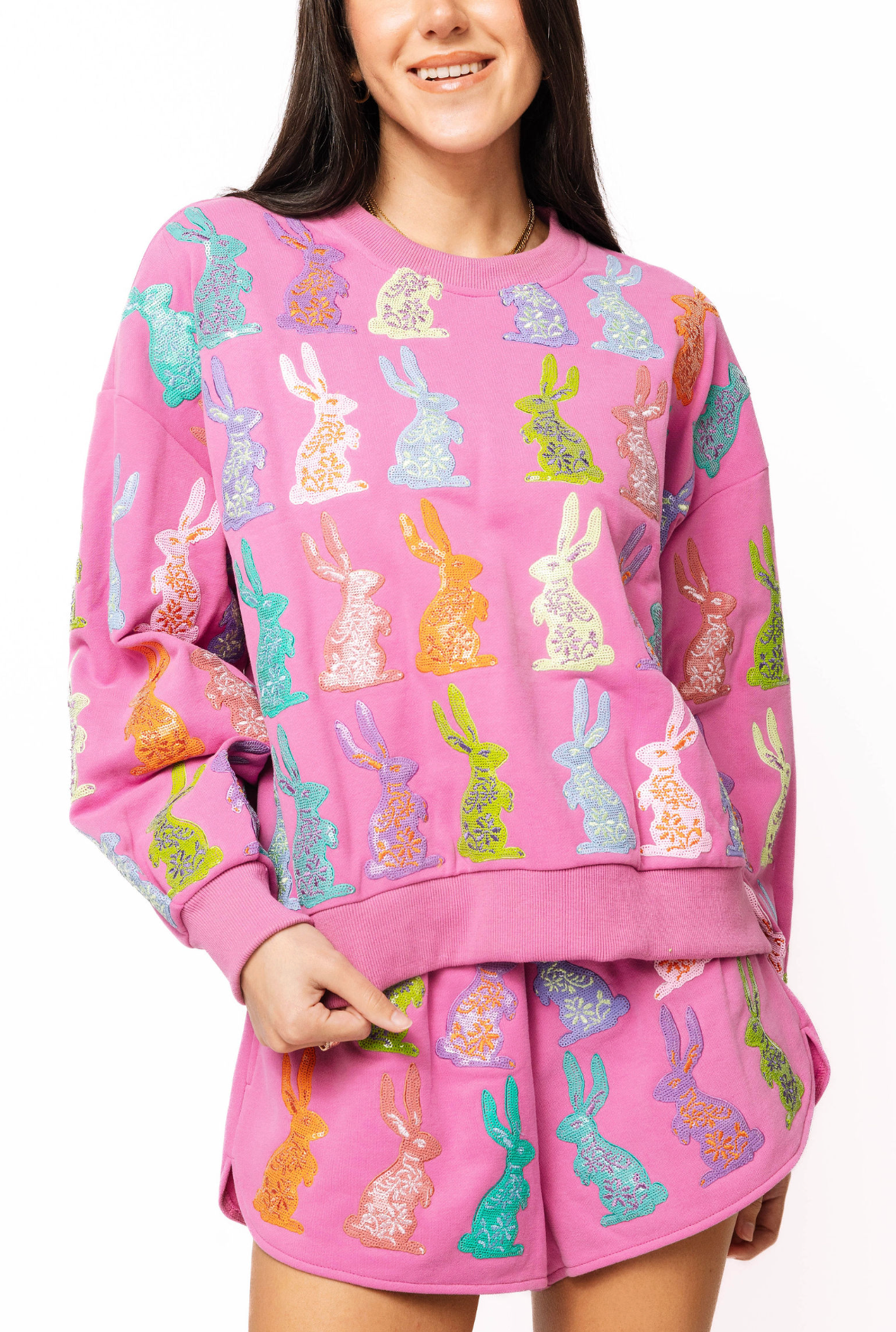 Queen Of Sparkles: Purple Multi Easter Bunny Sweatshirt