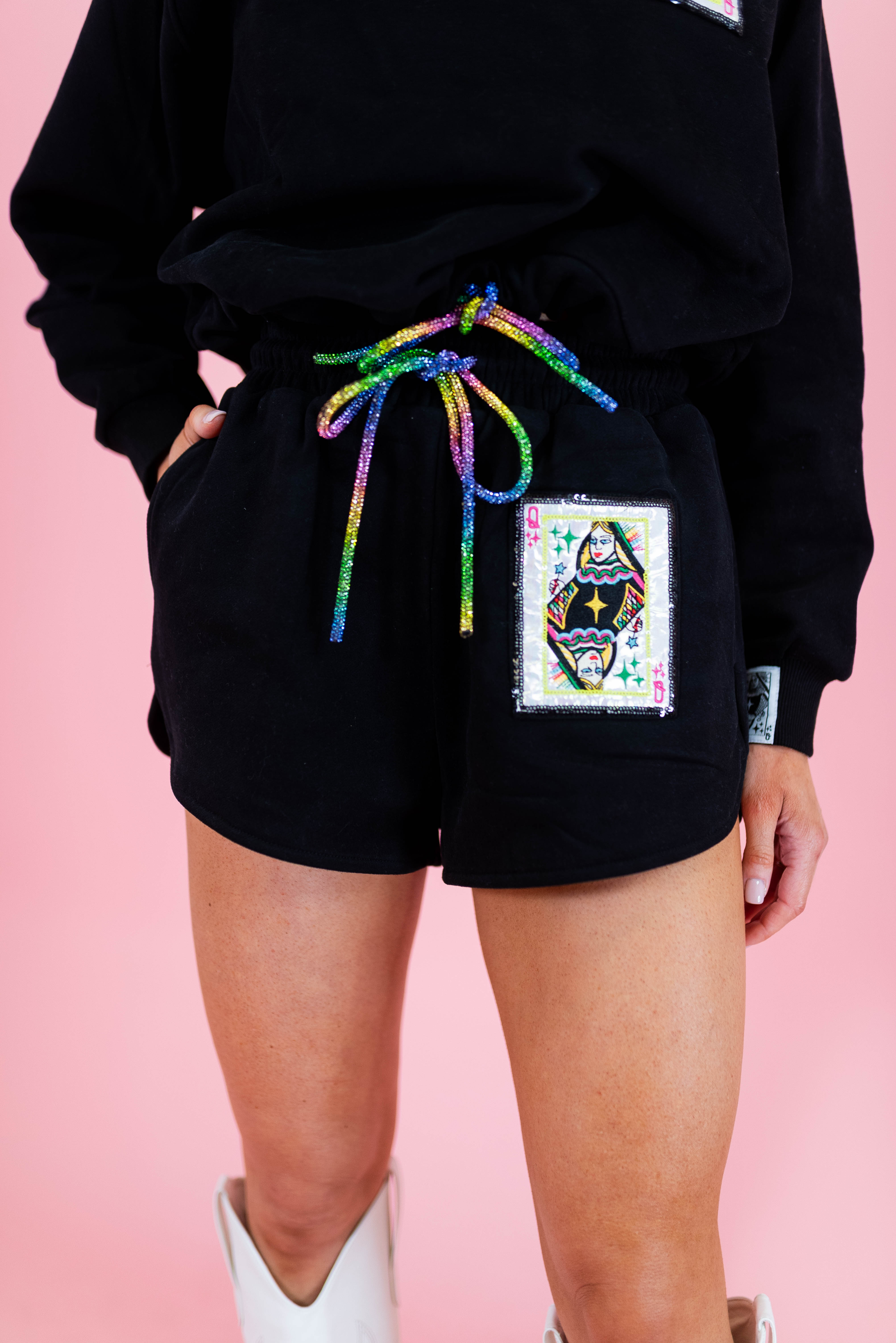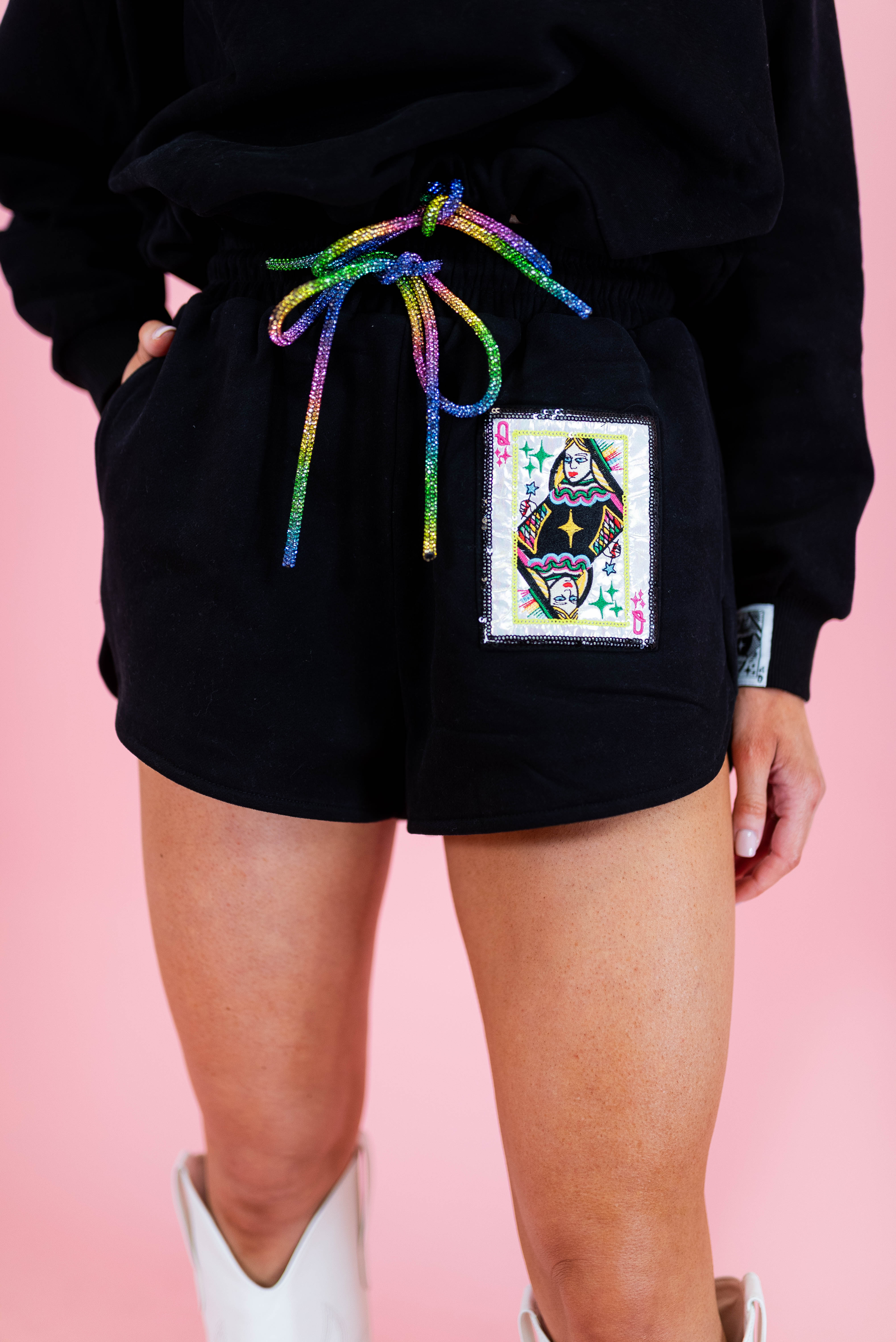 Queen Of Sparkles: Queen Card Rhinestone Tie Shorts