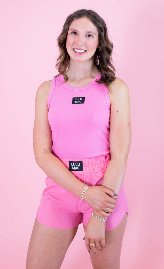 Elevate your summer wardrobe with our DD-TANK BUBBLEGUM! This tank is perfect for any active day, whether you're hitting the gym or relaxing in the sun. Pair it with our DD-SHORT for a cute and comfortable look. Make this essential piece a staple in your summer wardrobe!