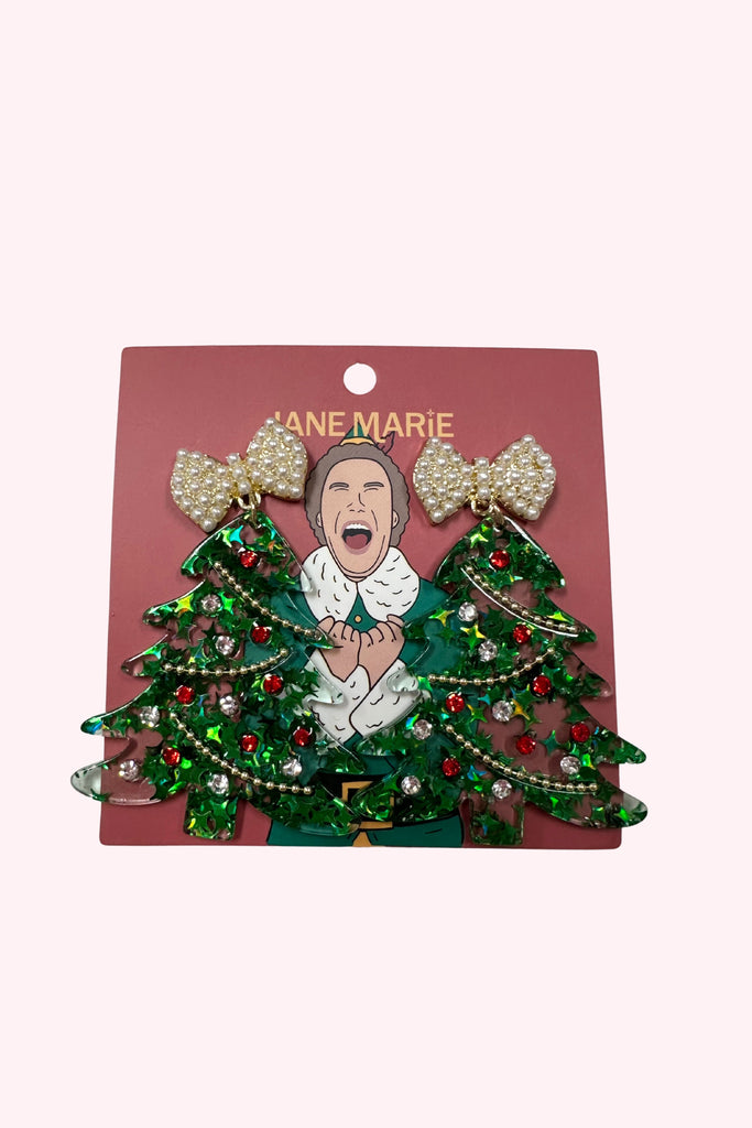 Celebrate the holiday season with these charming Green Christmas Tree Earrings, featuring a festive green and red acrylic tree accented by a delicate pearl bow. The clear acrylic adds a modern twist, while the pearl bow brings an elegant touch, perfect for adding sophistication to your holiday ensemble. Lightweight and unique, these earrings are ideal for spreading cheer at parties or giving as a thoughtful seasonal gift. Make your festive style unforgettable with this beautifully crafted accessory.