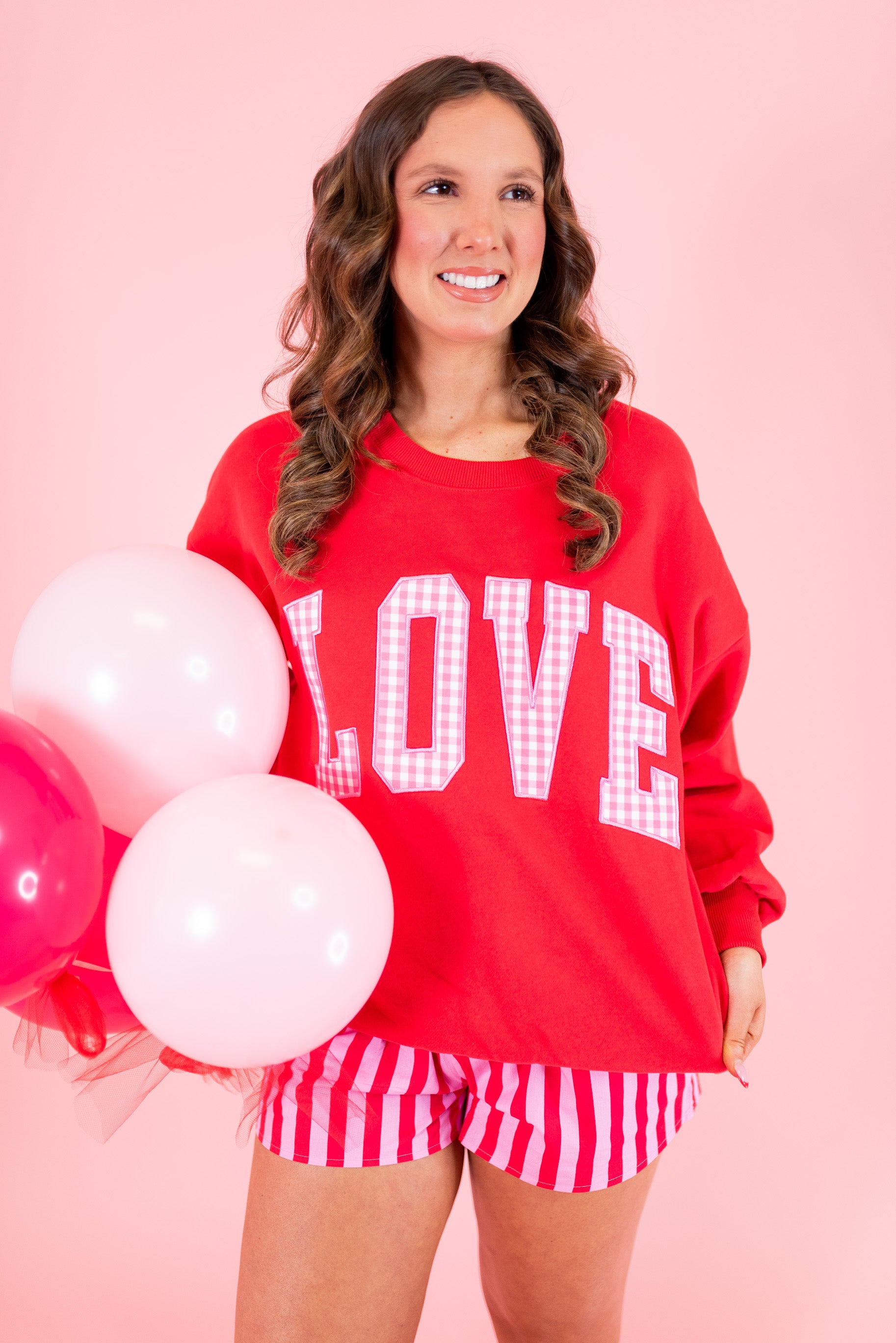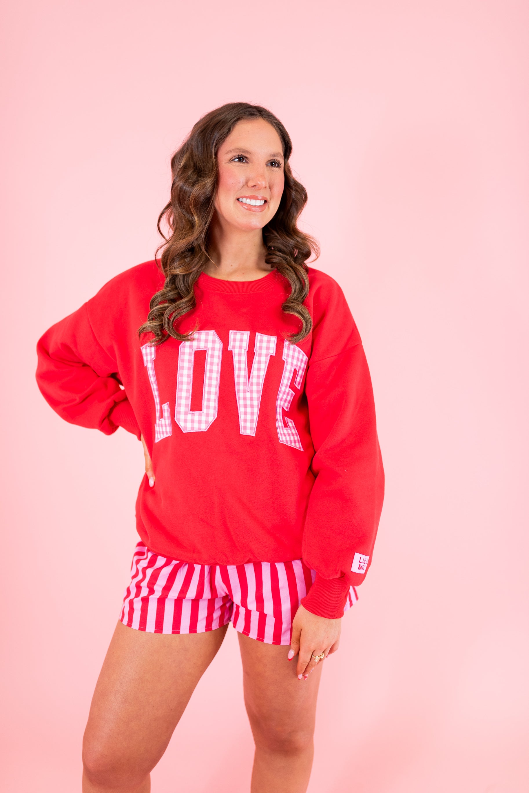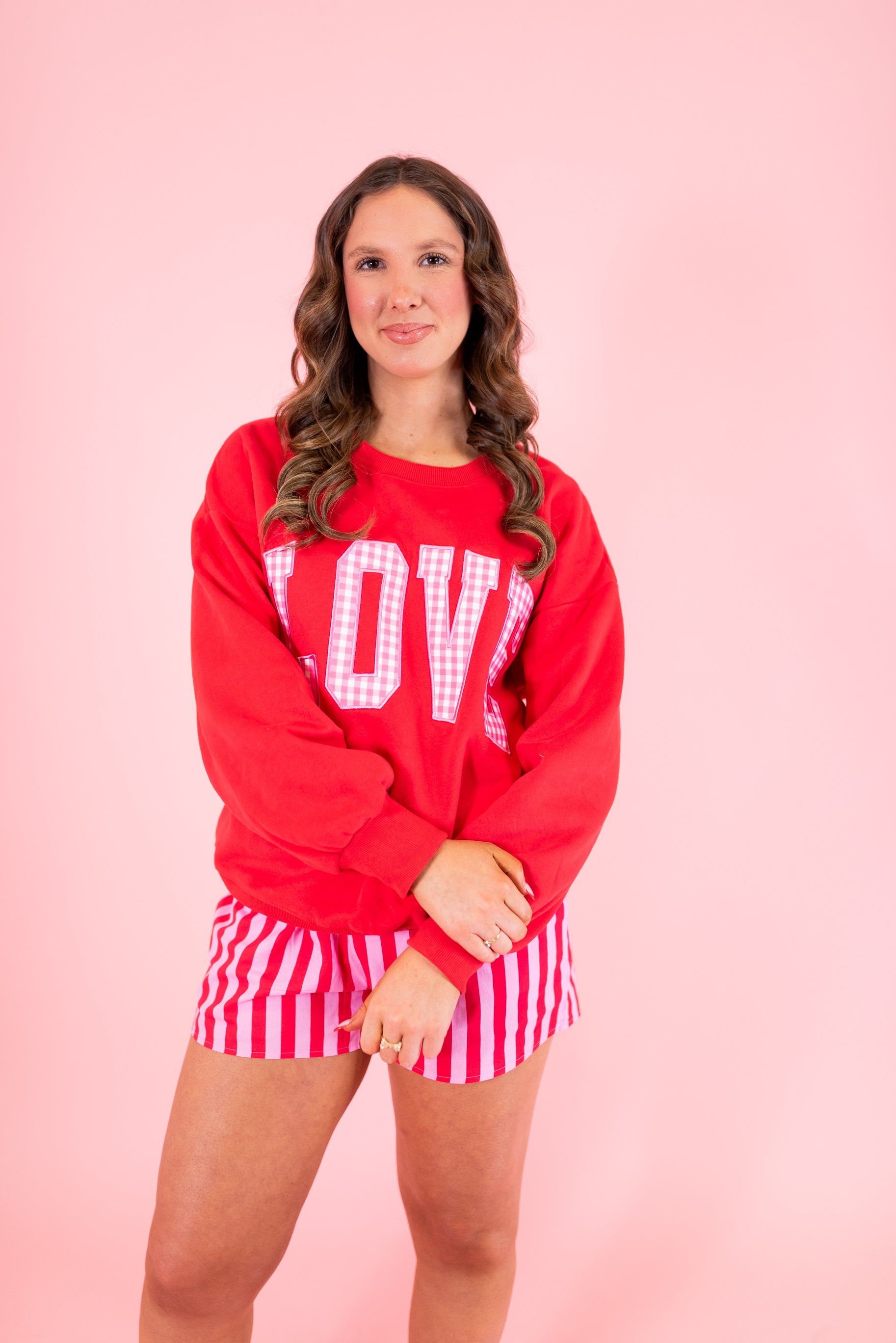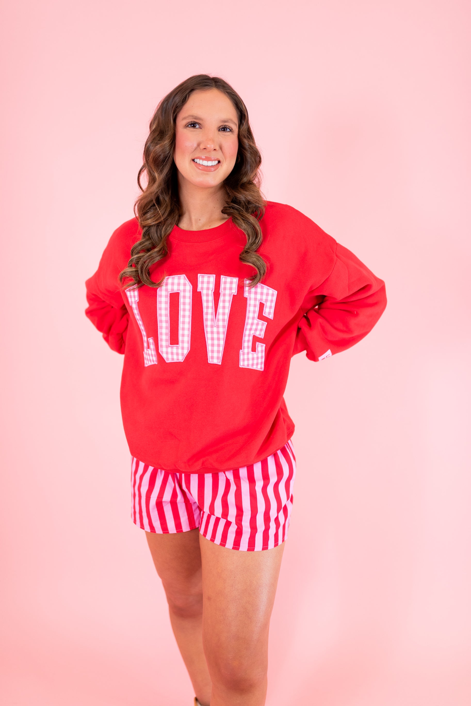 Lulu Mac: LOVE Red w/ Pink Gingham Sweatshirt