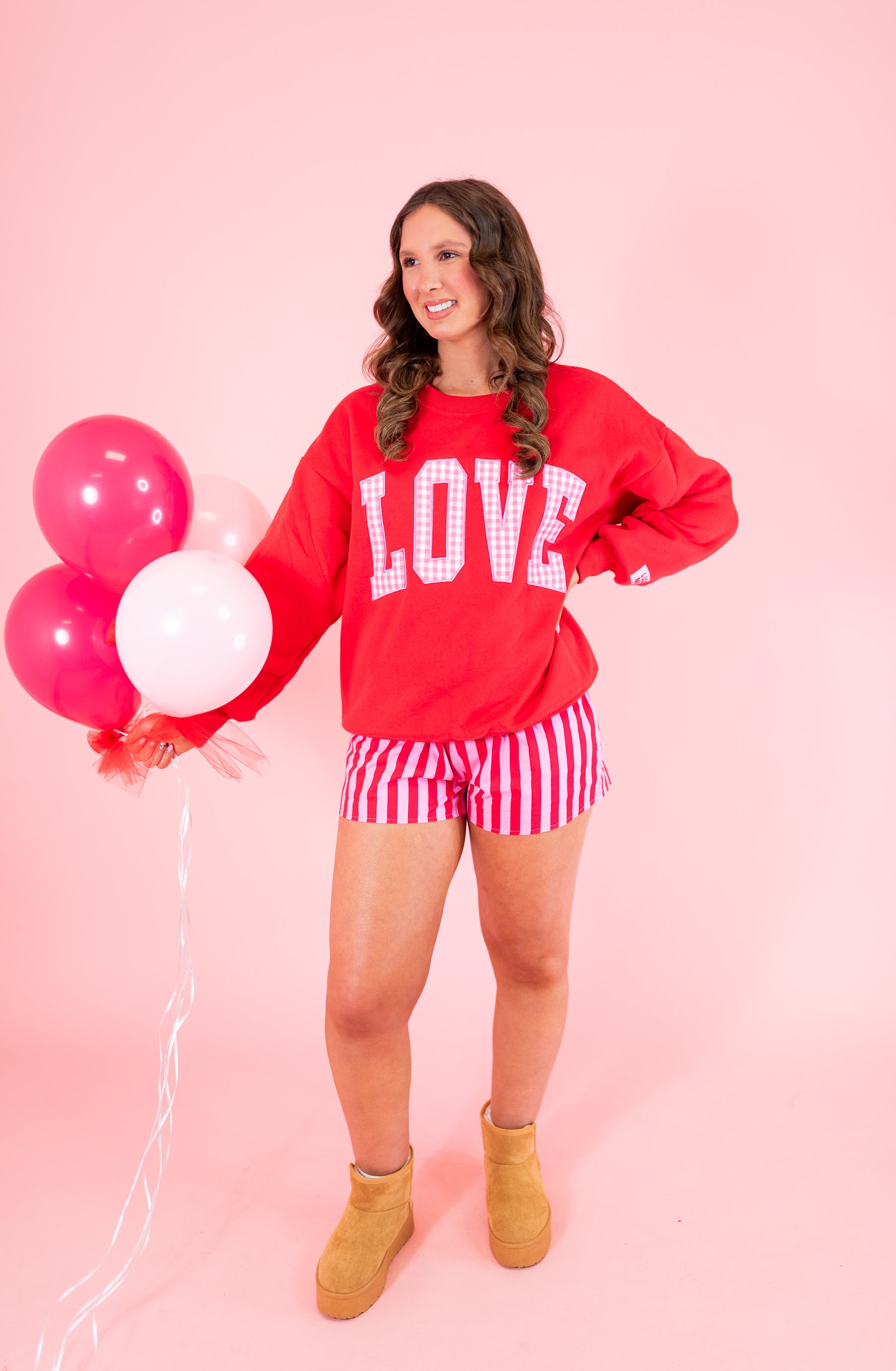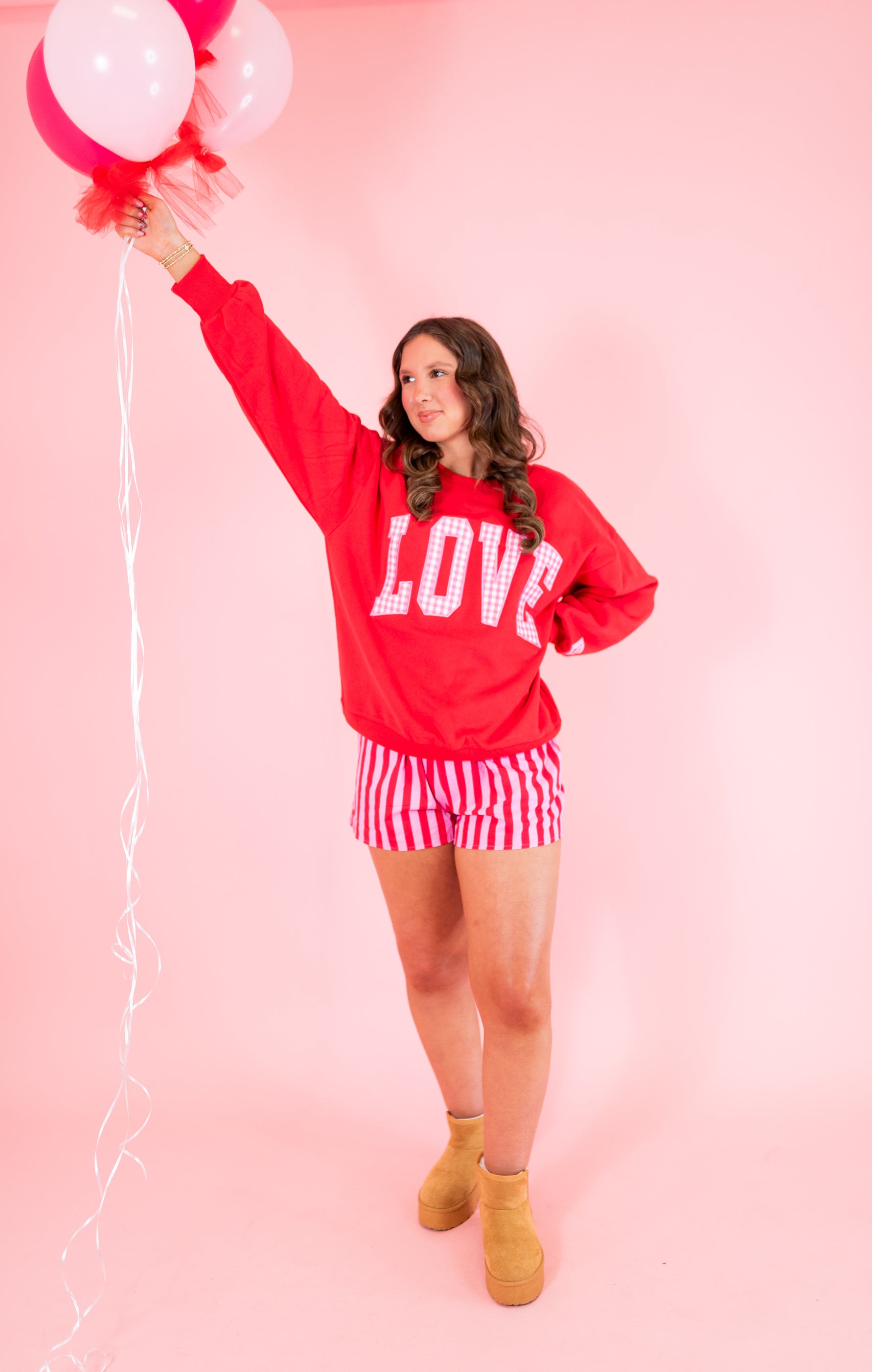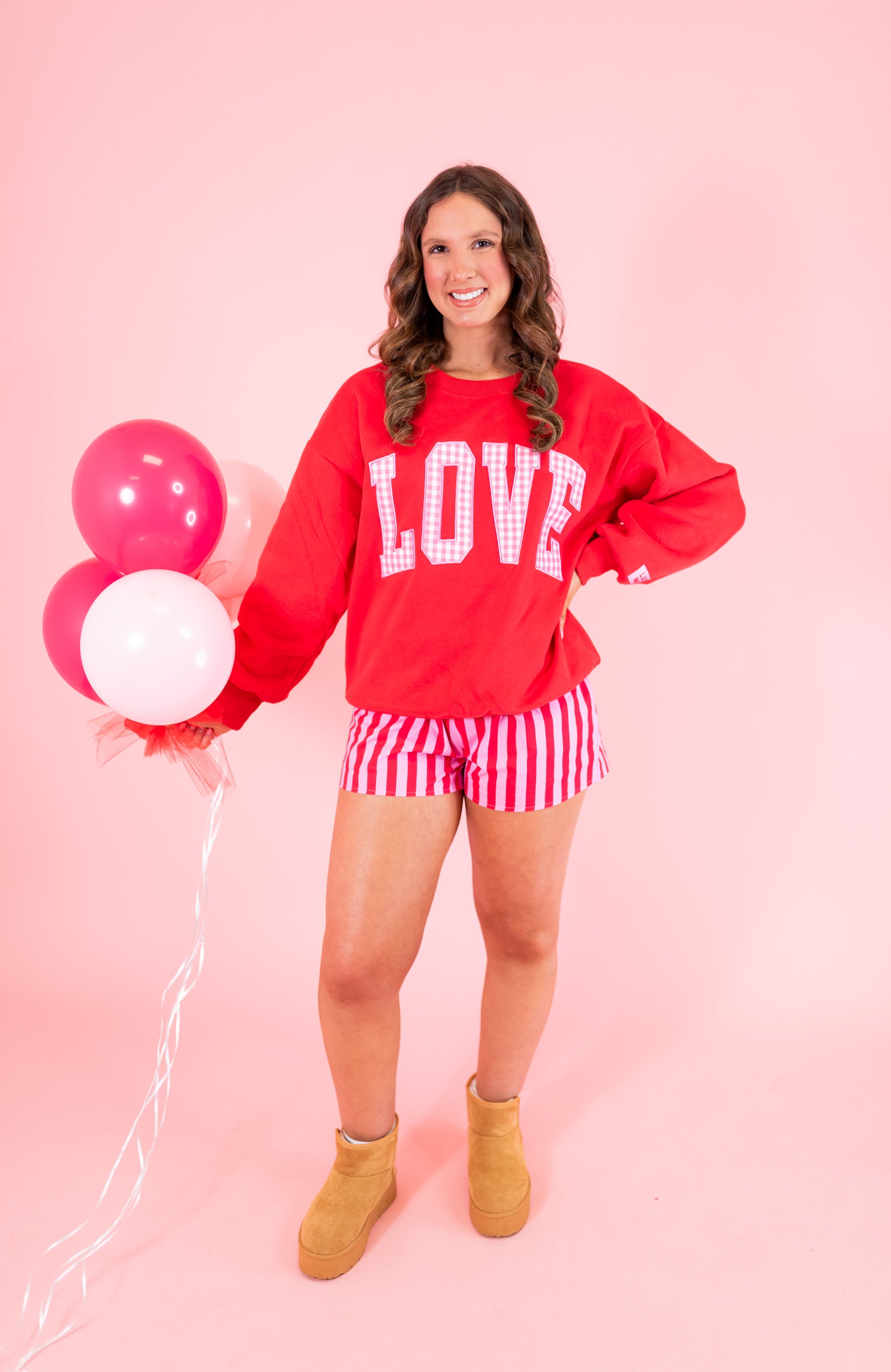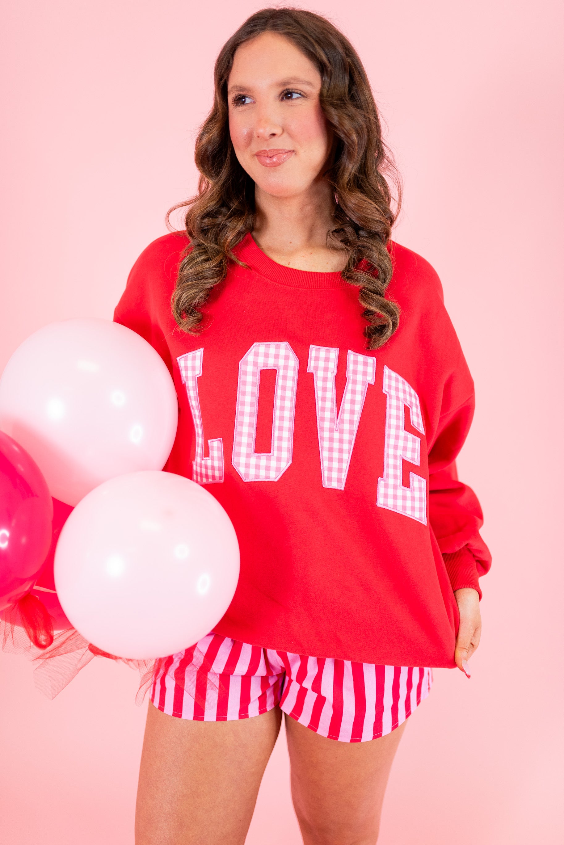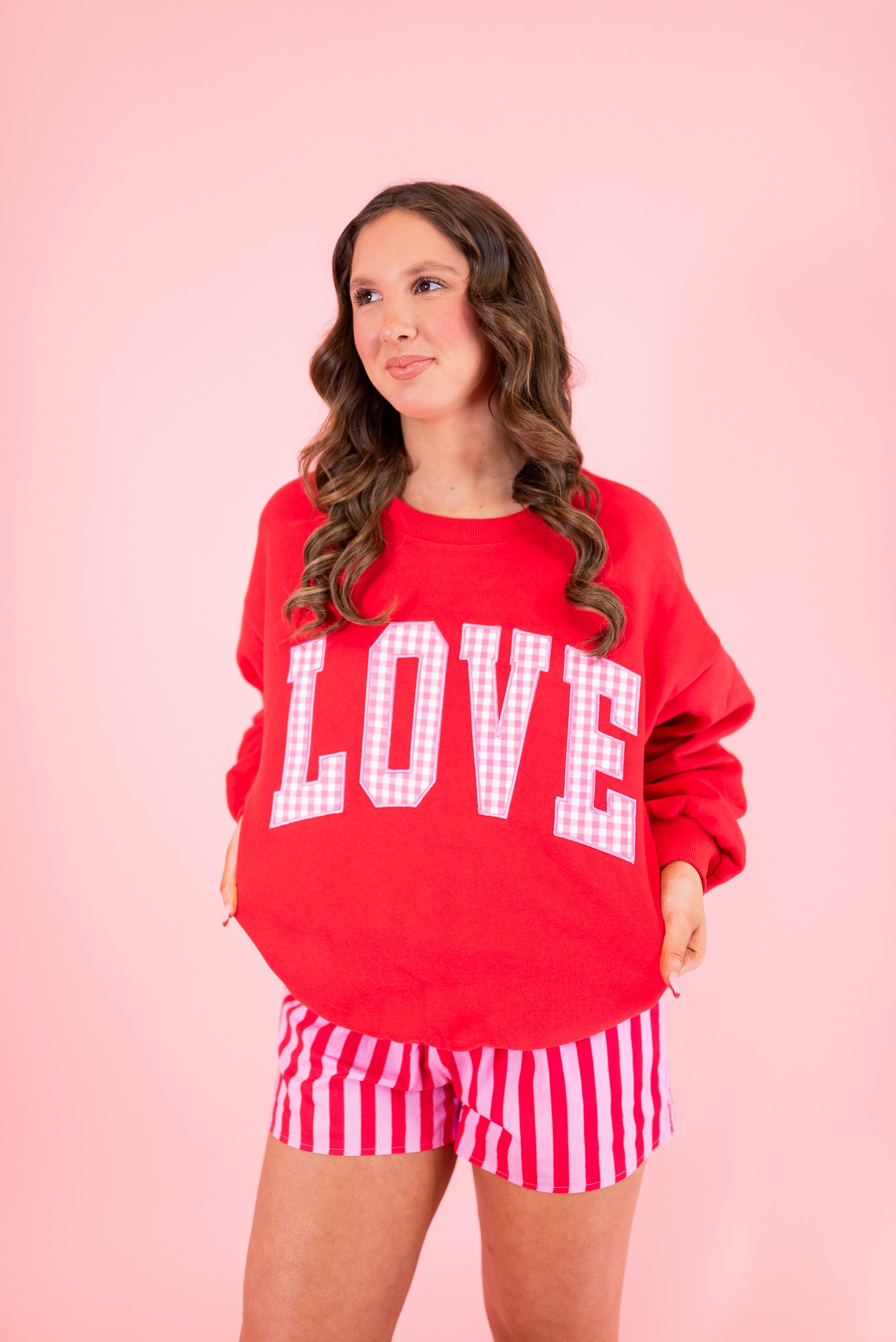 Lulu Mac: LOVE Red w/ Pink Gingham Sweatshirt