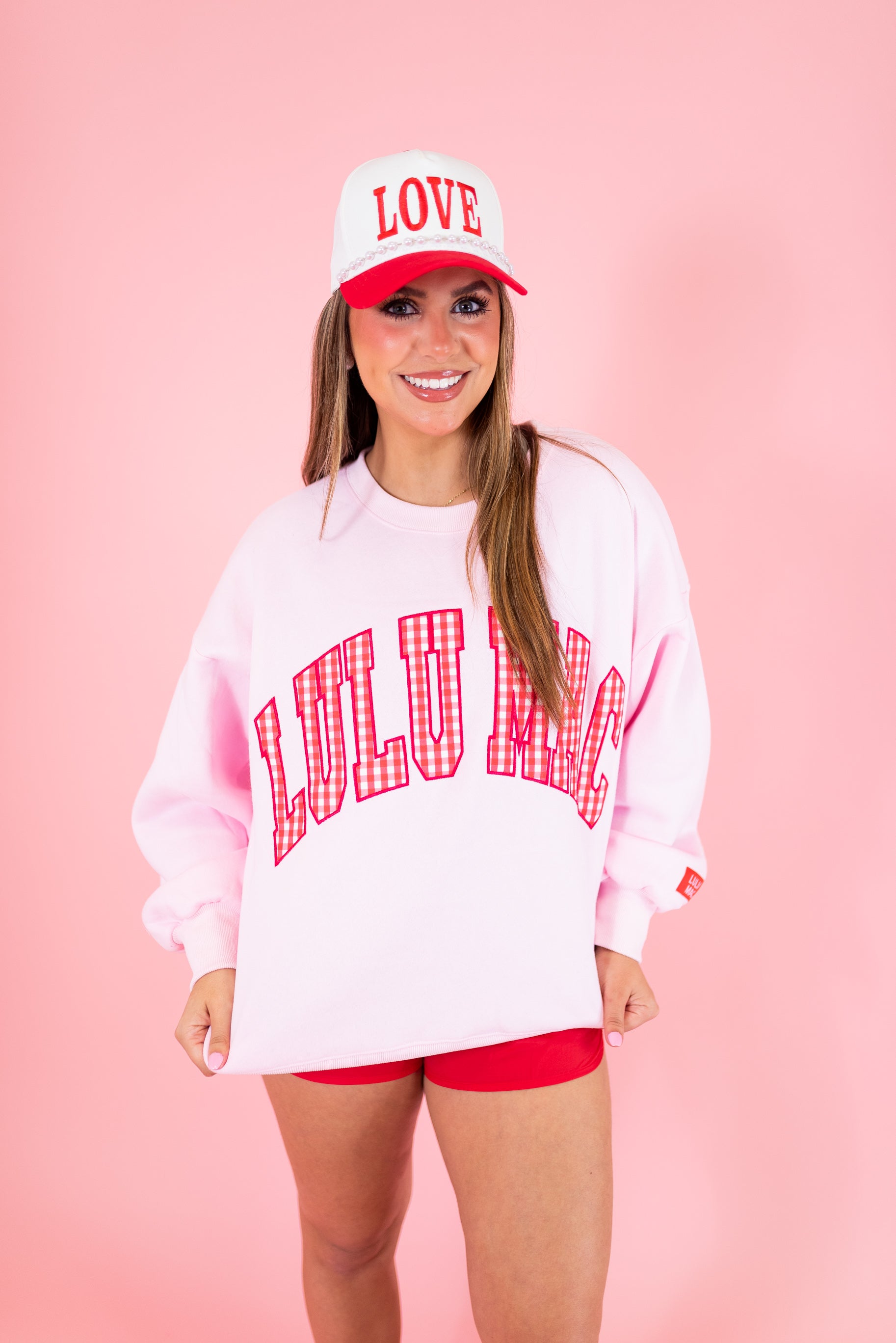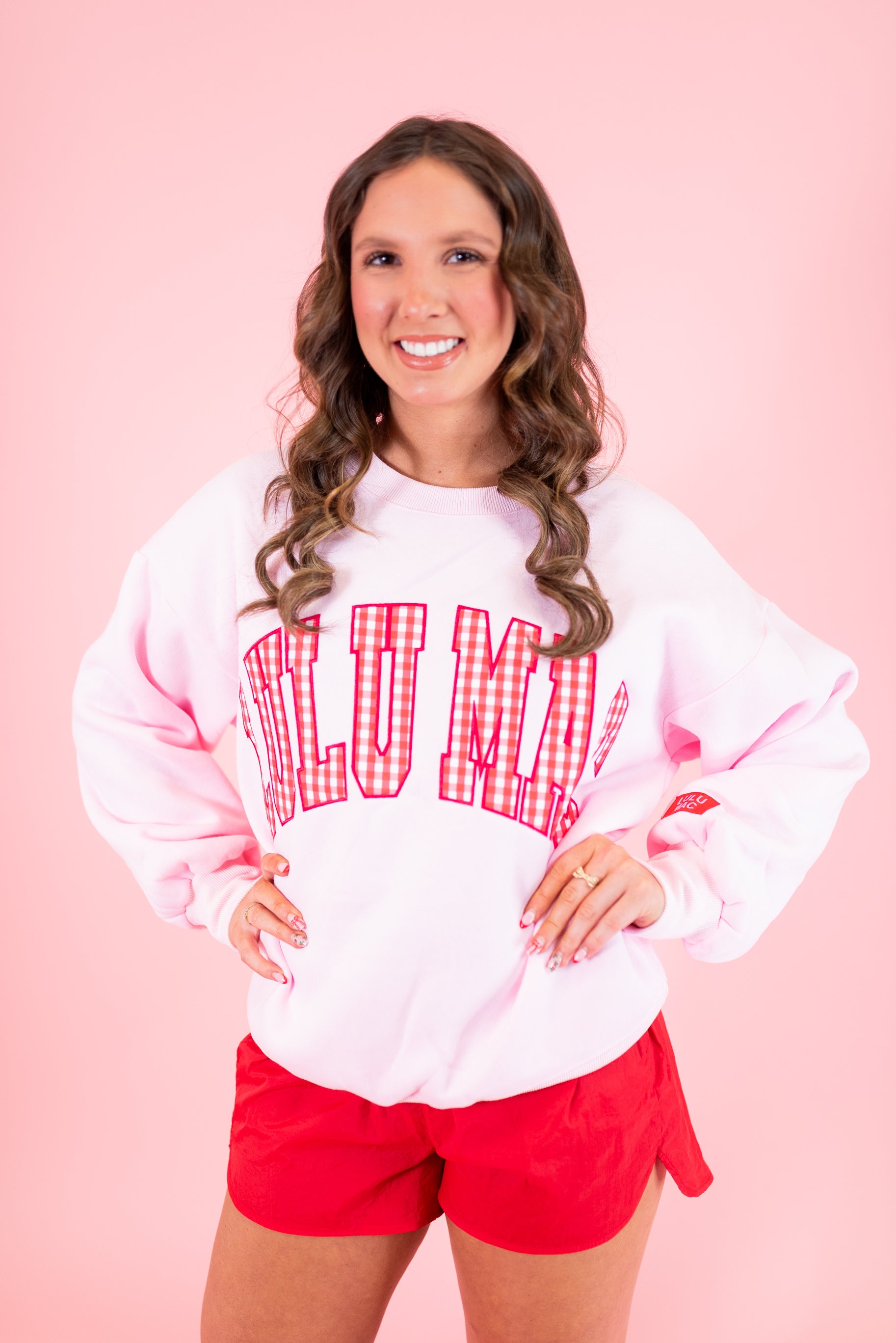 Lulu Mac: Pink w/ Red Gingham Sweatshirt