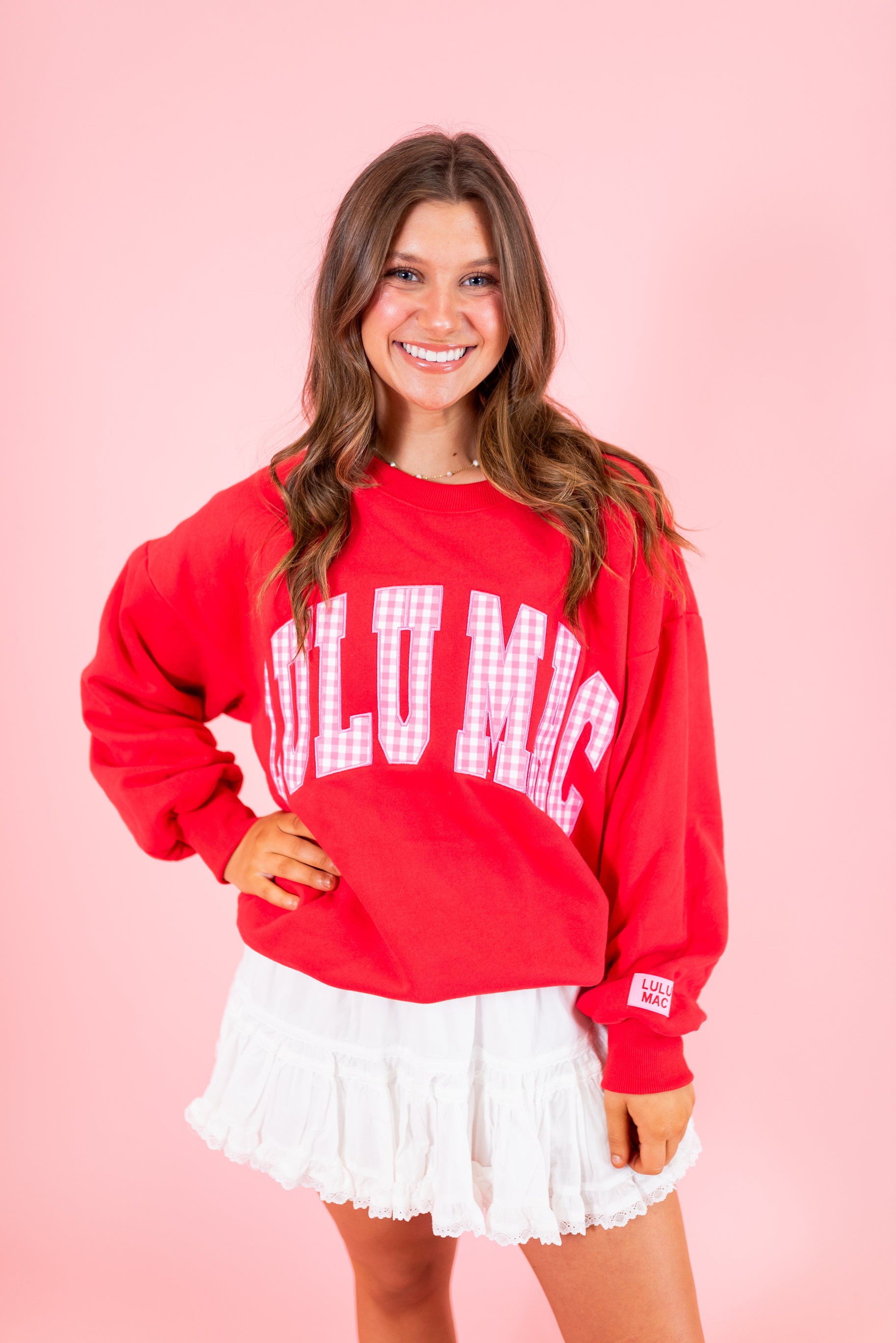 Lulu Mac: Red w/ Pink Gingham Sweatshirt