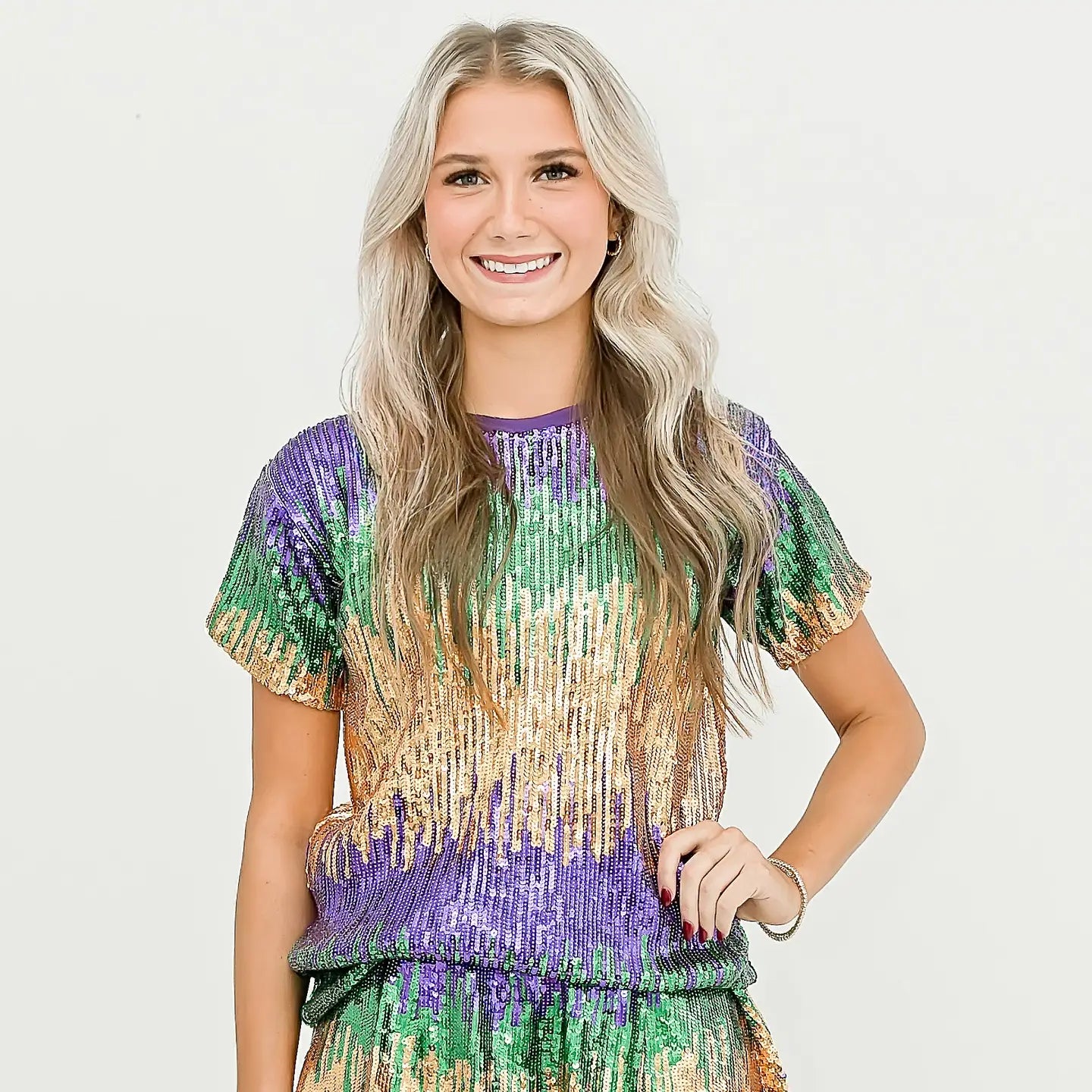 Add some sparkle to your closet with our Mix Mardi Gras Sequin Skort! This festive skort features colorful sequins that will make you stand out in any crowd. Perfect for Mardi Gras celebrations or everyday fun!