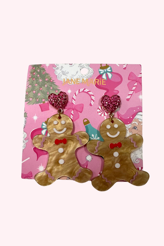 Embrace playful holiday charm with these Pink Crystal Heart Post Gingerbread Earrings. Featuring a whimsical gingerbread man crafted from cream, pink, red, and white acrylic, each earring is topped with a sparkling pink crystal heart post for a touch of sparkle. Lightweight and fun, they add a festive and sweet accent to any holiday outfit, perfect for celebrations or gifting to someone who loves seasonal style with a unique twist. Celebrate the season with a blend of warmth and sparkle in every wear.