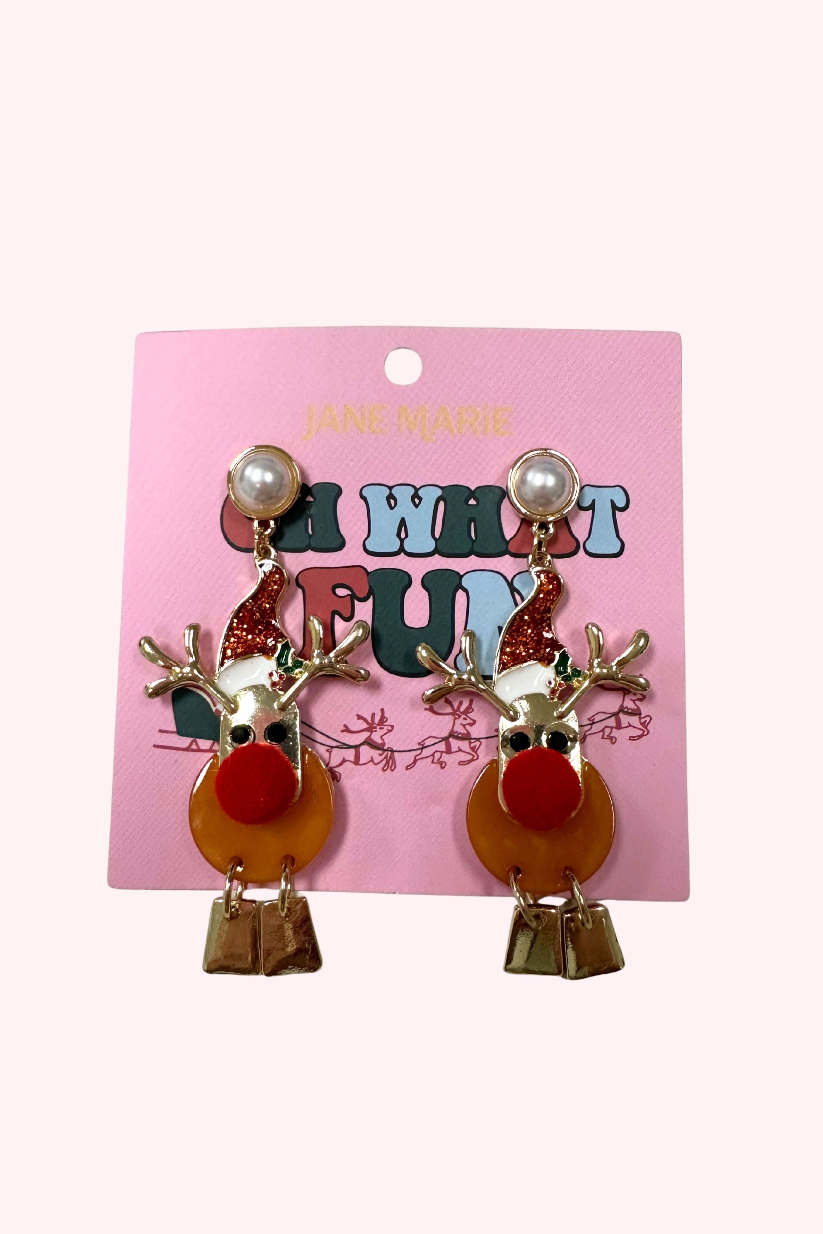 Reindeer w/ Red Pom Post Earrings