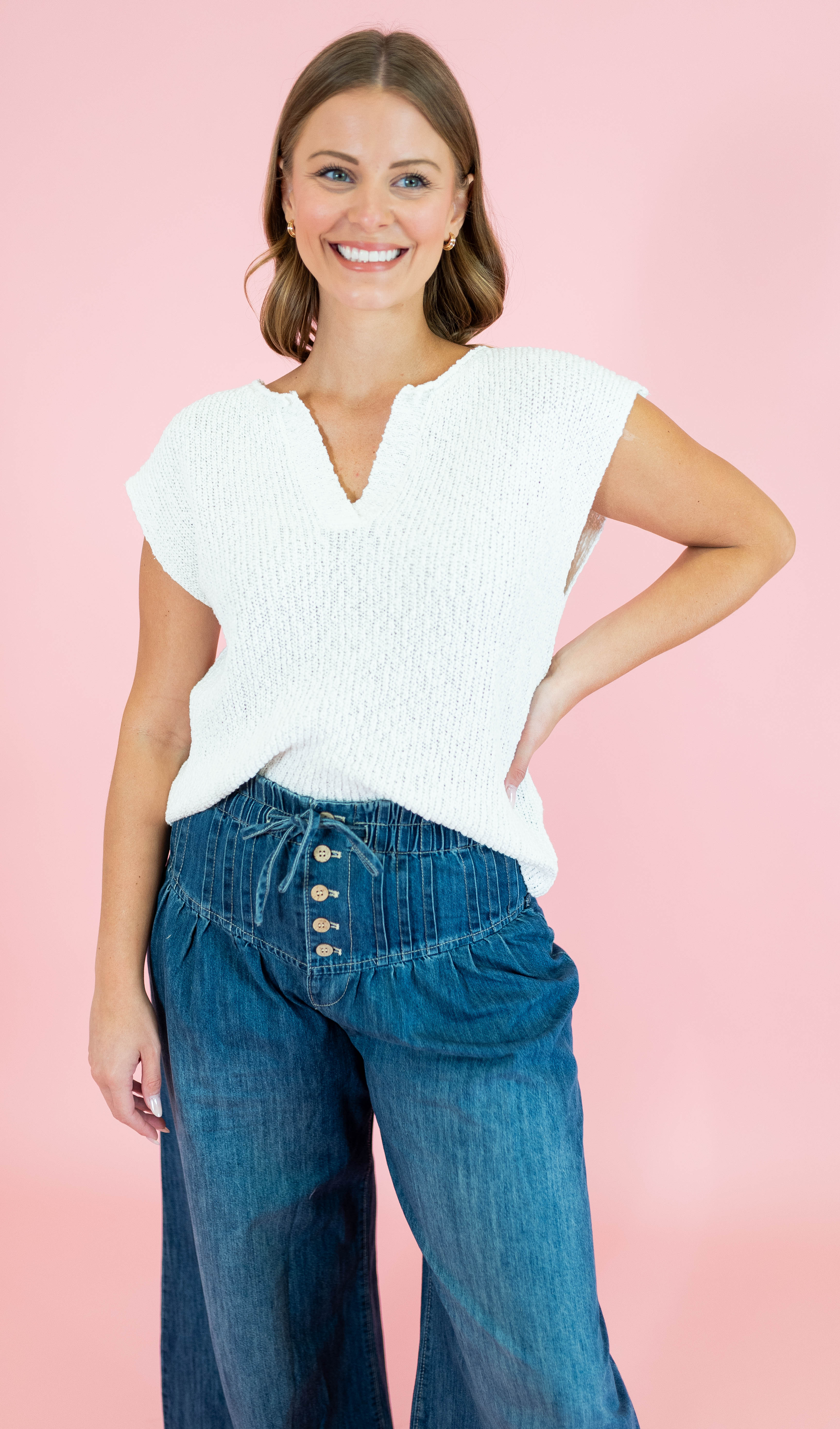 Embrace effortless style with our Relaxed Slub Knit Sweater, crafted from soft slub knit fabric that feels as good as it looks. Available in vibrant kelly green, lavender, sunny yellow and classic off white, this versatile piece transitions seamlessly from Mardi Gras celebrations to spring adventures. The relaxed fit offers comfort without compromise, making it perfect for layering or wearing solo. Whether you're heading to a festival or enjoying casual weekend outings, this sweater delivers the laid-back charm and color pop your wardrobe needs.