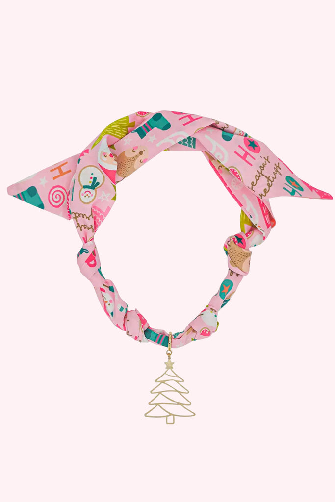 Pink Christmas Tree Printed Silk Knotted Scarf Necklace