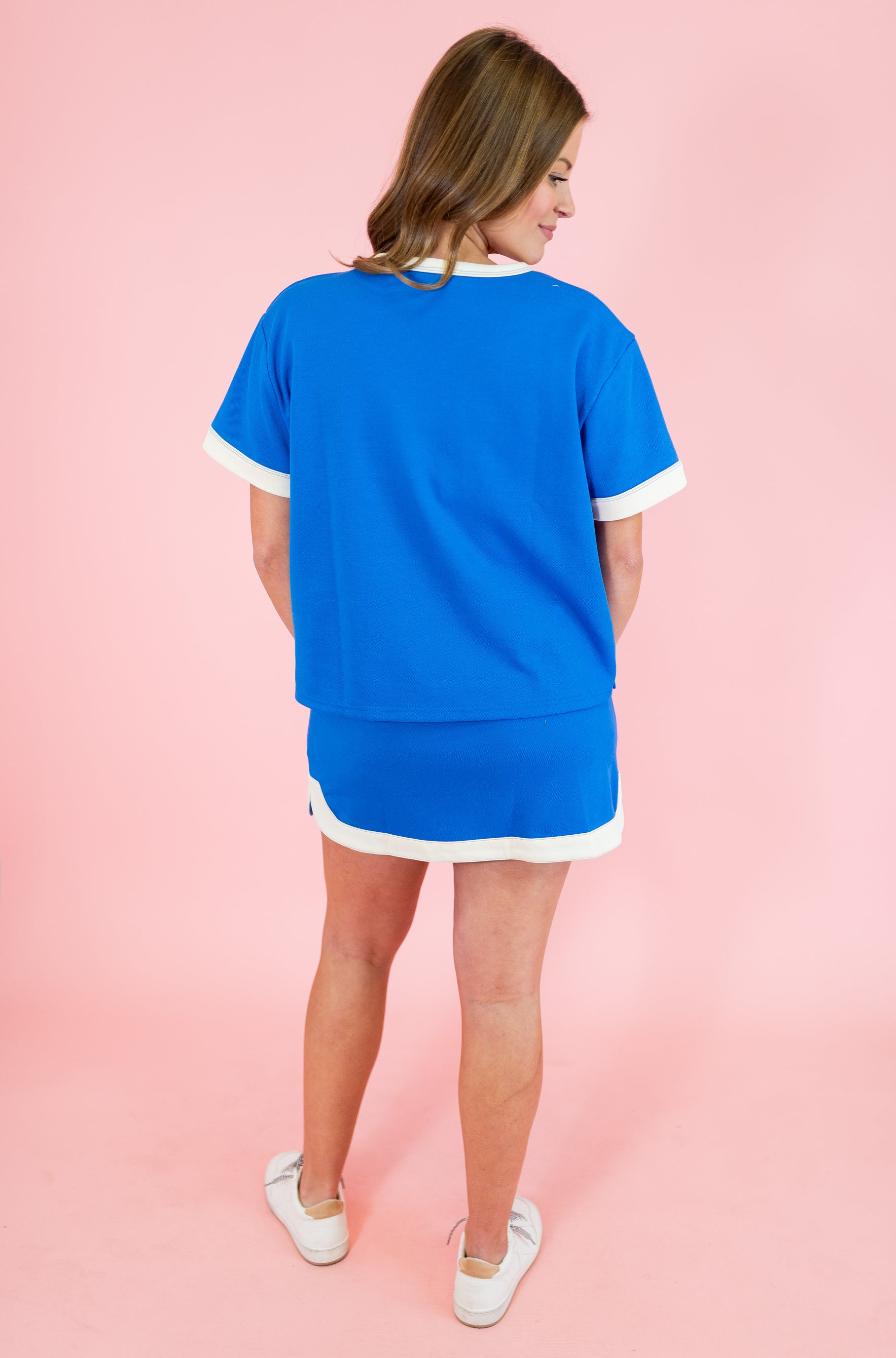 Elevate your wardrobe with this Short Sleeve Knit Contrast Top, where playful style meets everyday comfort. Available in vibrant cobalt blue, soft periwinkle, and cheerful pink, this versatile piece is perfect for mixing and matching. Pair it with our coordinating skirts to create effortless, put-together looks that take you from casual to chic in seconds. The knit fabric offers a flattering fit while the contrast detailing adds visual interest to any outfit.