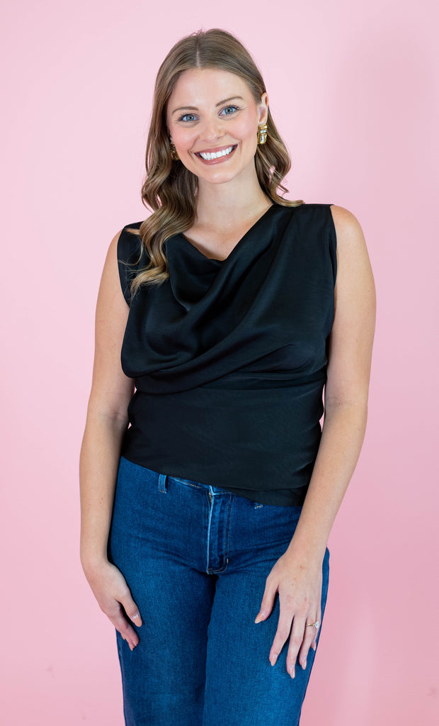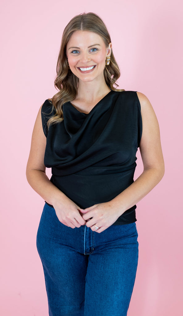 Elevate your wardrobe with the Draped Neck Side Gathering Top in a rich hunter green and black. Its elegant draped neckline and subtle side gathering create a flattering silhouette that effortlessly enhances your figure. Crafted for comfort and style, this top pairs perfectly with both casual and dressy looks, making it a versatile staple for any season. Embrace a sophisticated touch that stands out with every wear.