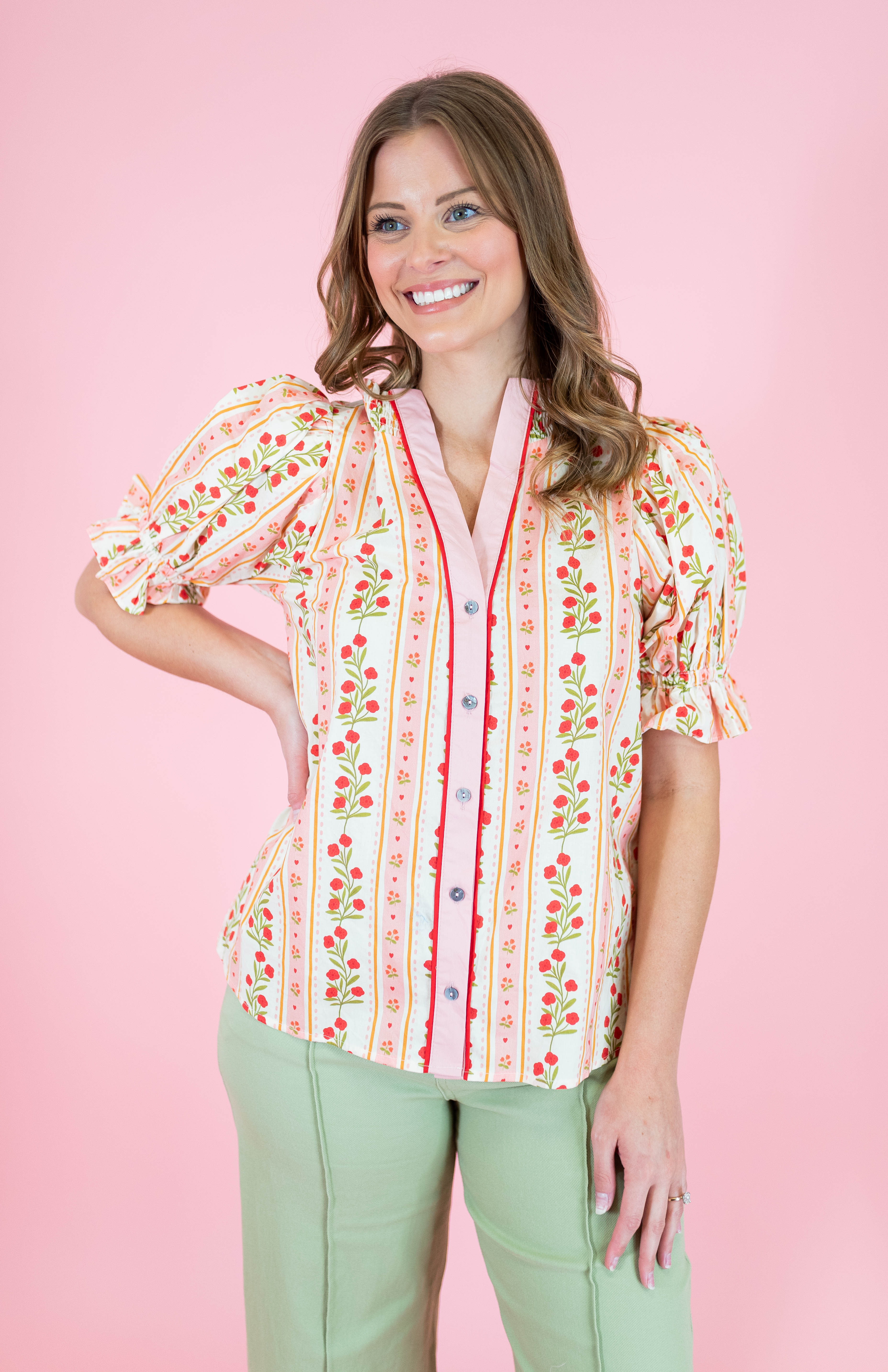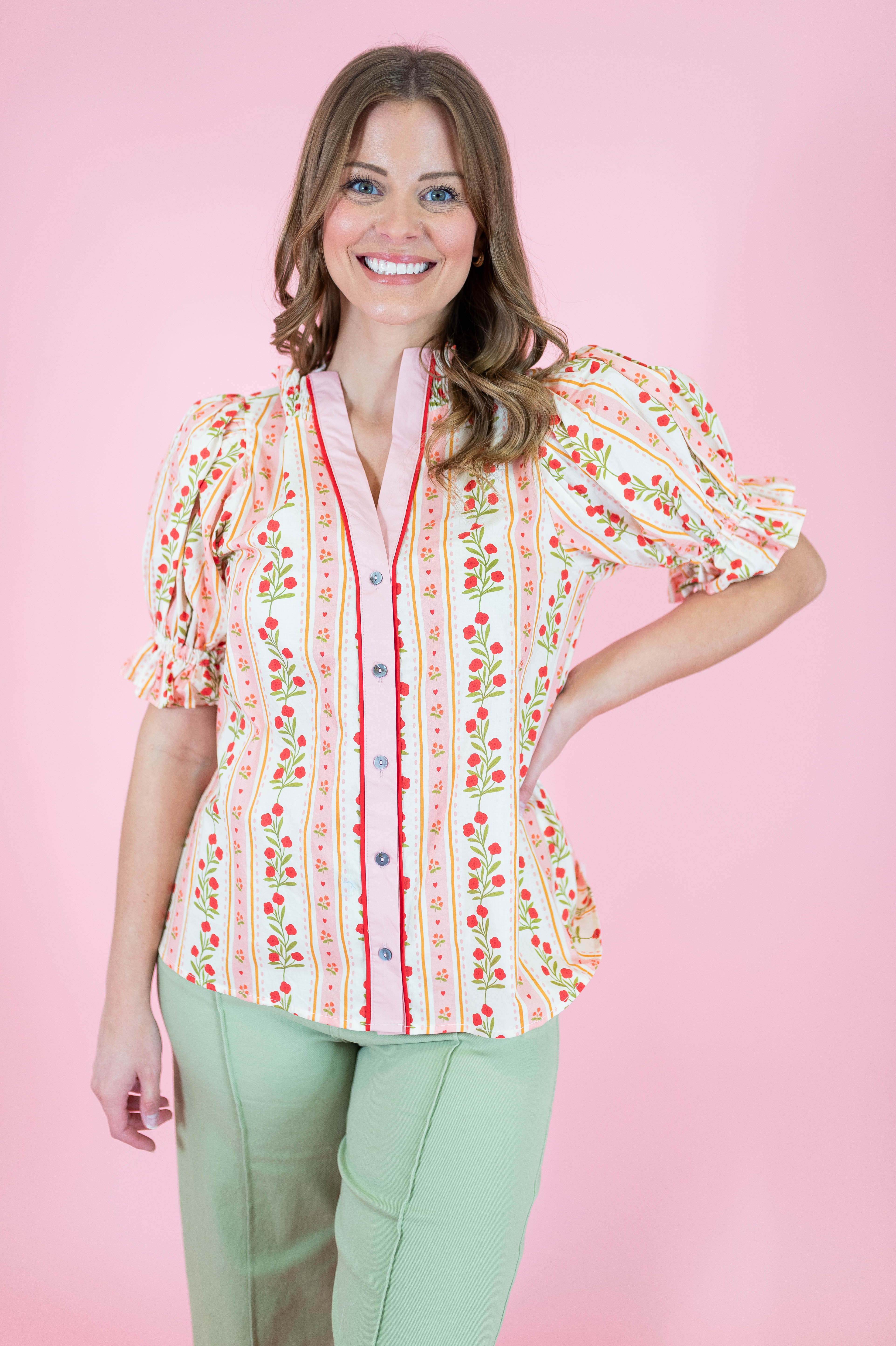 Twirl into spring with our Petals Puff Sleeve Blouse, where romantic drama meets everyday charm. Those gorgeous puff sleeves add instant personality to your wardrobe, while the flattering silhouette works beautifully with everything from jeans to skirts. Choose between rich blue or vibrant red to match your mood. Perfect for anyone who believes fashion should be fun, flirty, and unapologetically bold.