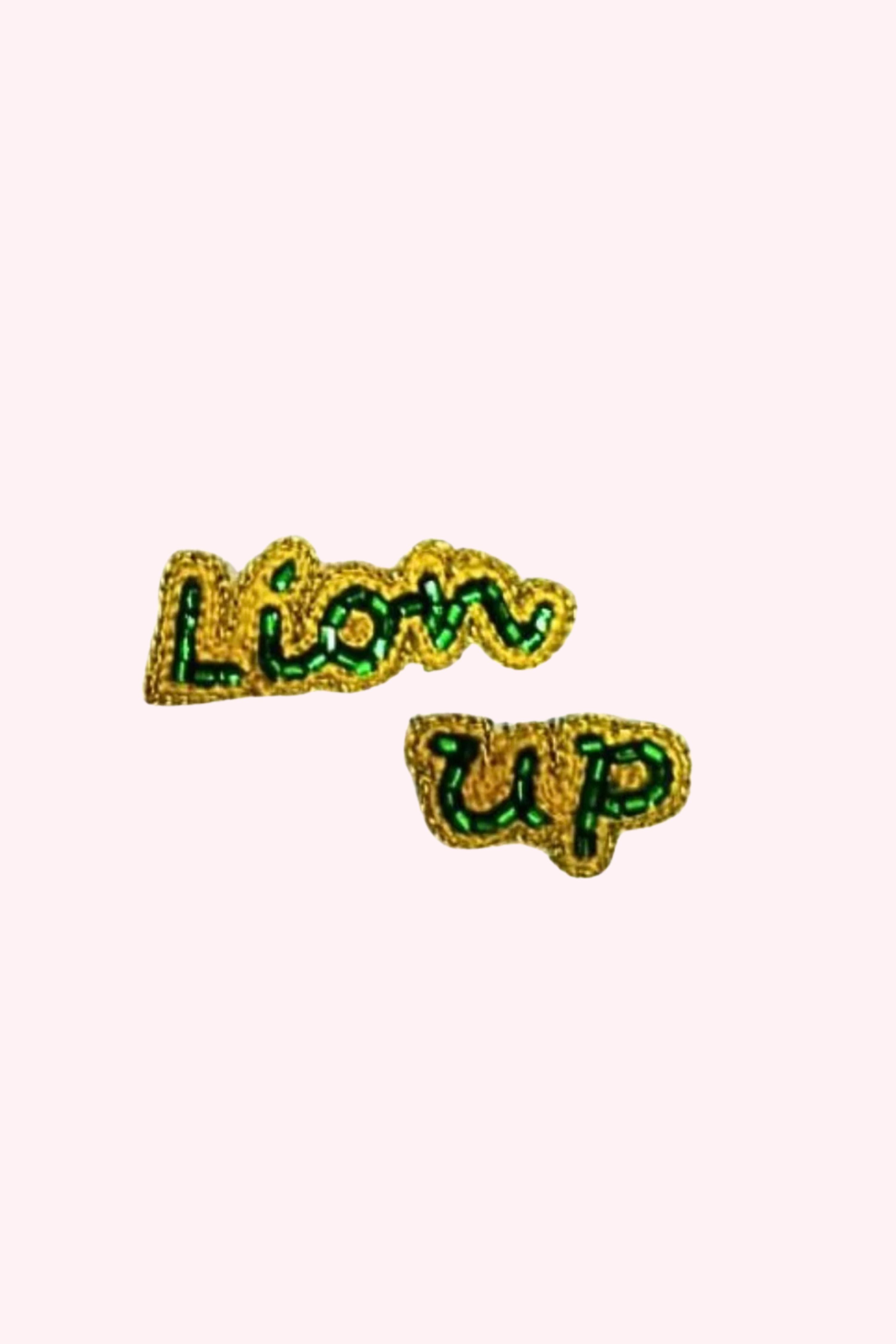Cheer on your favorite football team with our green and gold lion up stud earrings. Game Day Accessories.
