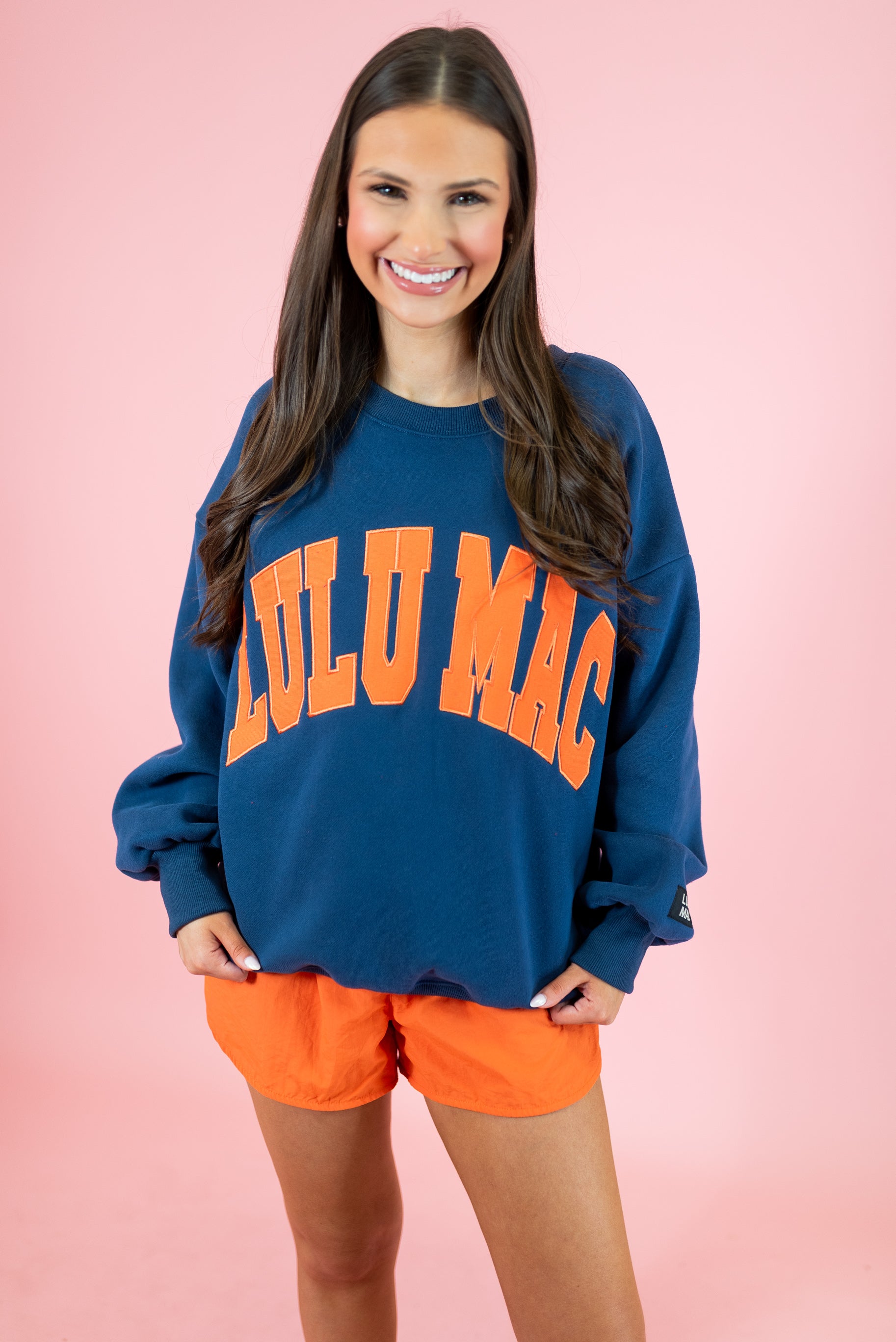 Lulu Mac: Navy & Orange Stitch Sweatshirt