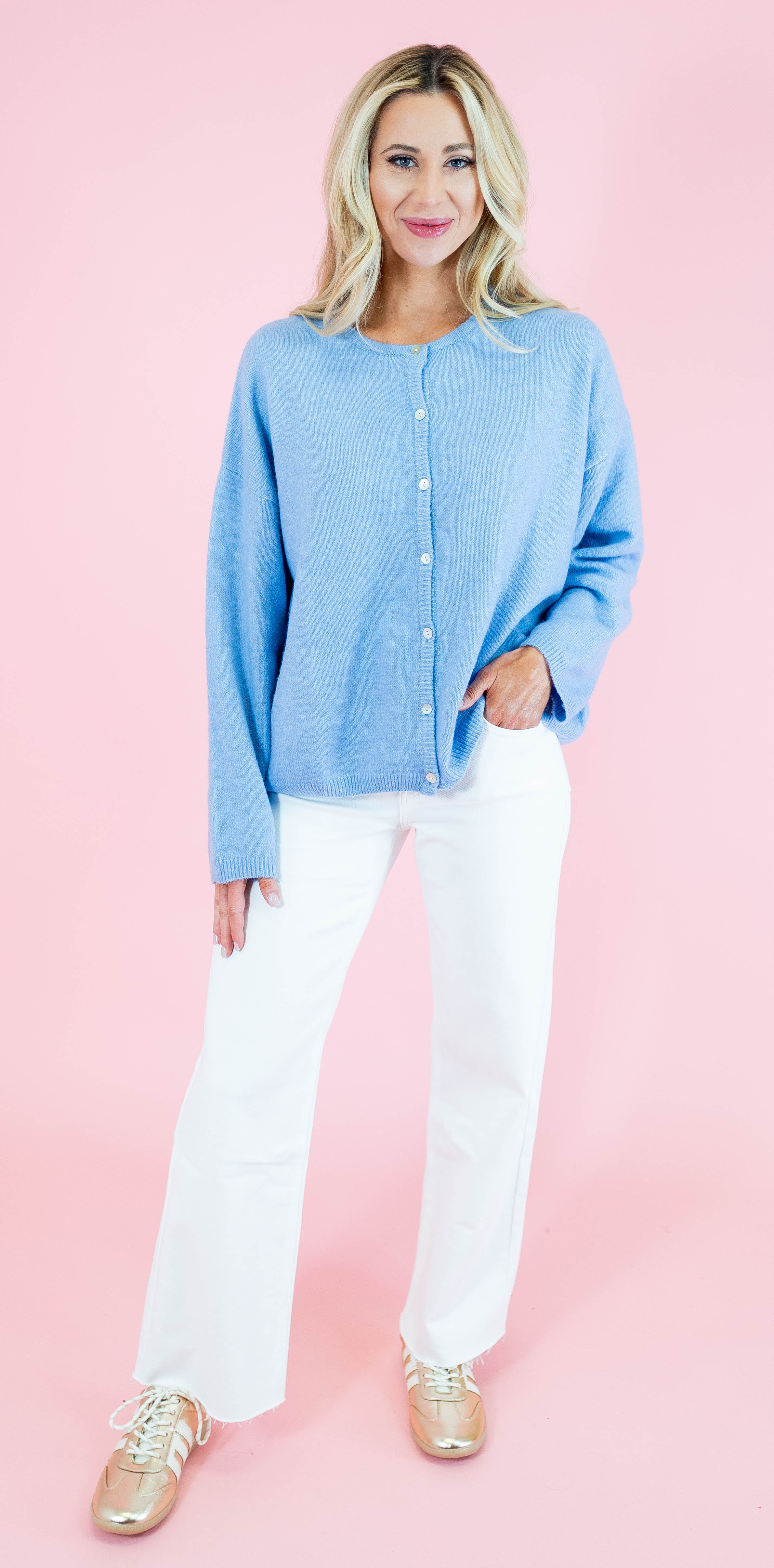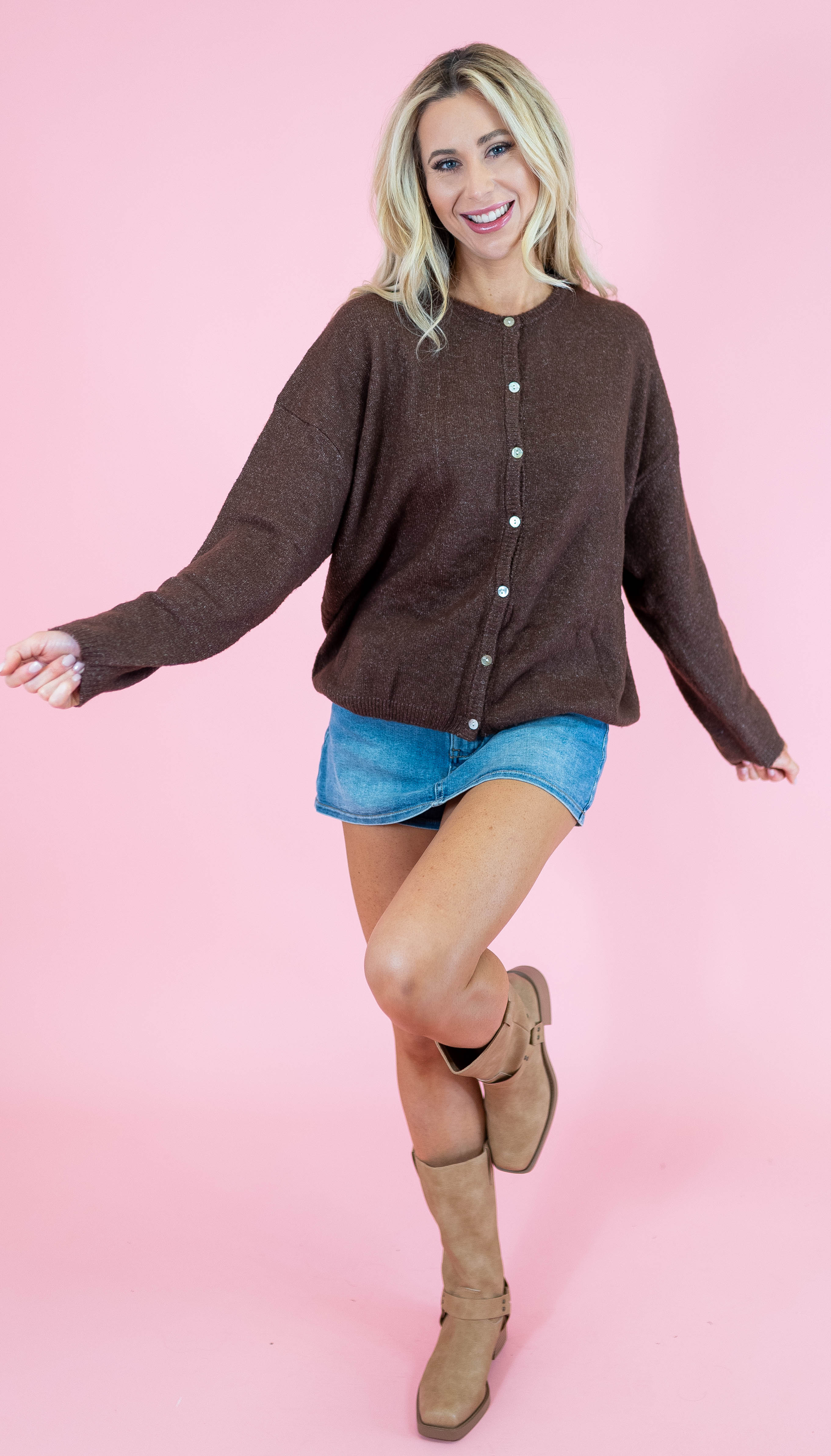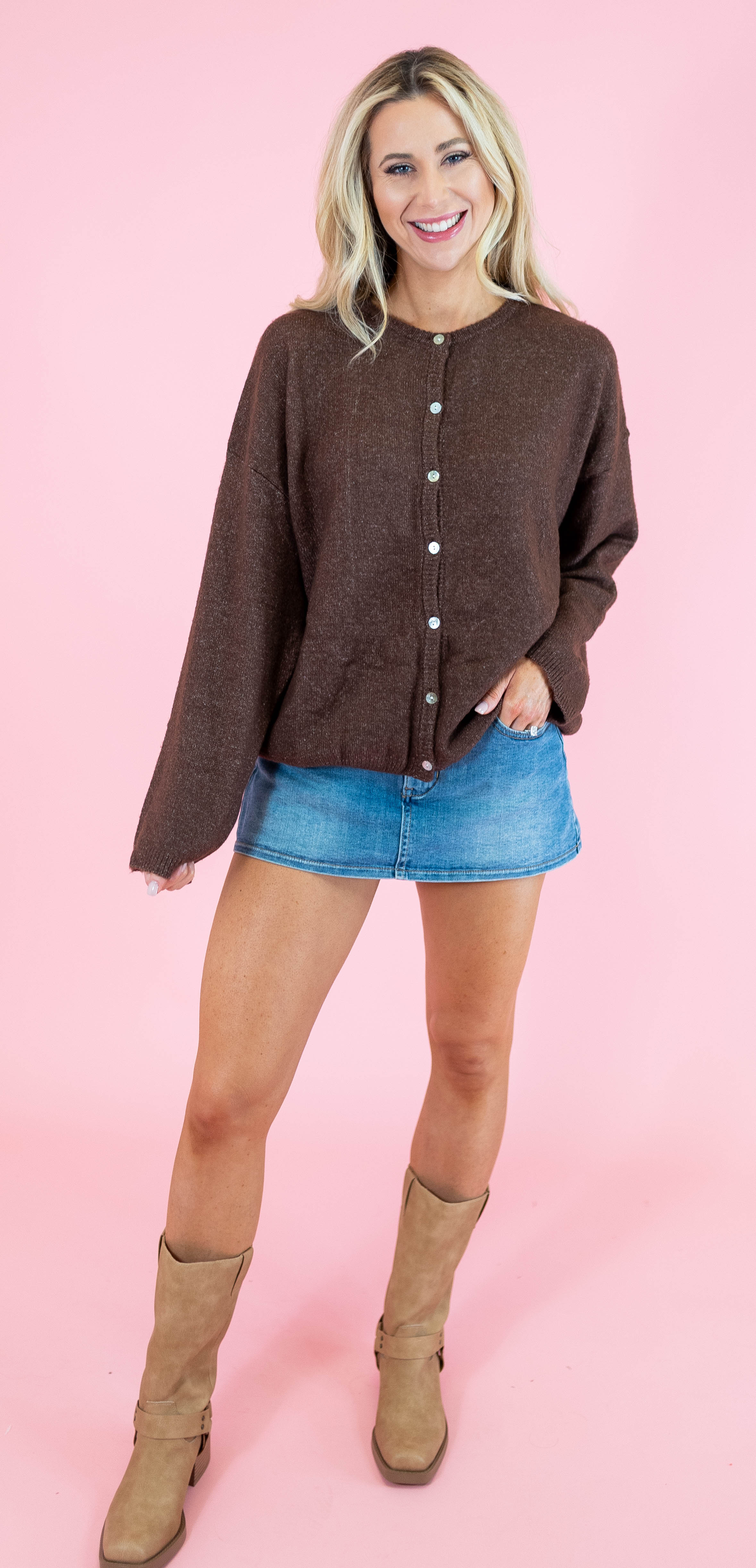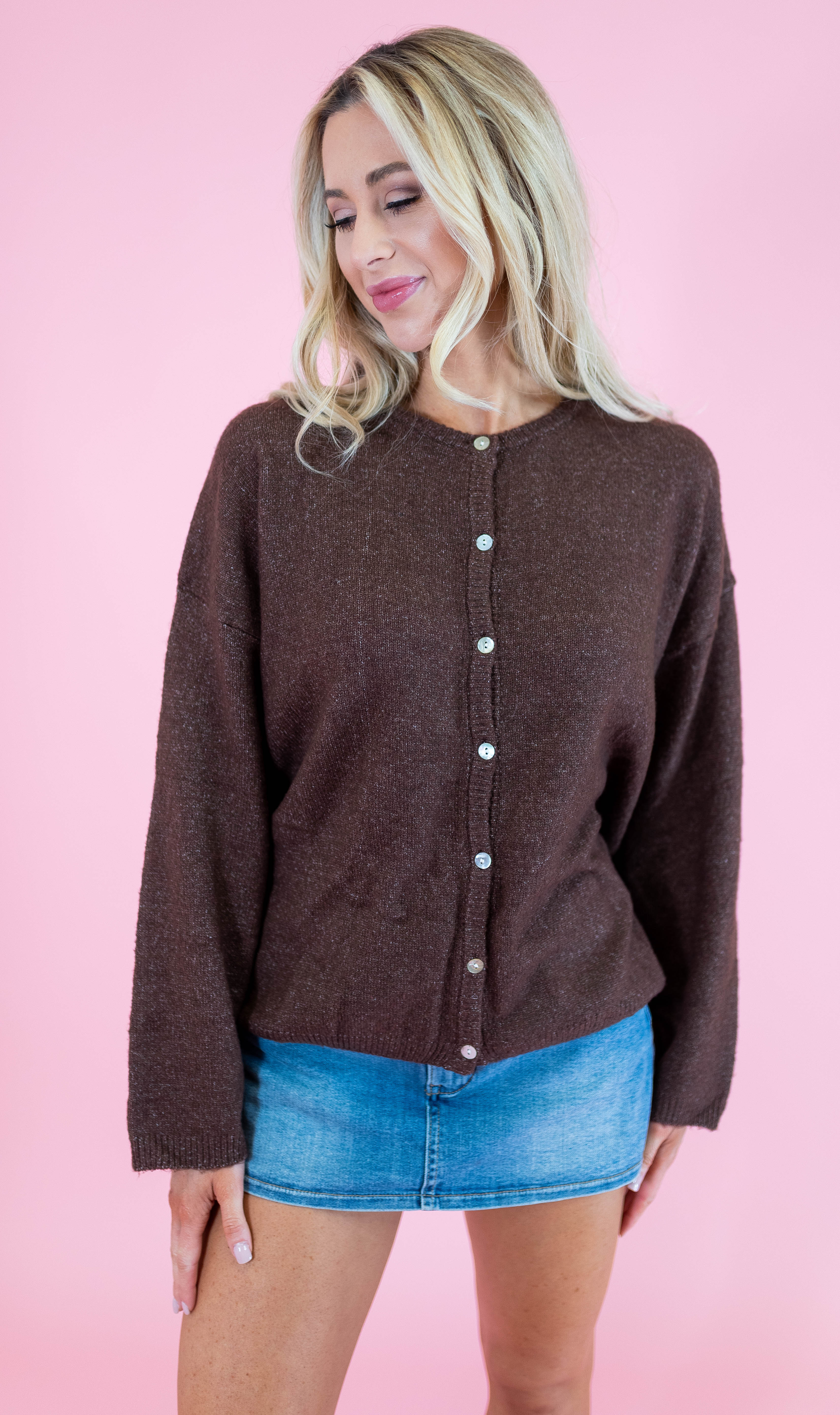 Elevate your everyday wardrobe with this versatile long sleeve sweater cardigan, crafted from soft, touchable fabric that feels as good as it looks. The classic crew neck design pairs effortlessly with jeans, dresses, or layered pieces, making it a go-to essential for any season. Available in three timeless shades—rich brown, creamy ivory, and serene light blue—you'll find the perfect match for your personal style. Whether you're dressing up for the office or keeping it casual at home, this comfortable cardigan delivers both warmth and sophistication.