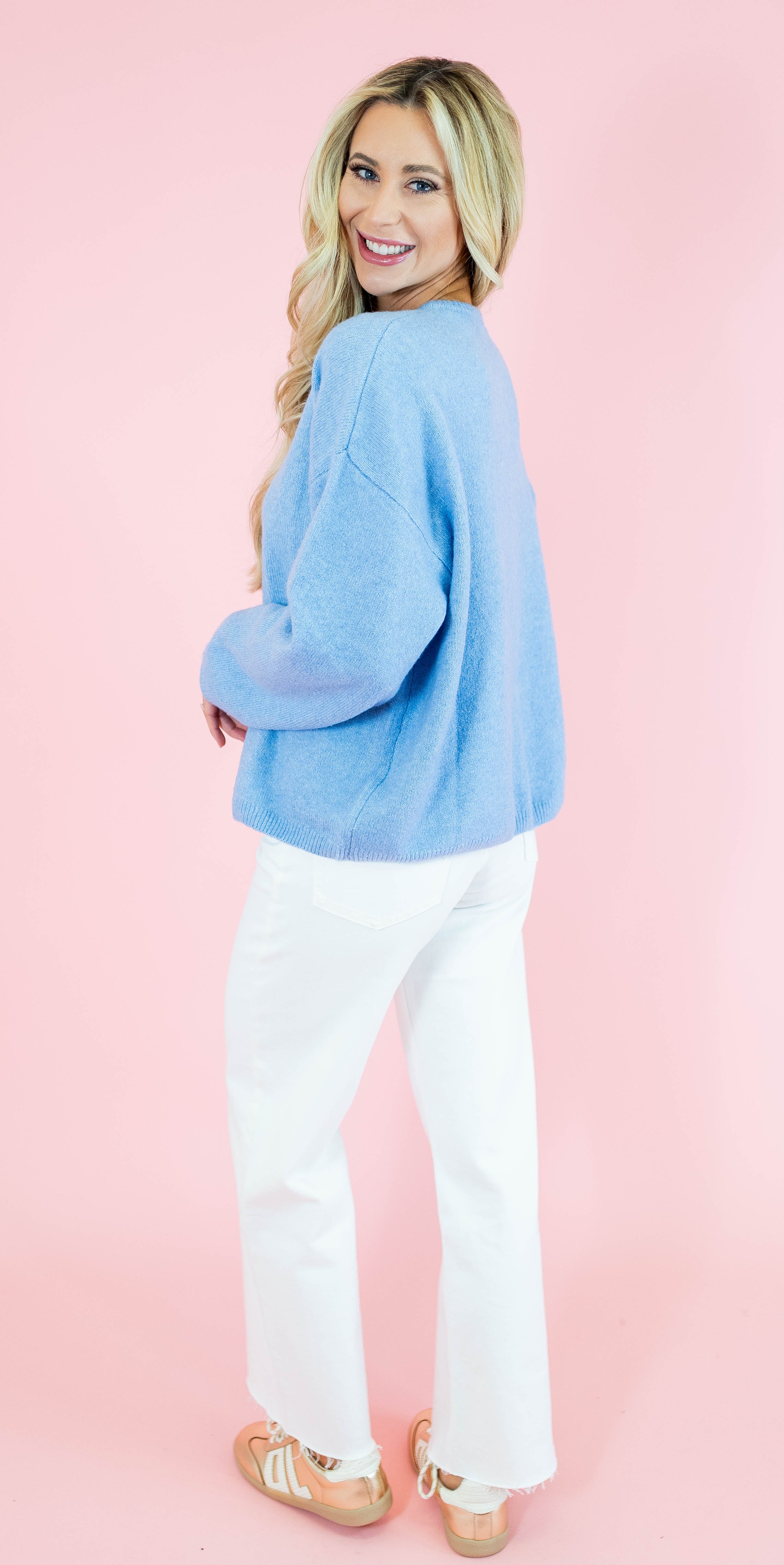 Long Sleeve Soft Crew Neck Sweater Cardigan