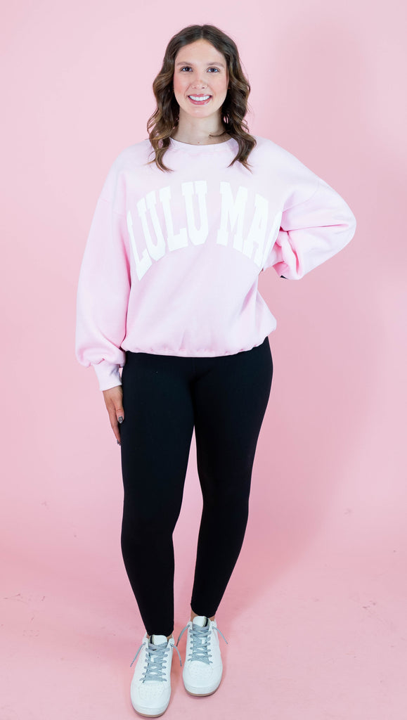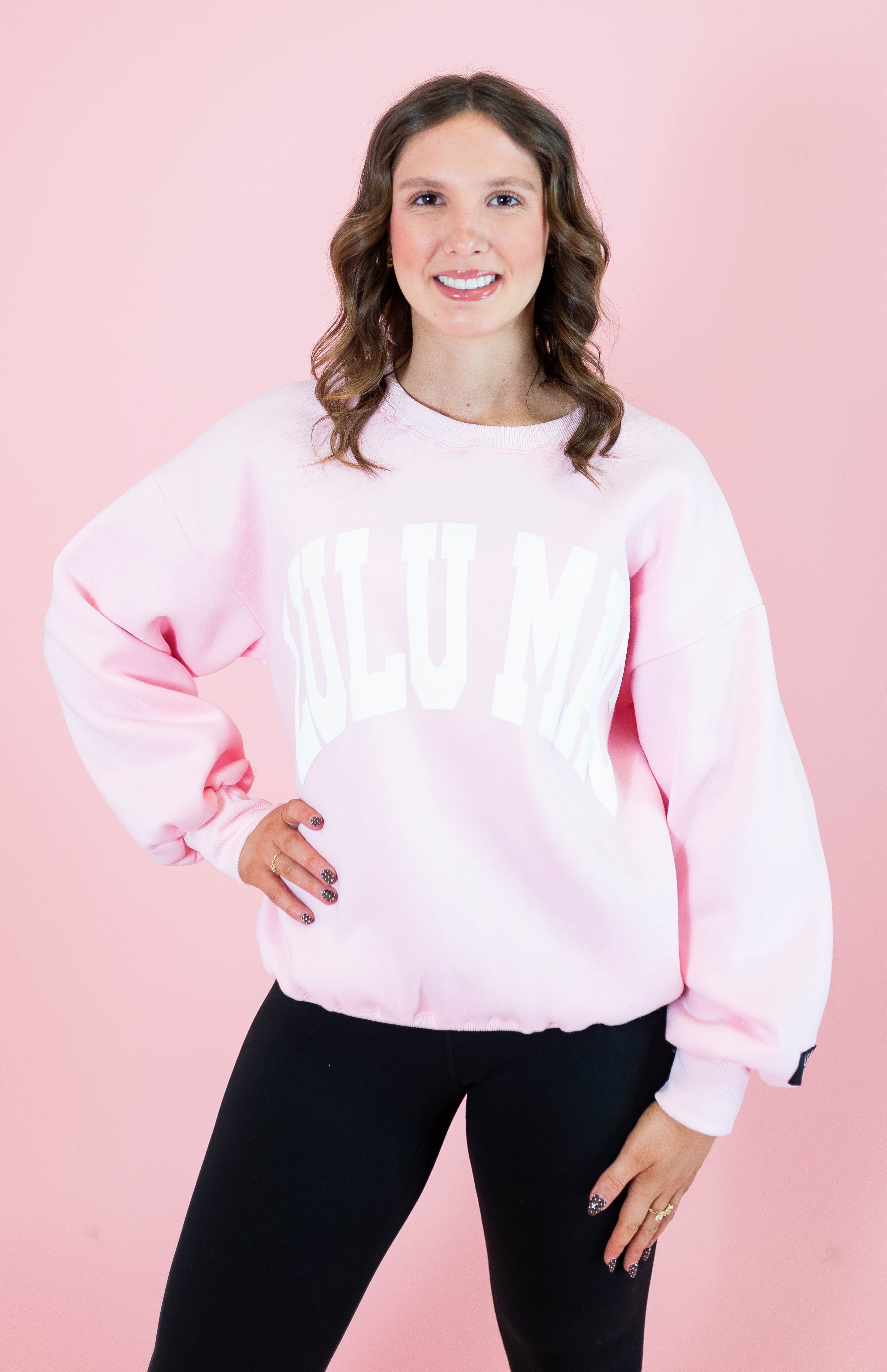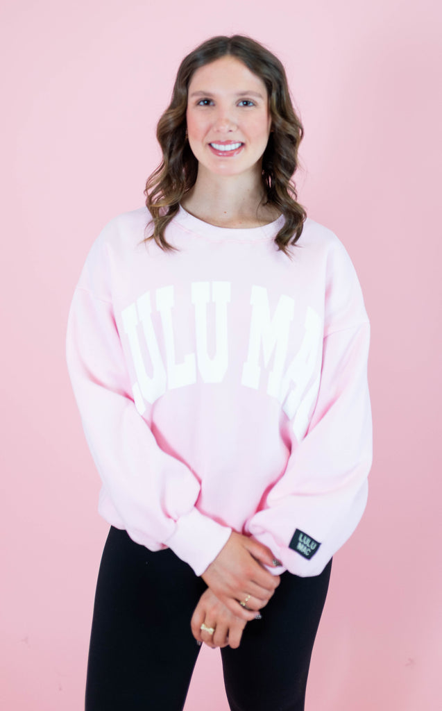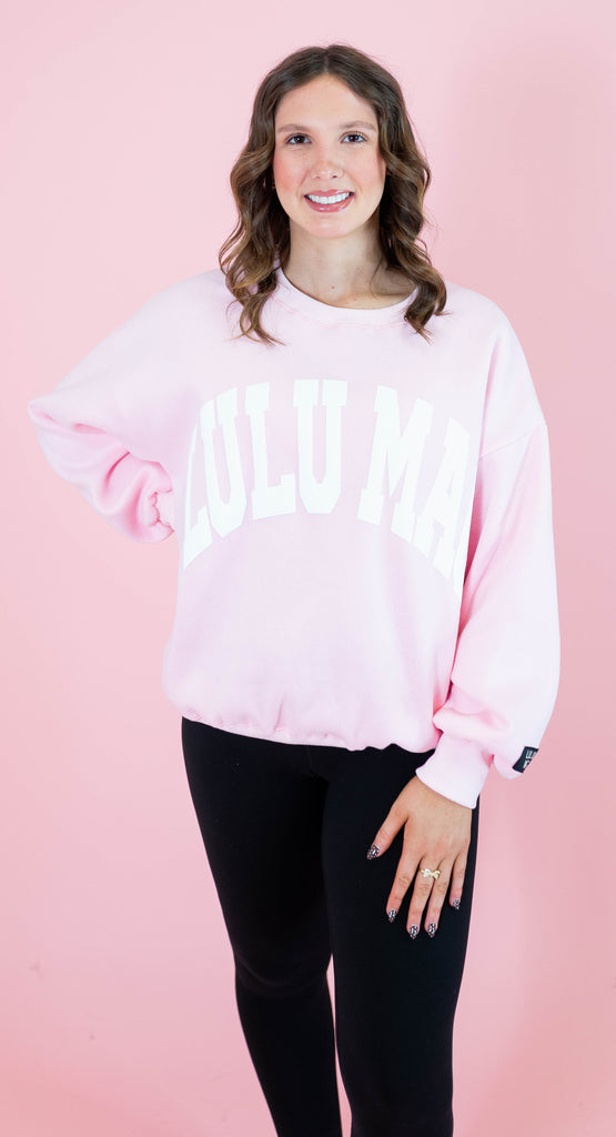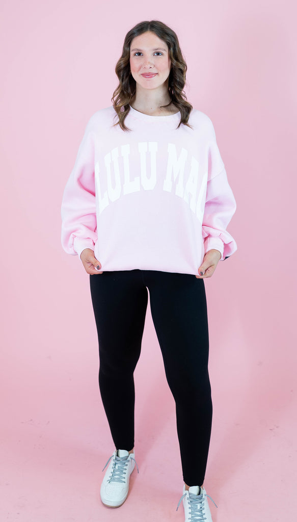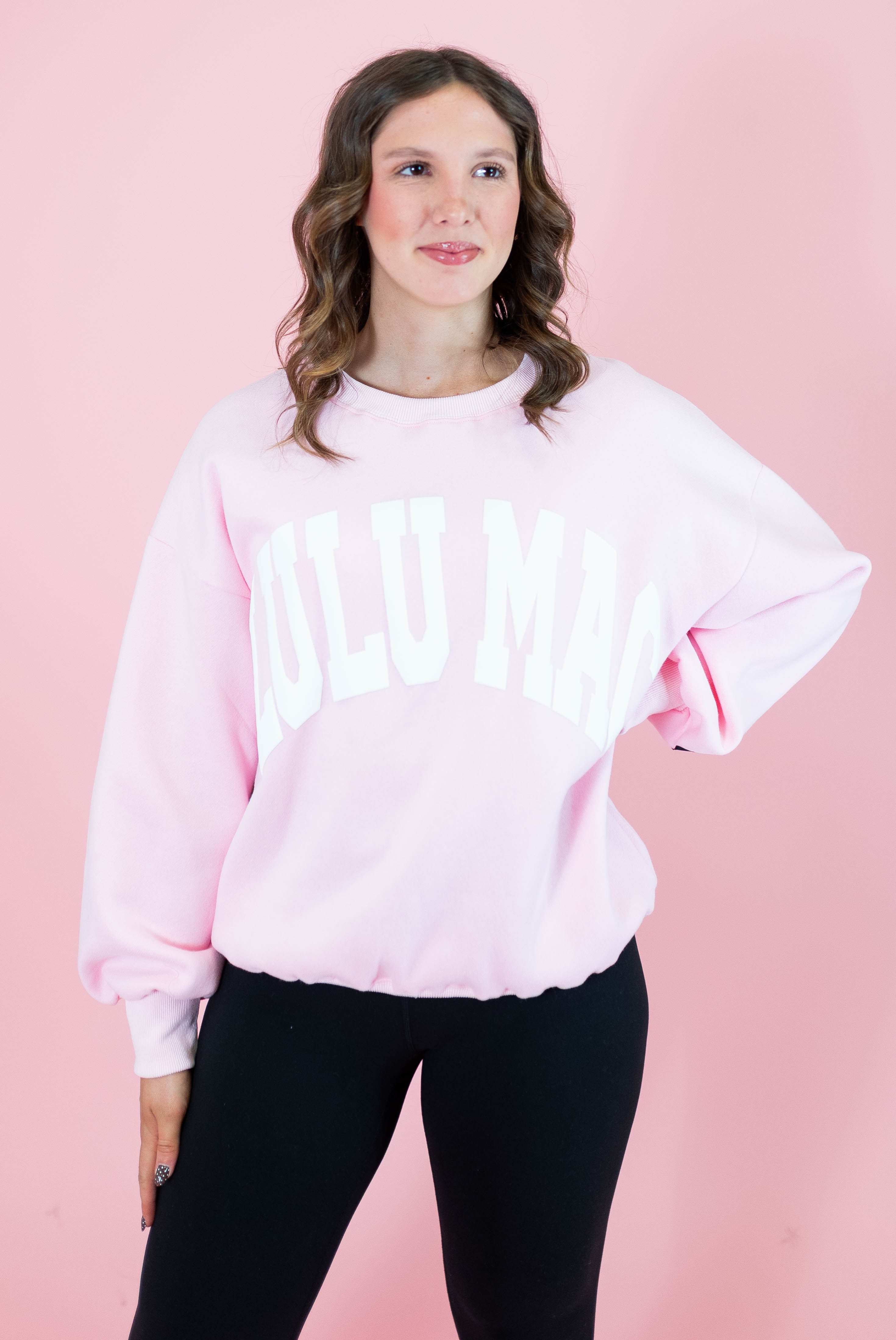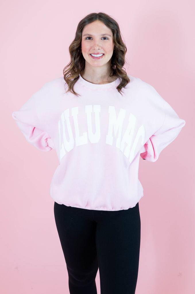 Cozy meets cute with the Lulu Mac Sweatshirt in Light Pink/White! Made from a soft 50% cotton and 50% polyester blend, it features playful puff letter details that add a fun, textured pop to every comfy moment. Perfect for brightening up any day!
