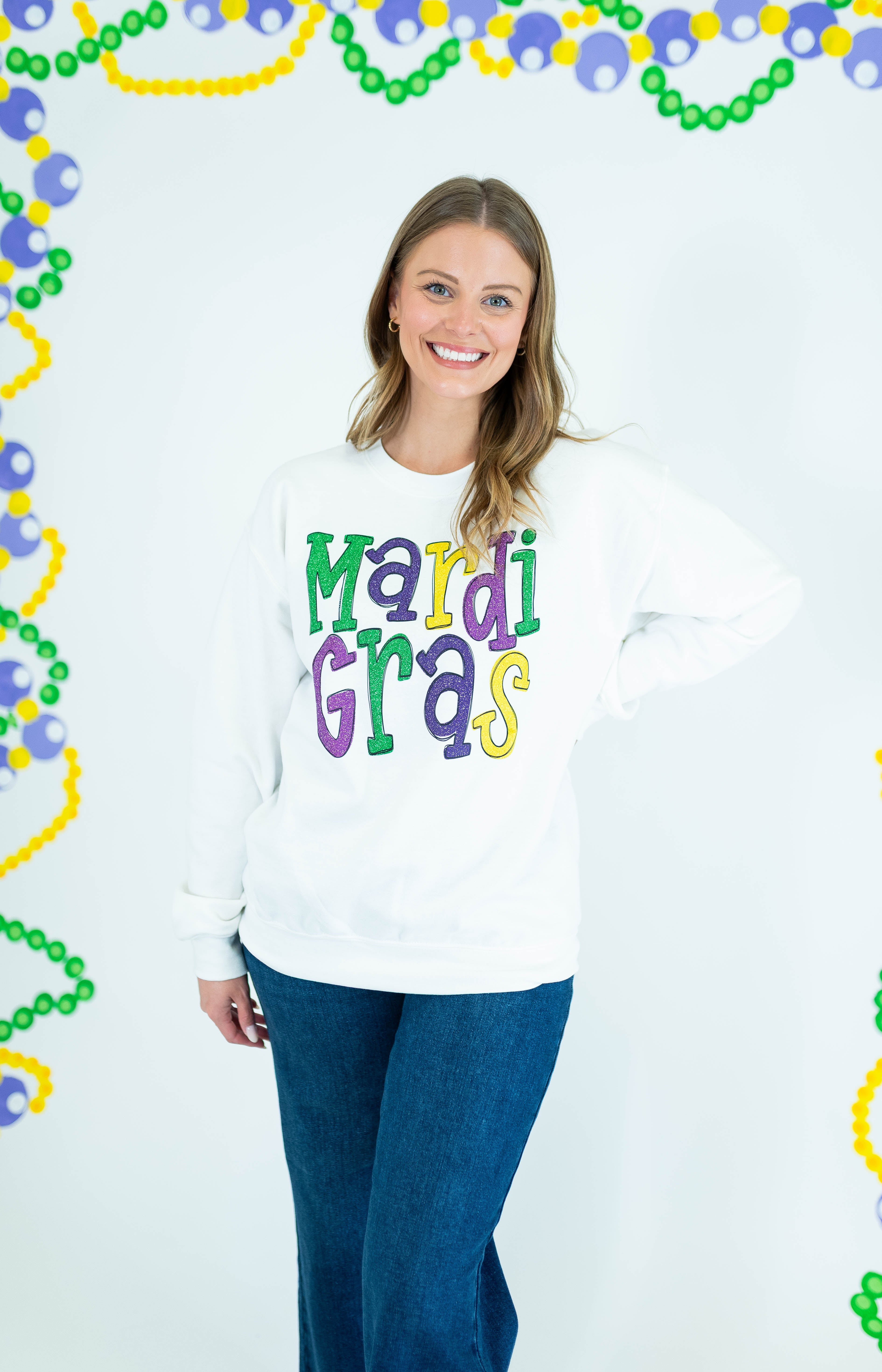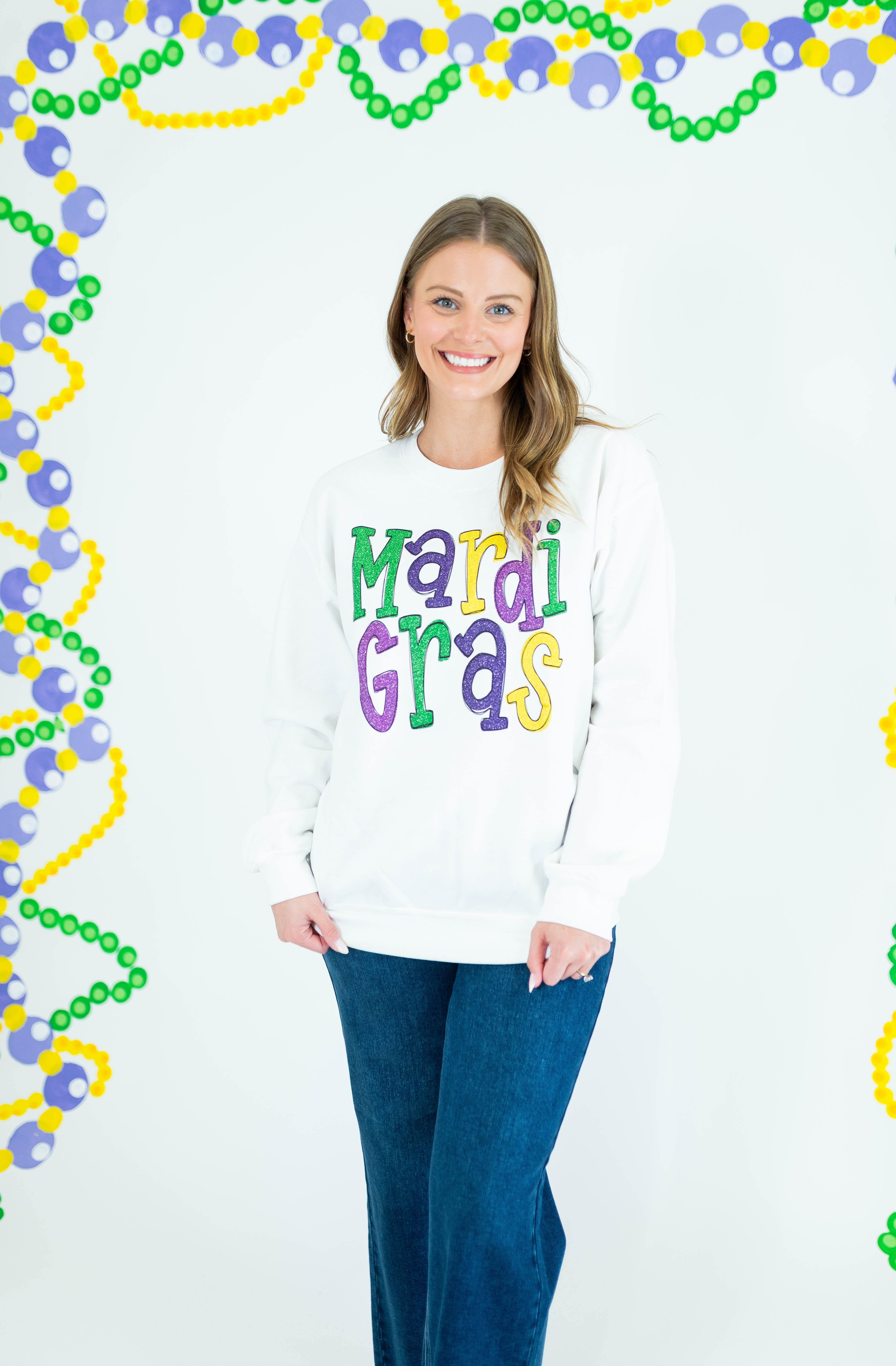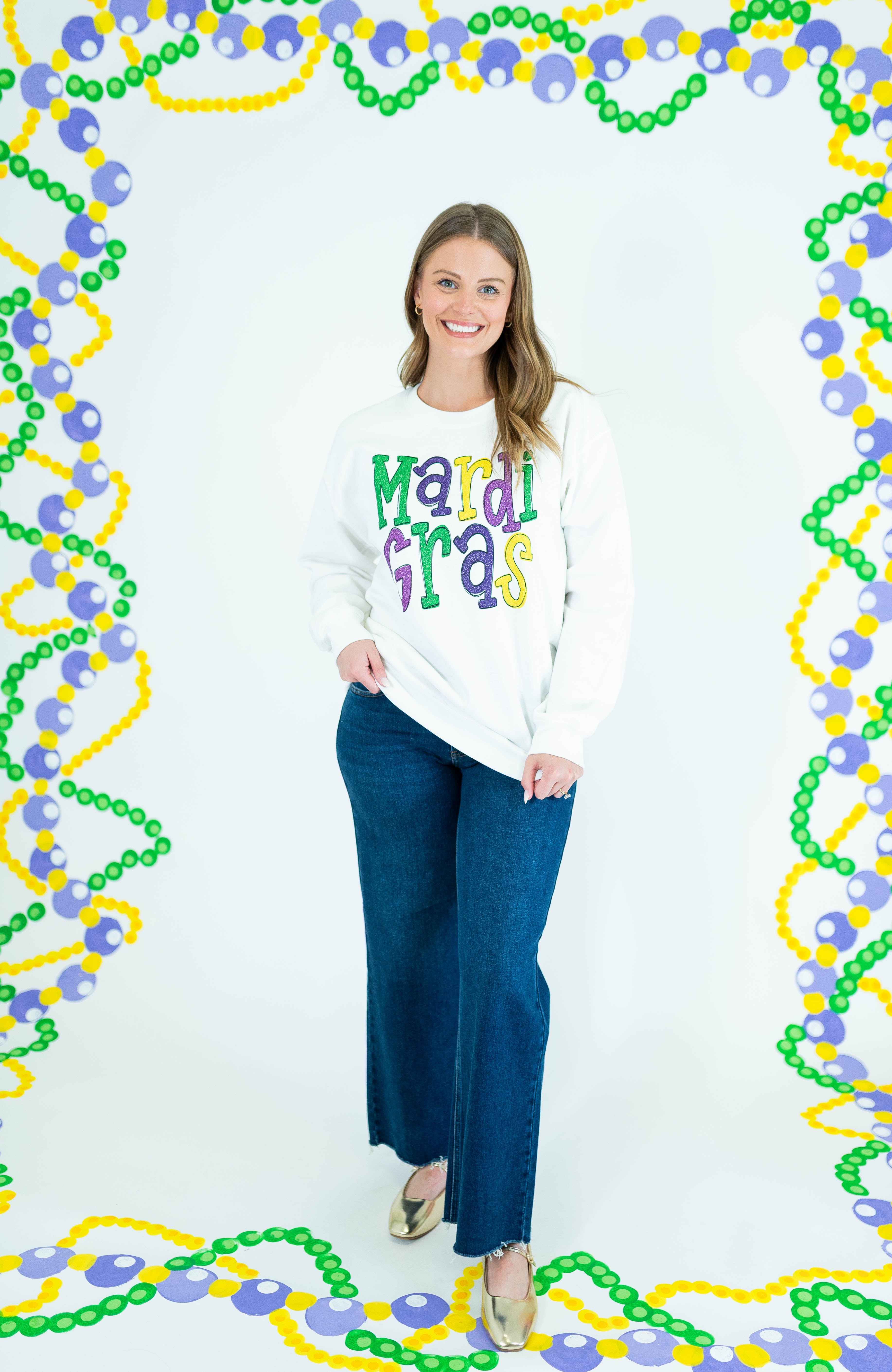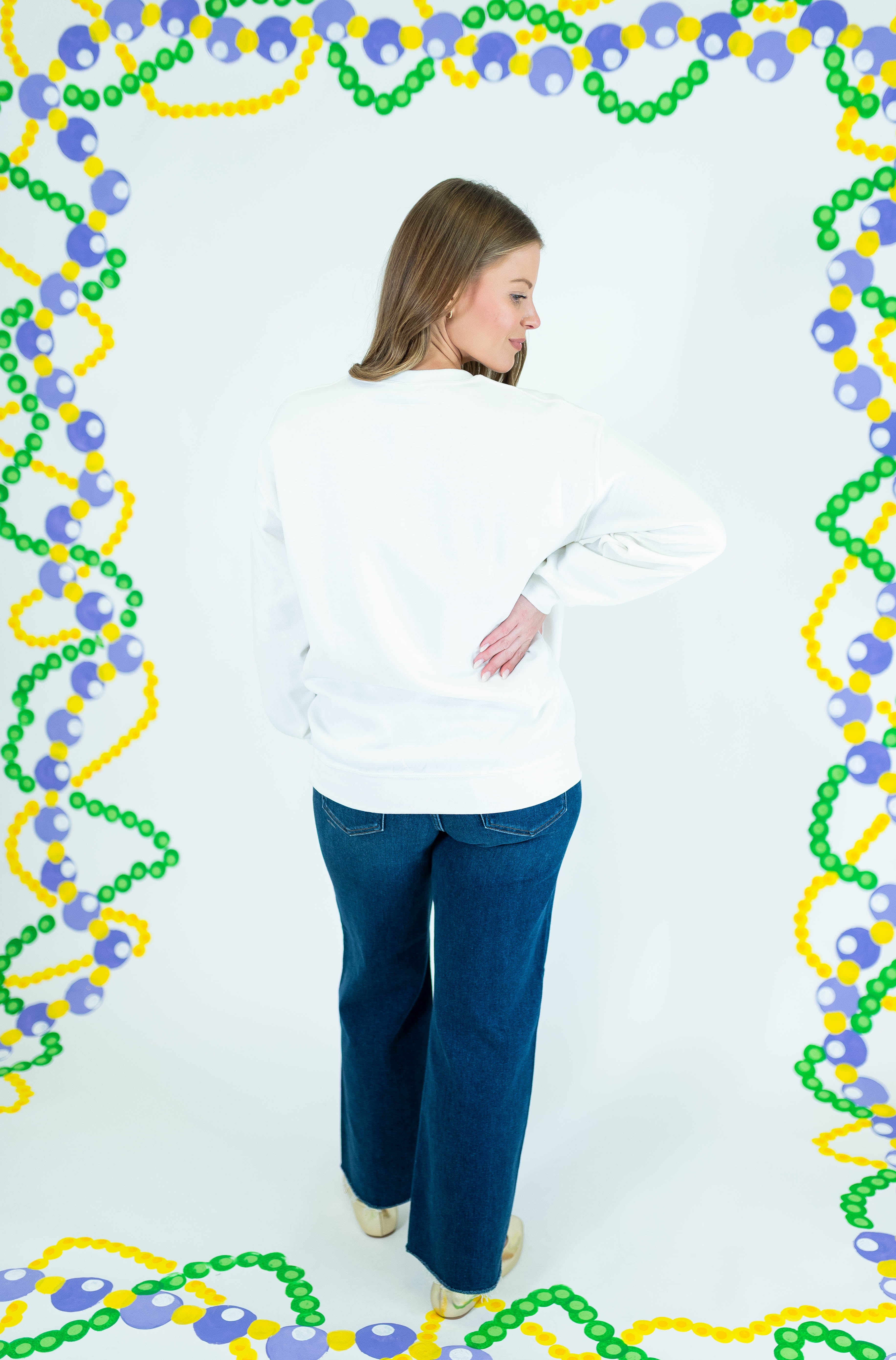 Mardi Gras Glitter Doodle Sweatshirt - White