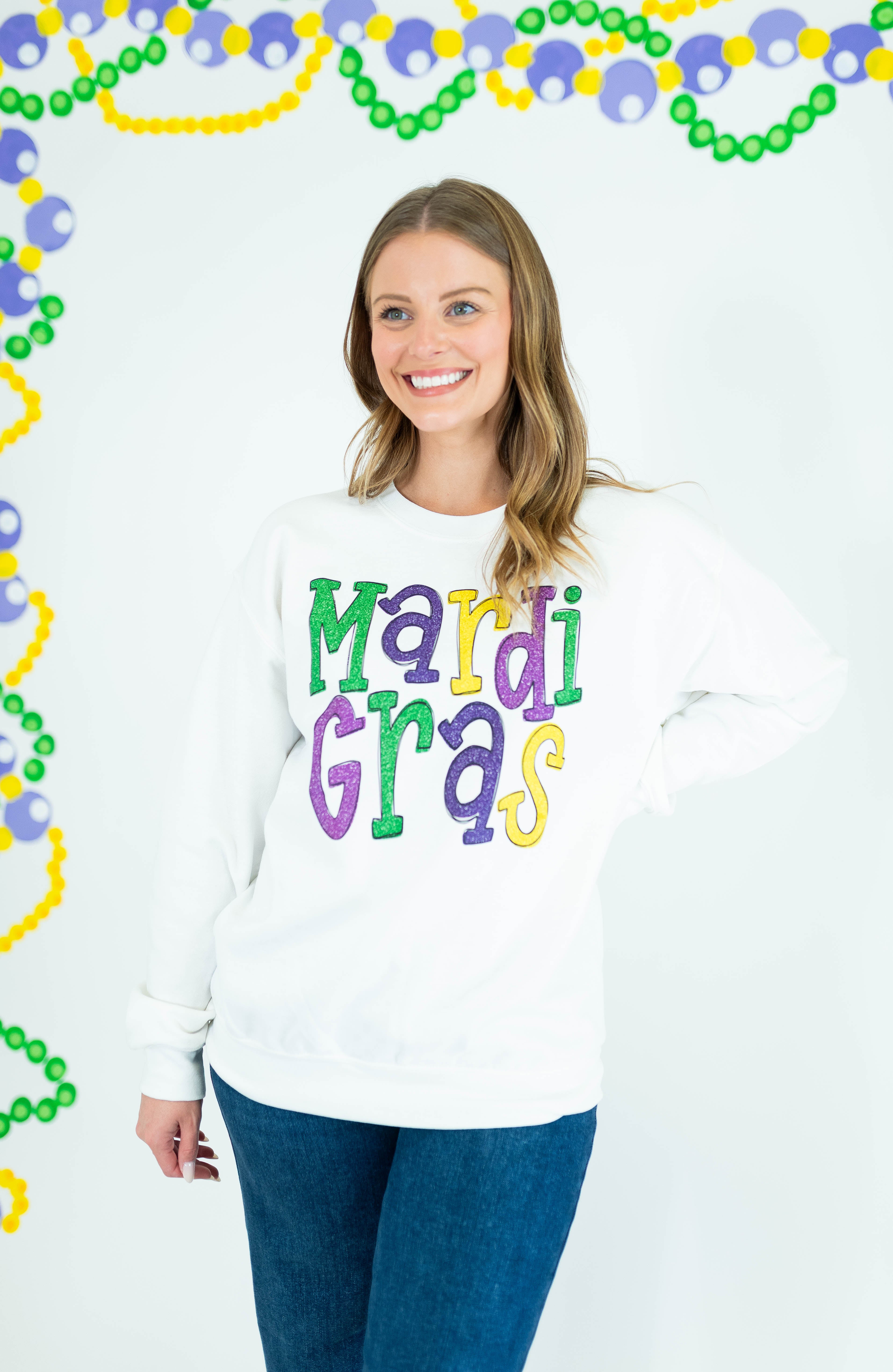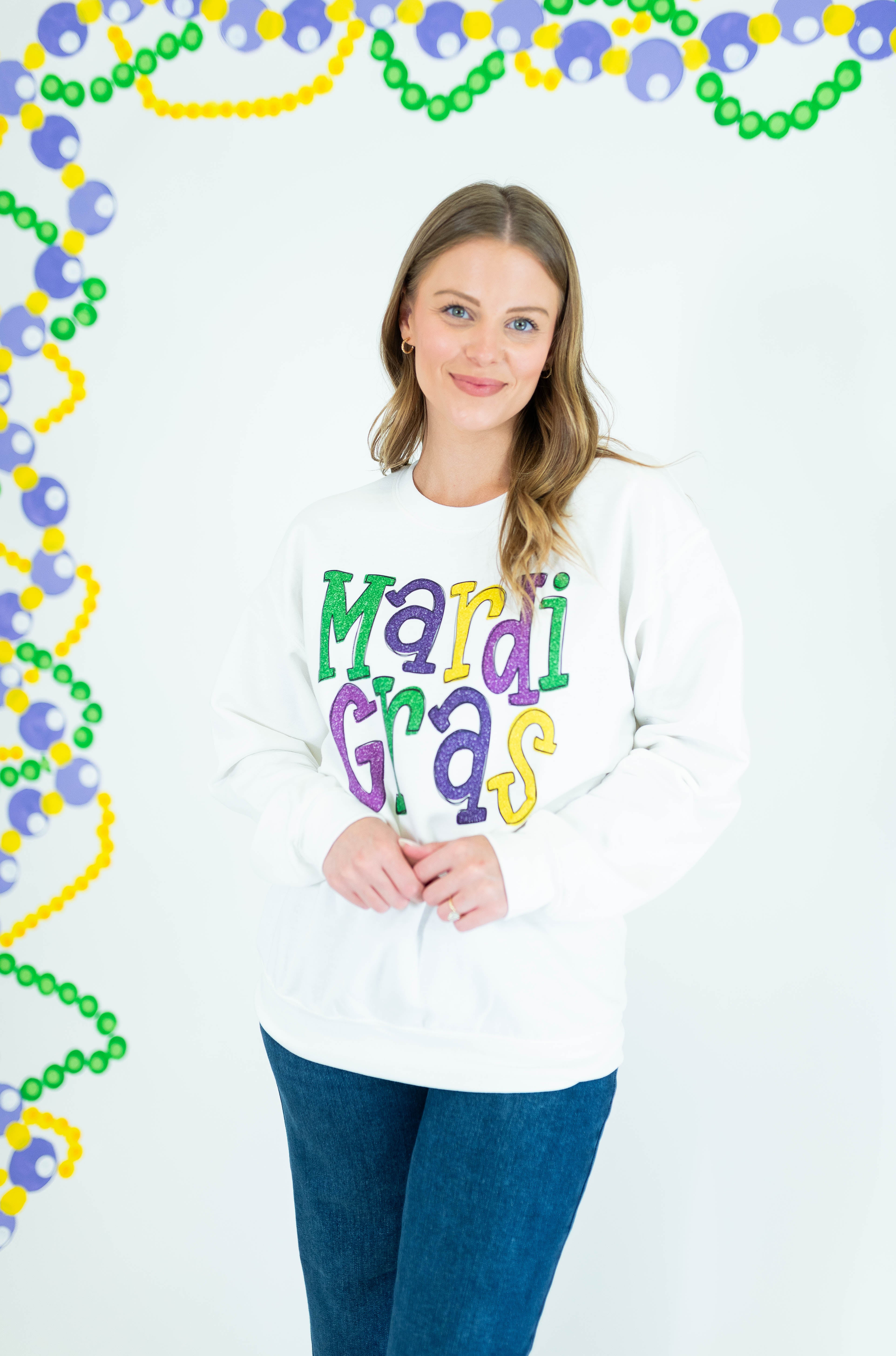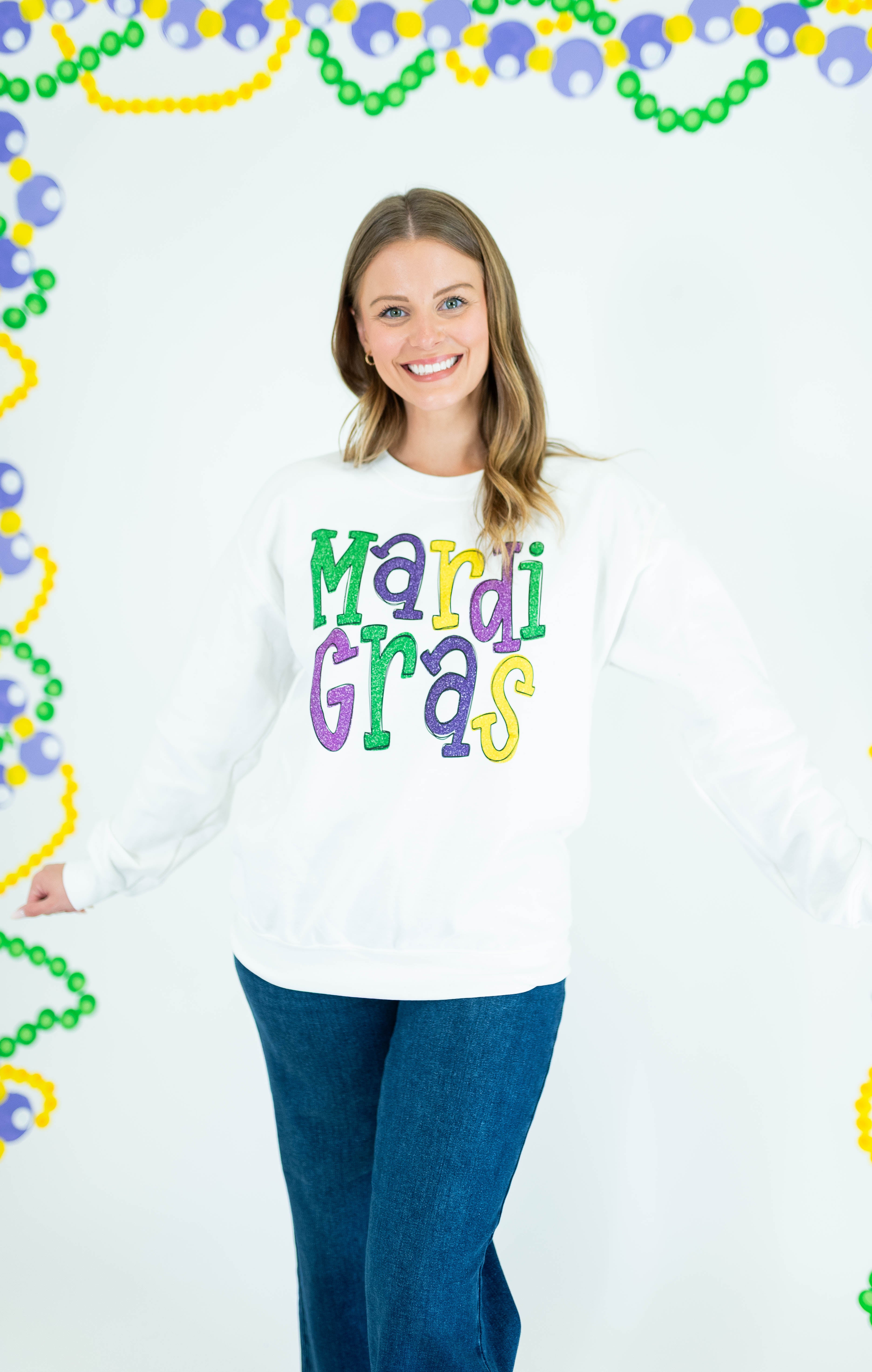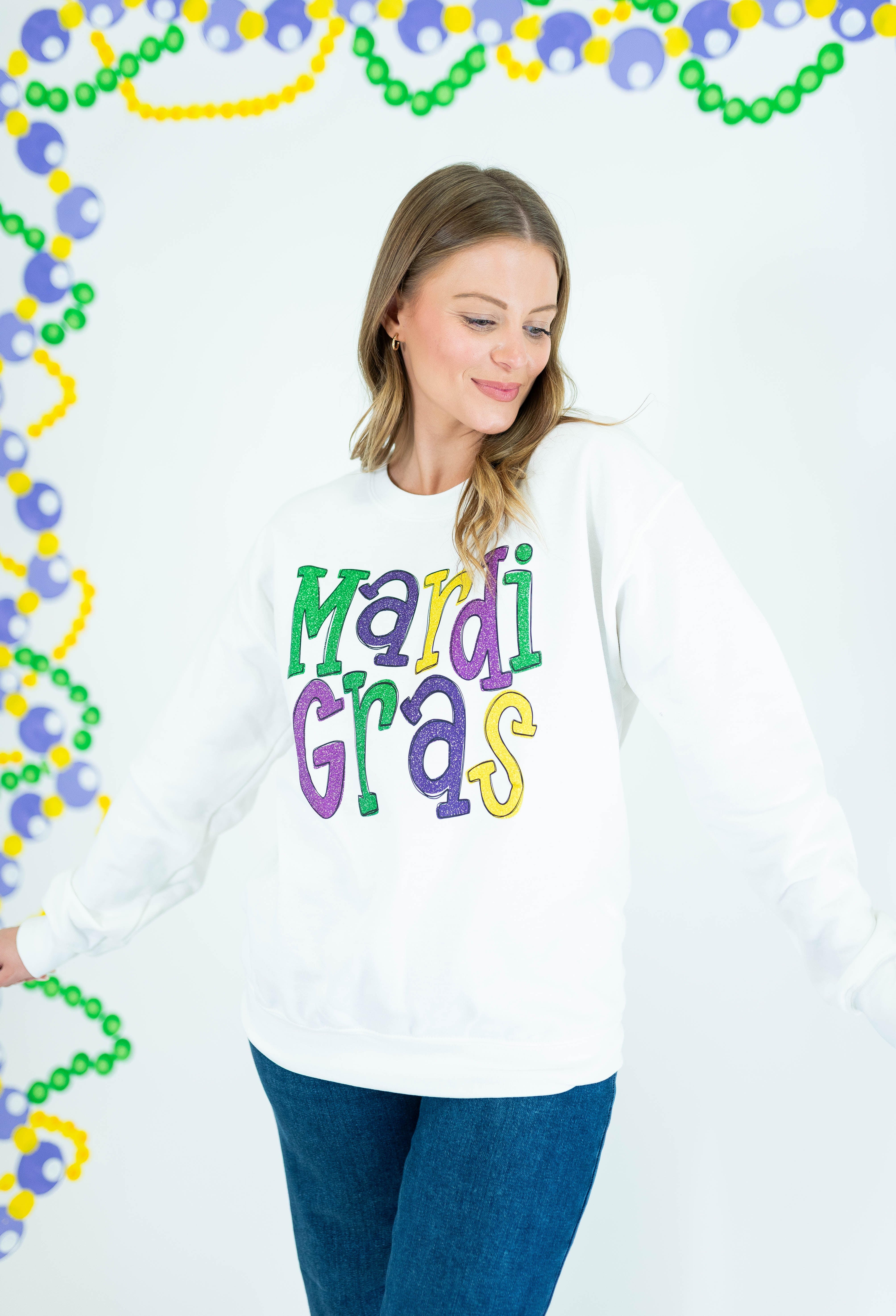 Mardi Gras Glitter Doodle Sweatshirt - White
