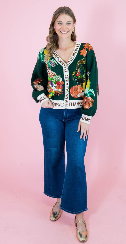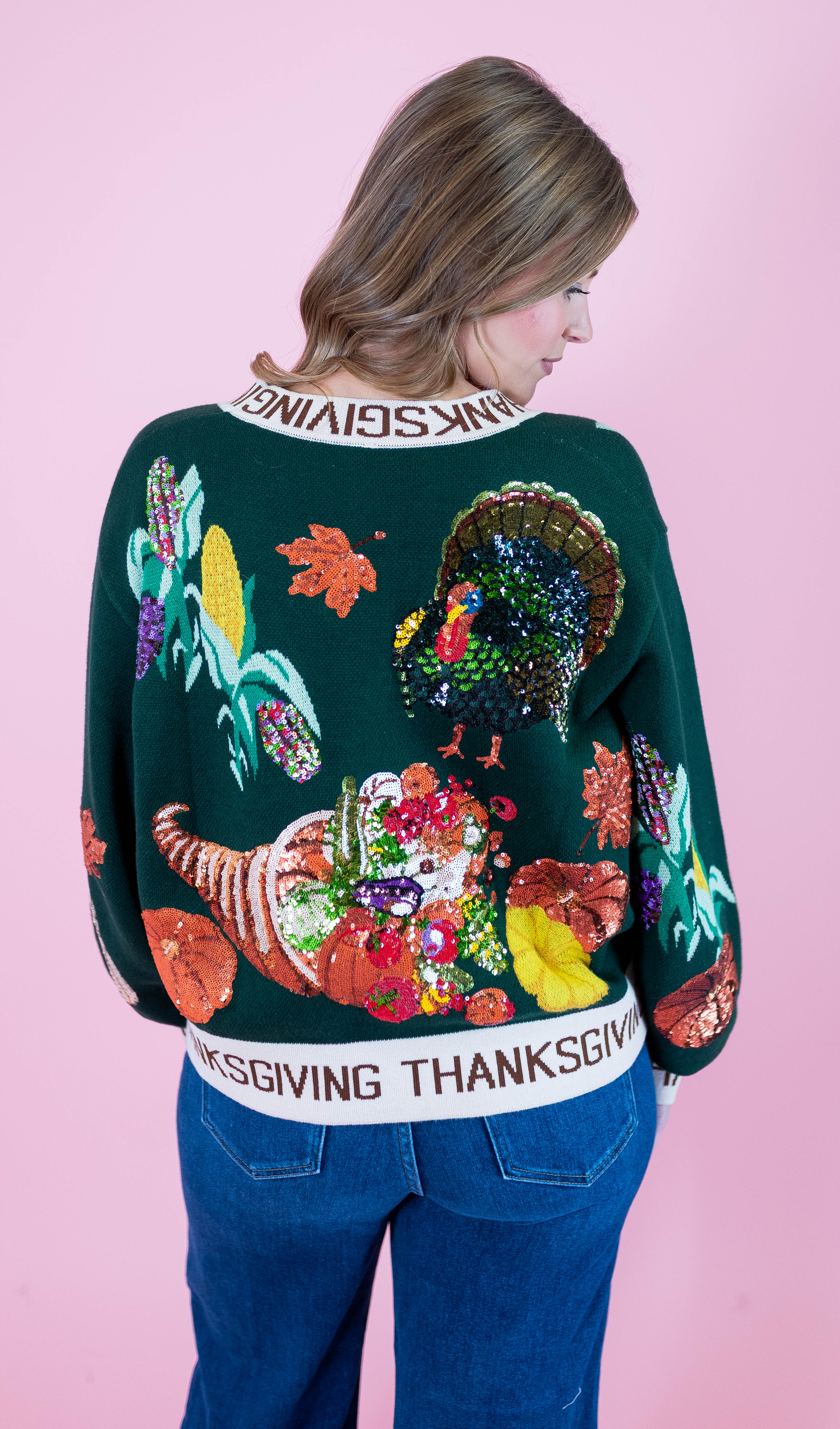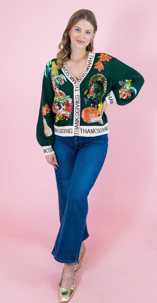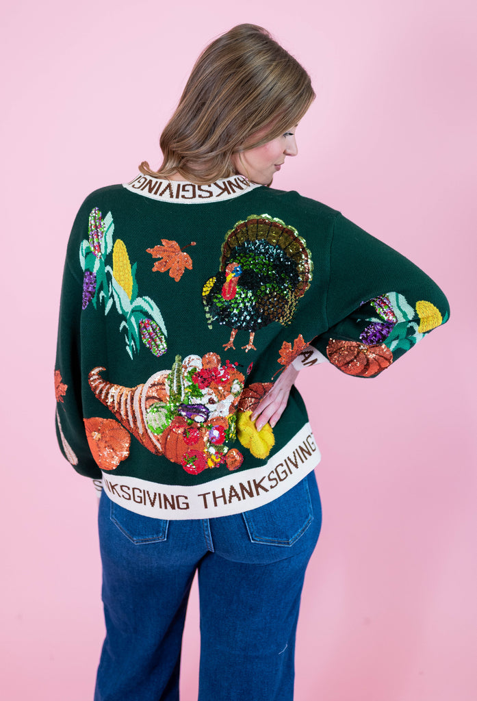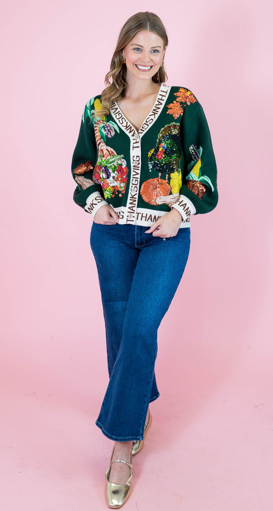 Queen Of Sparkles: Dark Green Thanksgiving Button Cardigan