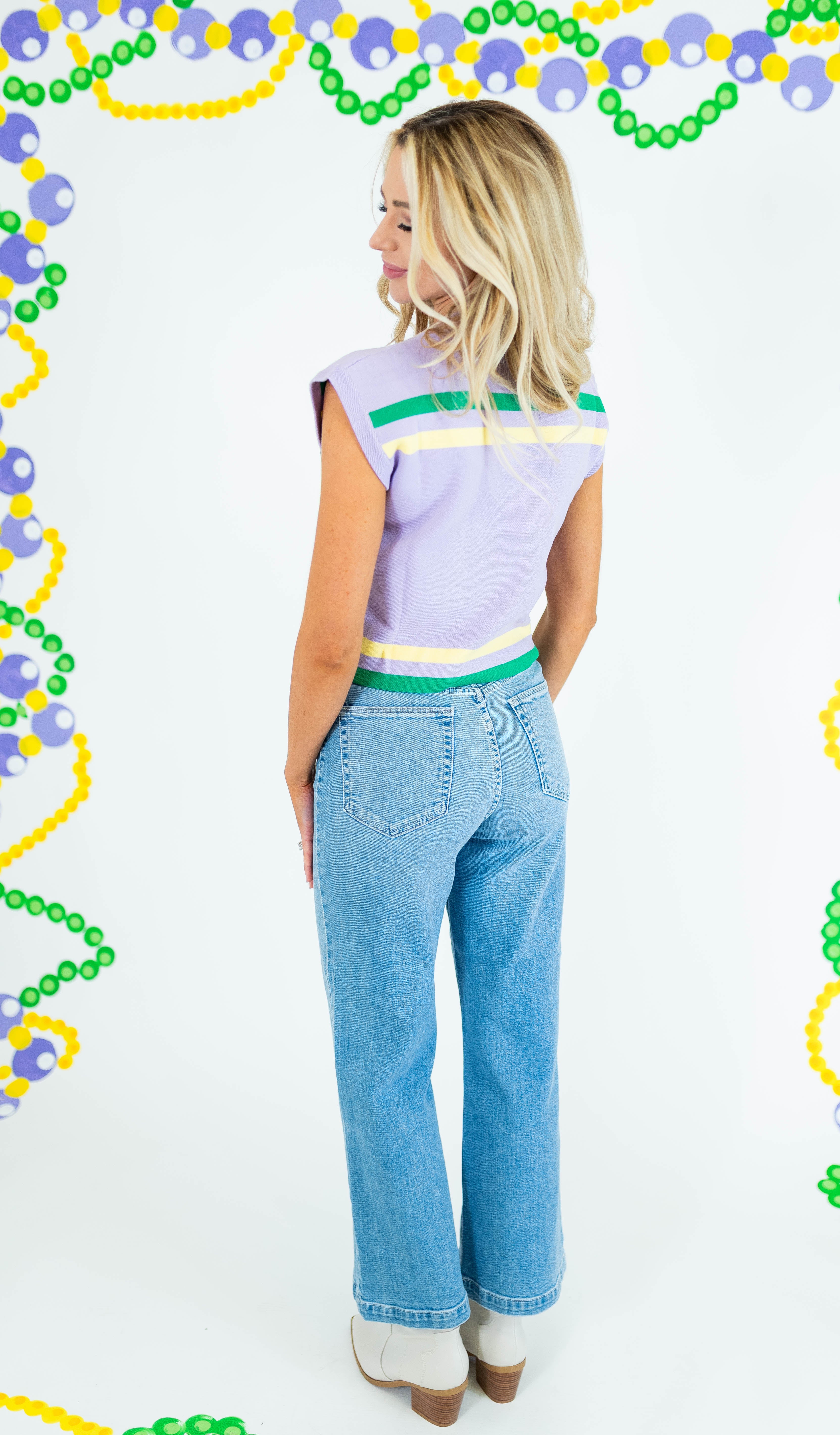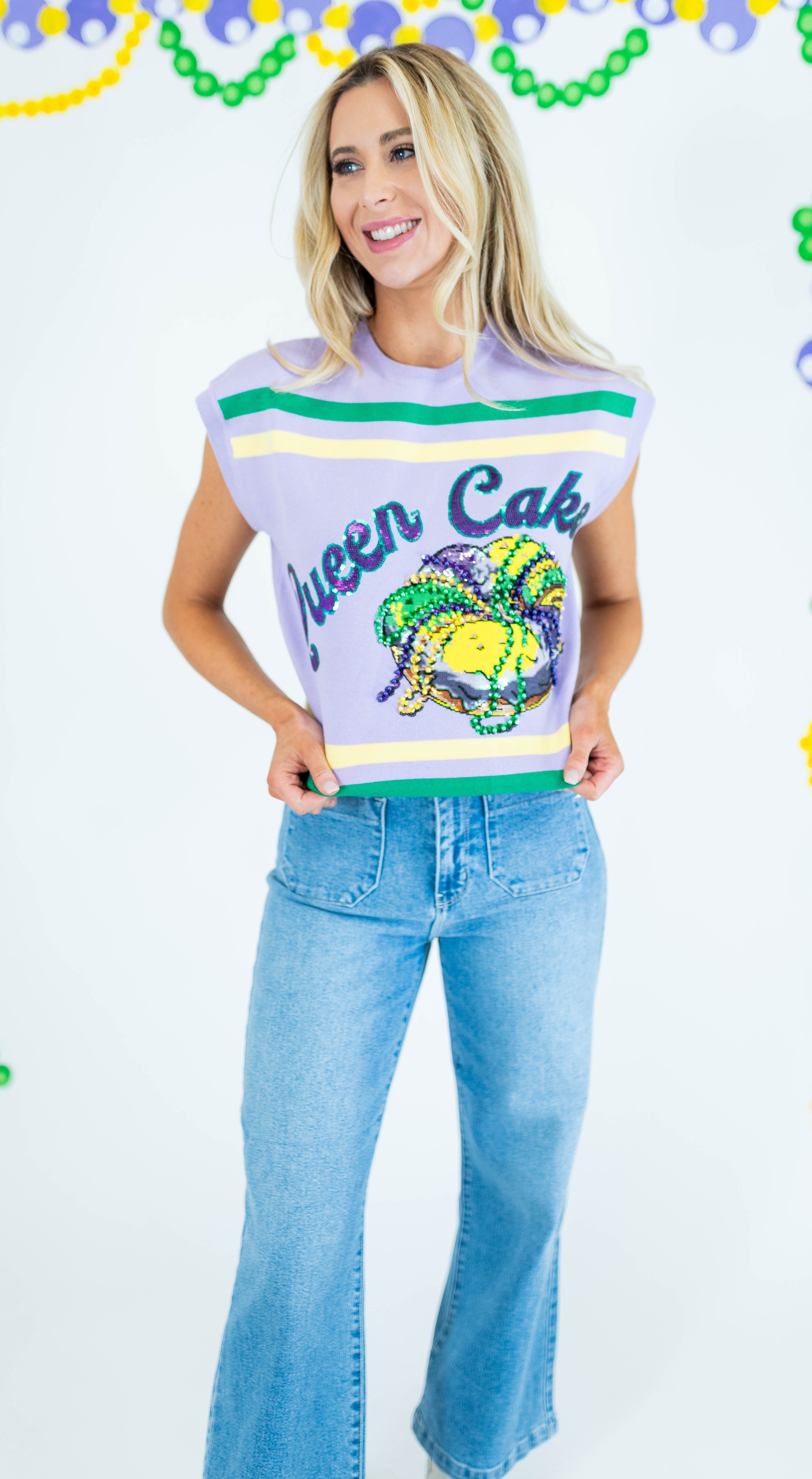 Queen Of Sparkles: Lavender Queen Cake Striped Sweater Top