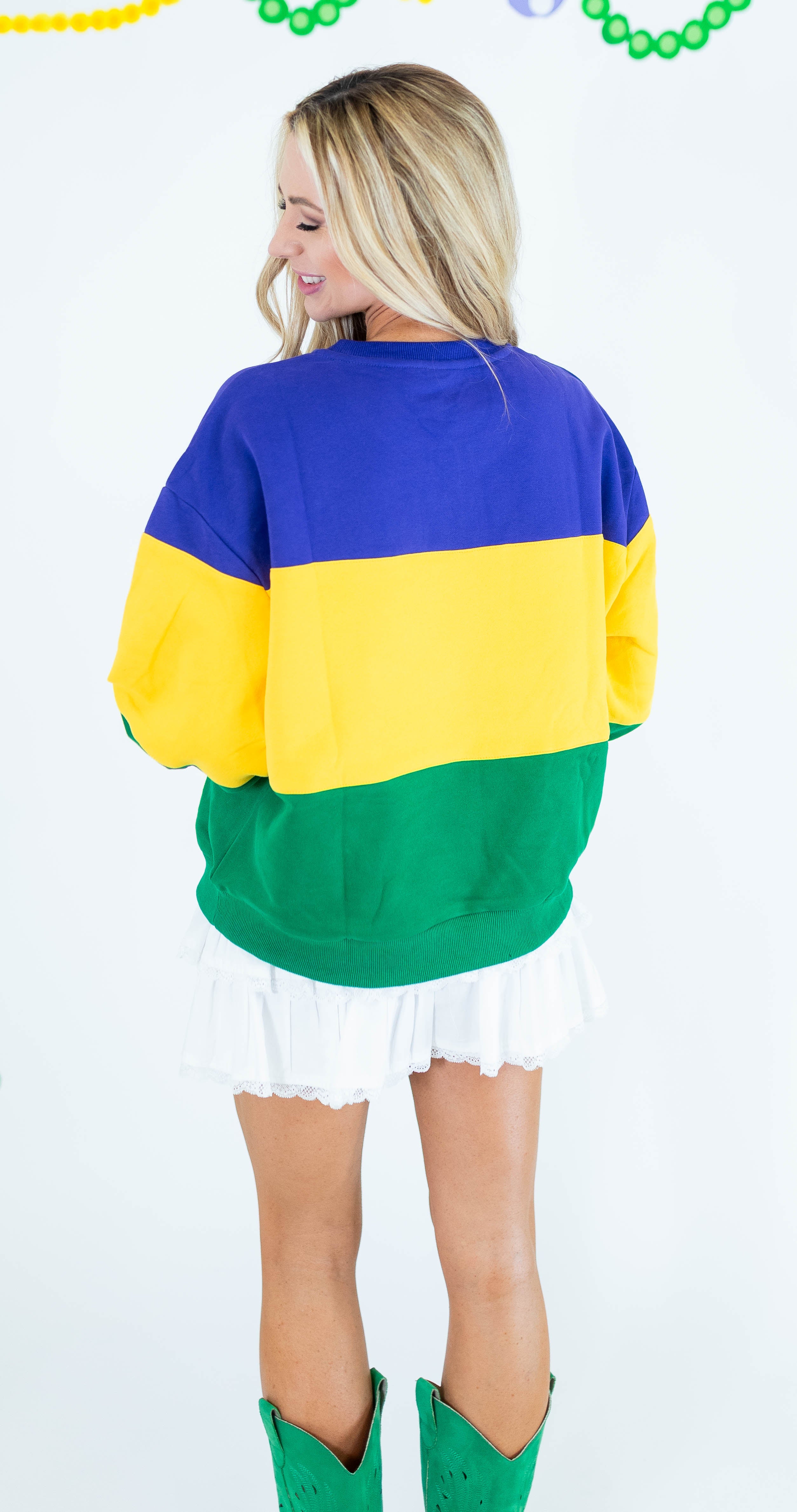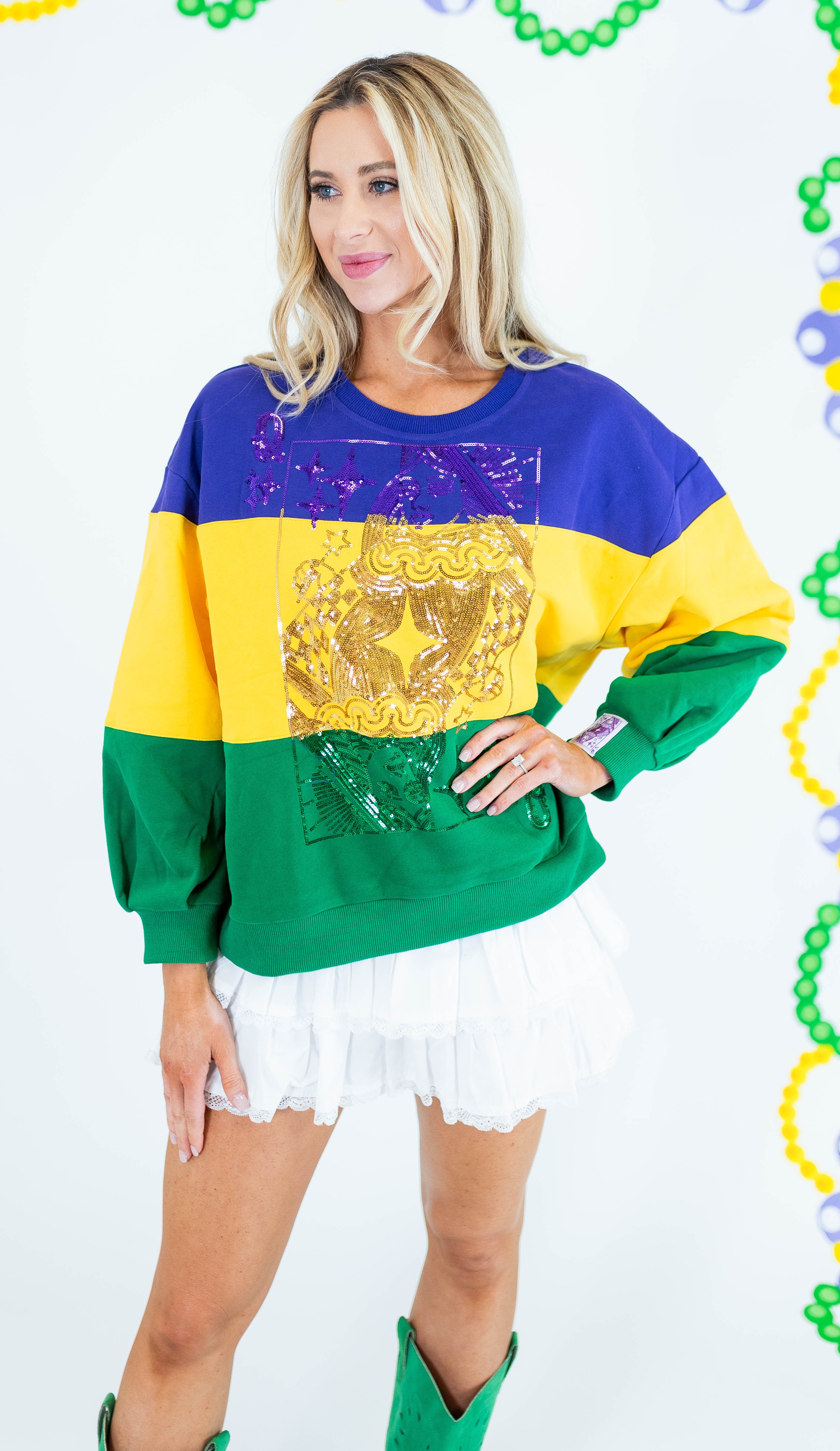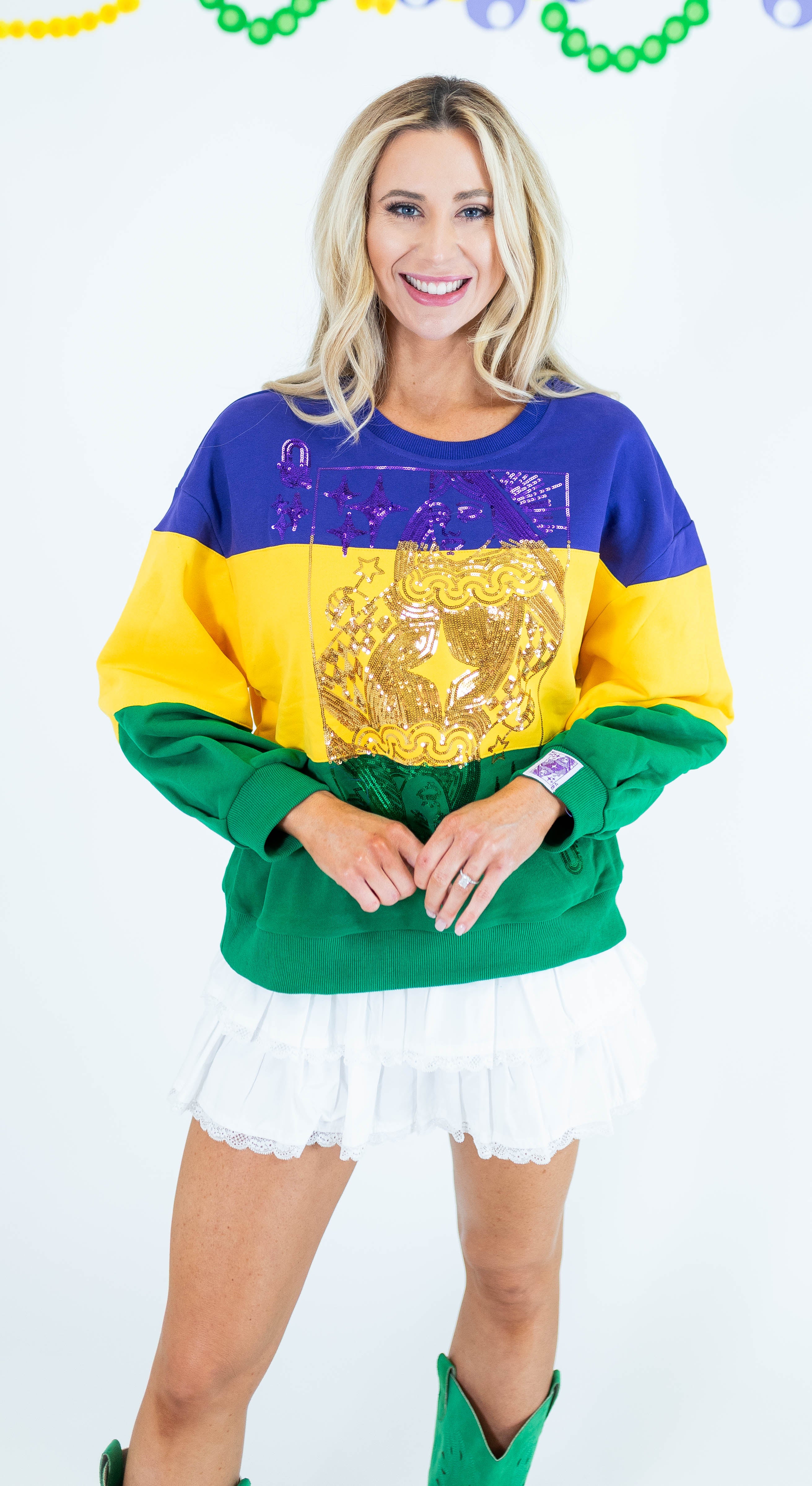 Queen Of Sparkles: Mardi Gras Striped Queen Card Sweatshirt