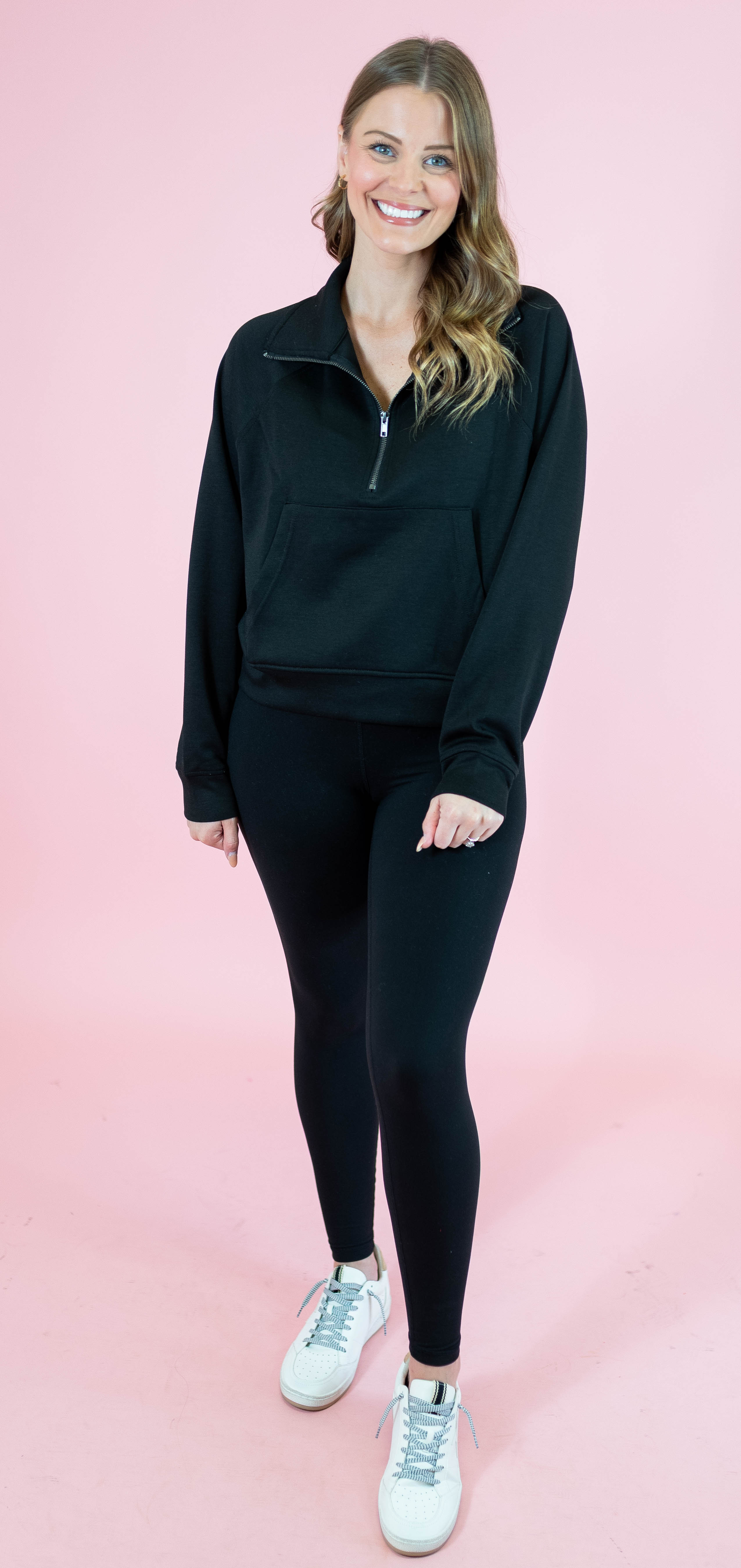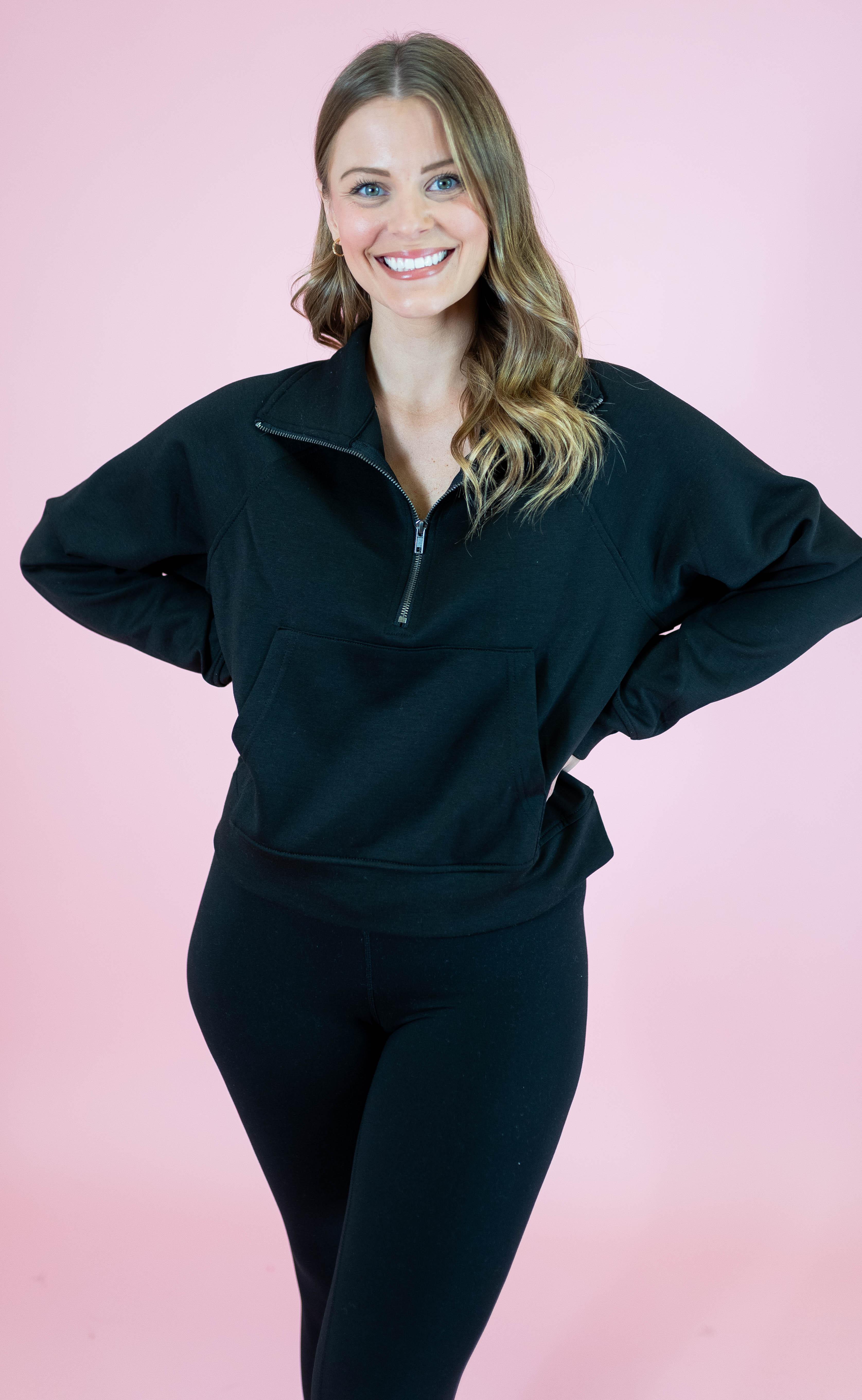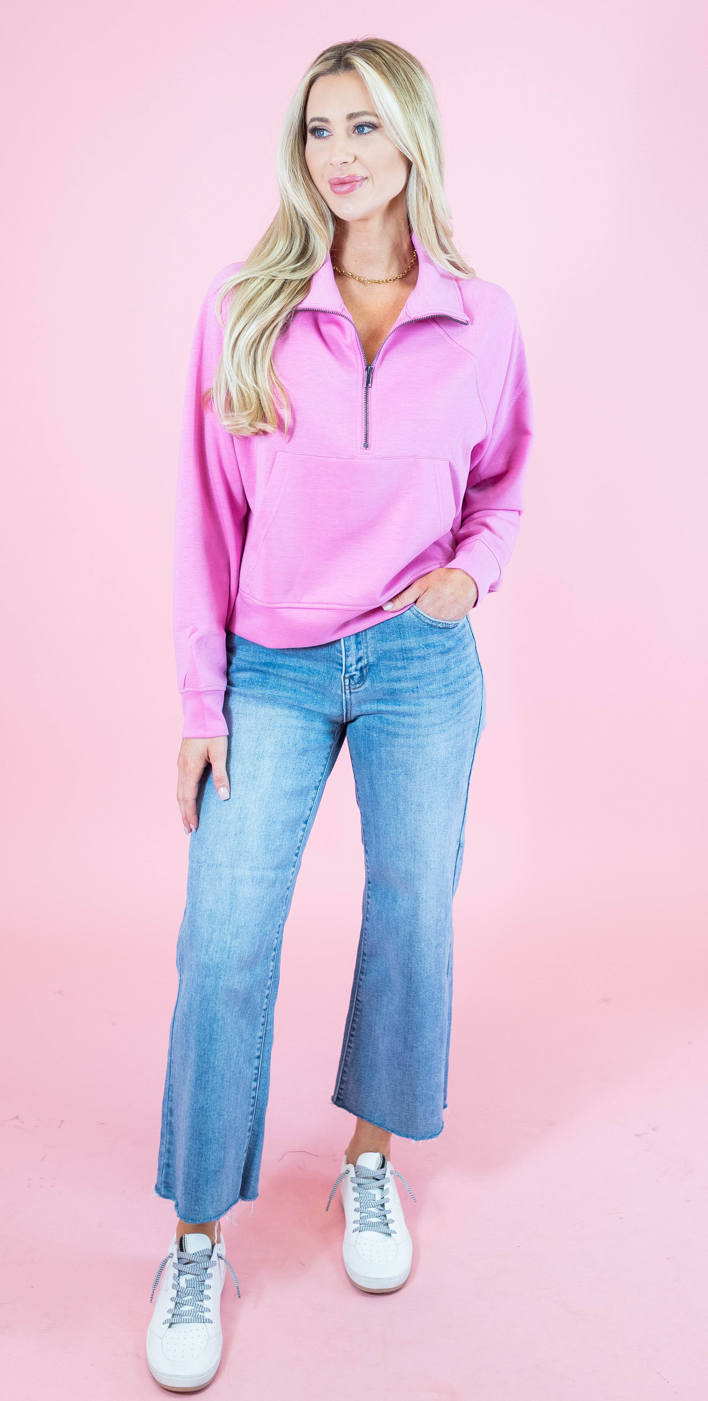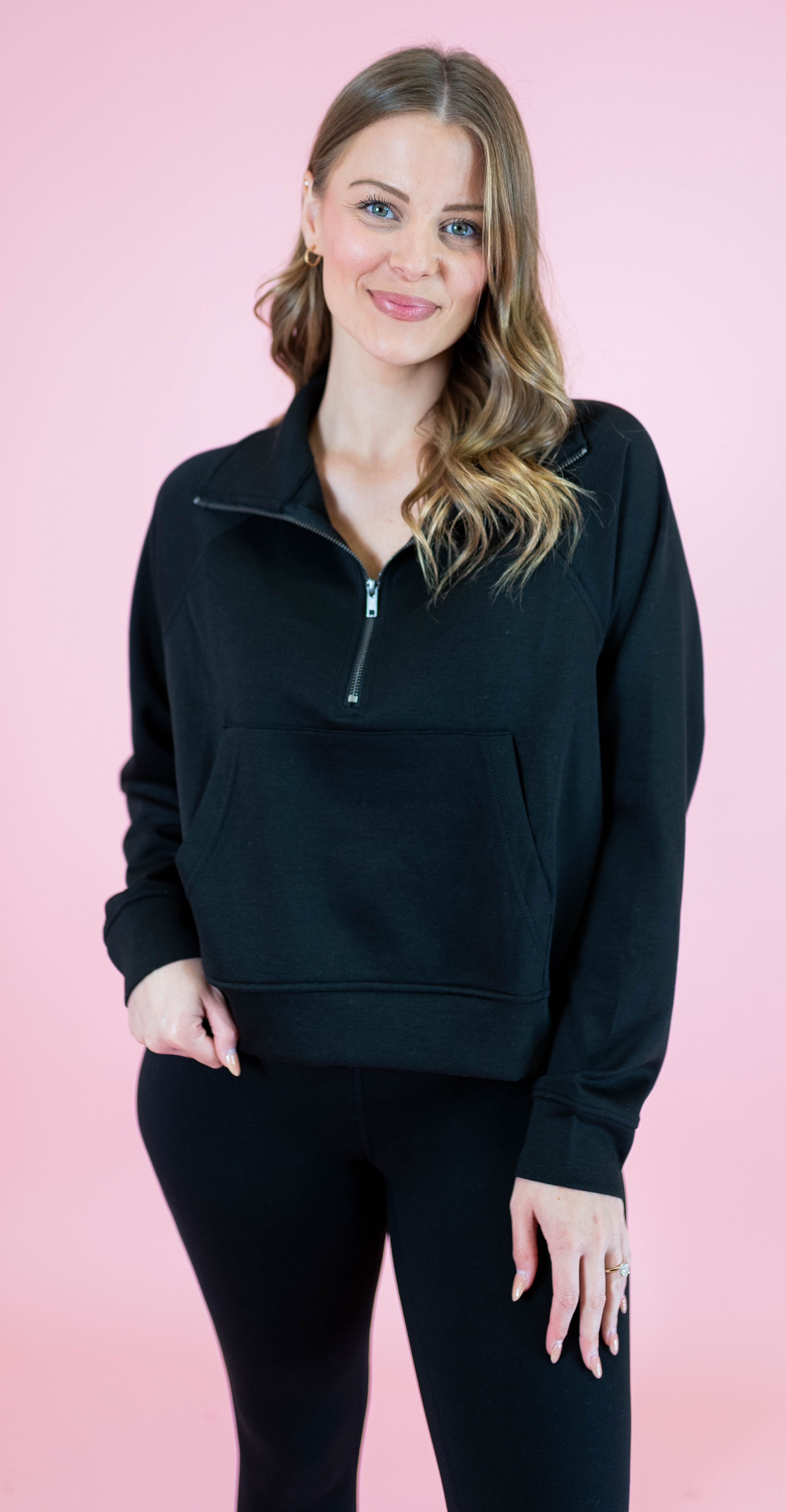 Elevate your casual wardrobe with this versatile Zenana Scuba Half Zip Pullover, designed for comfort and style. The soft scuba fabric drapes beautifully while providing a cozy, relaxed fit perfect for layering or wearing solo. A functional kangaroo pocket keeps your hands warm and essentials within reach, while the half-zip neckline offers easy adjustability for any temperature. Available in timeless black and playful candy pink, this pullover transitions seamlessly from weekend errands to relaxed hangouts. Whether you're reaching for it on chilly mornings or pairing it with your favorite bottoms, this piece delivers effortless style and everyday comfort.