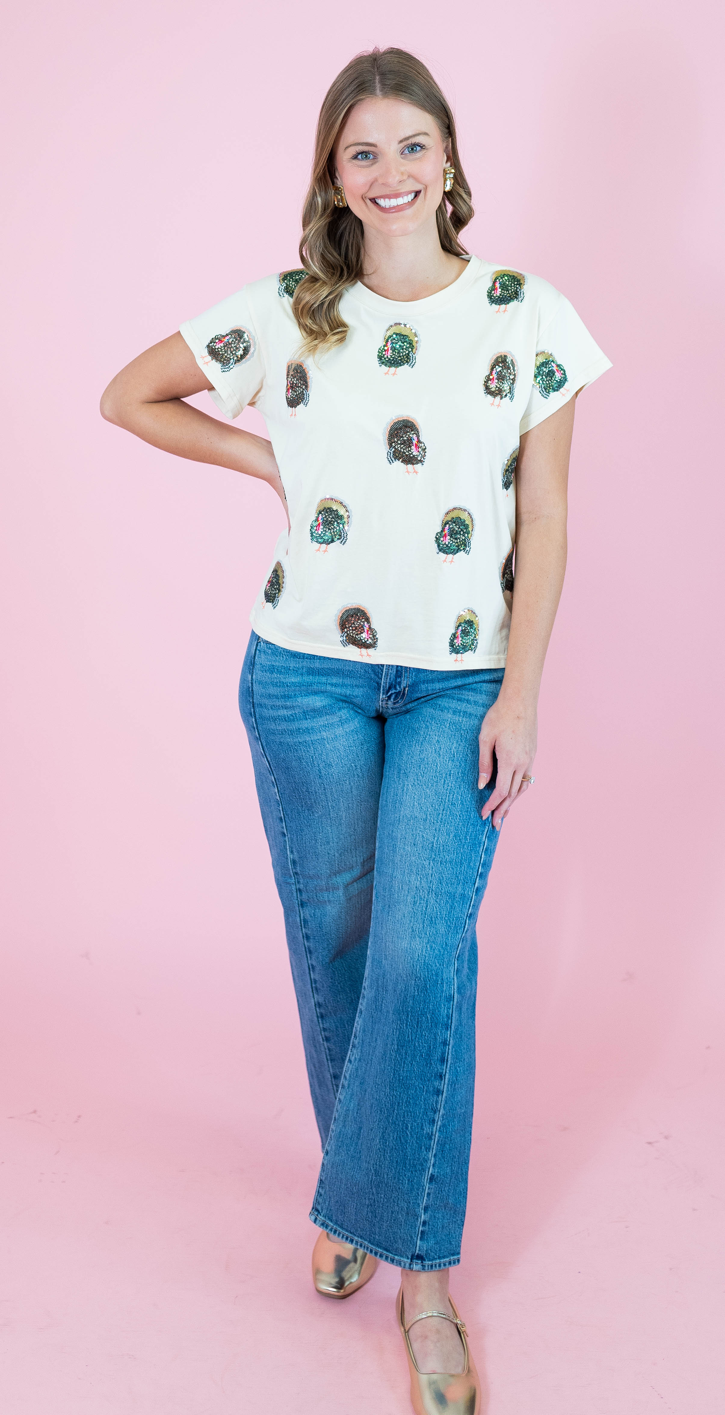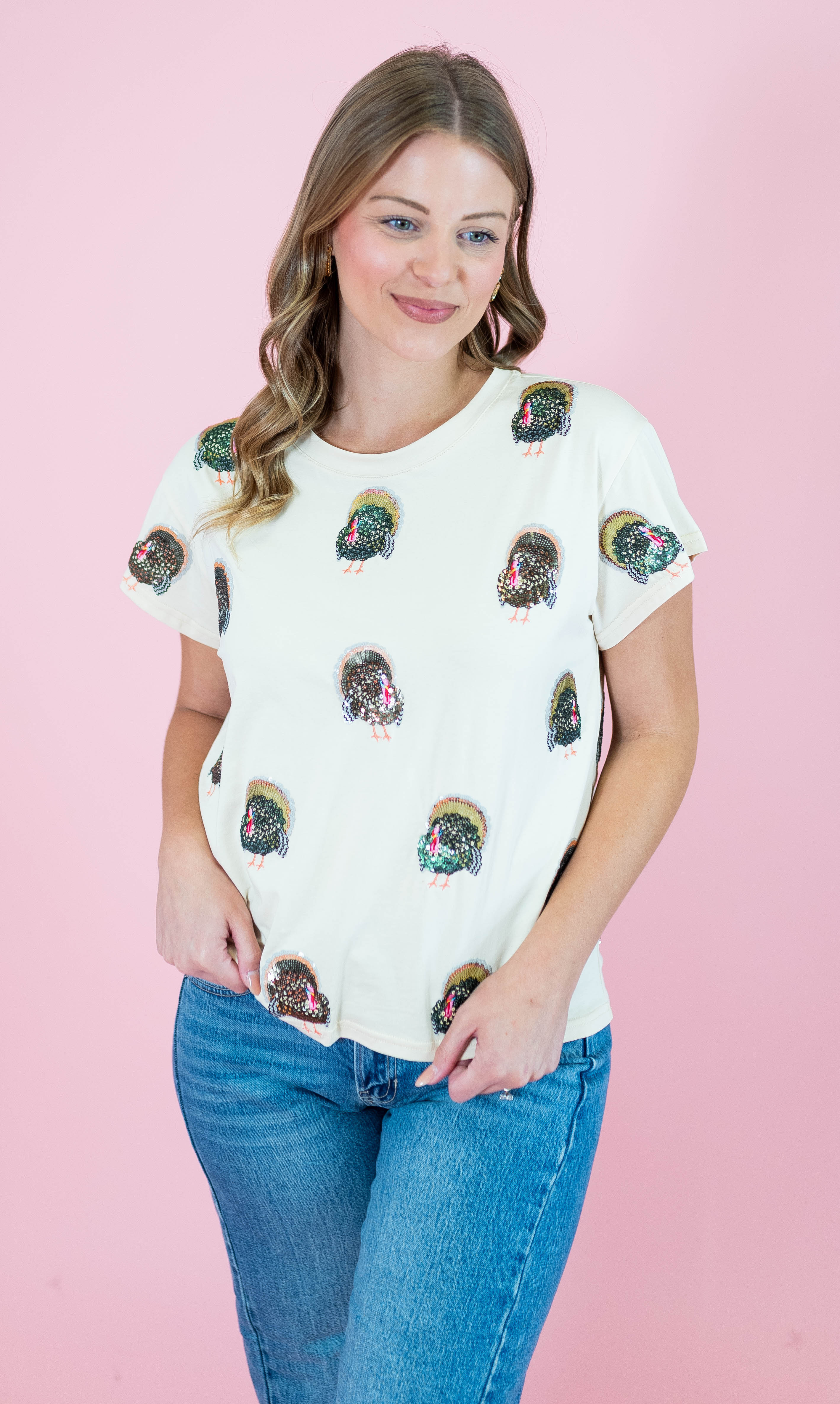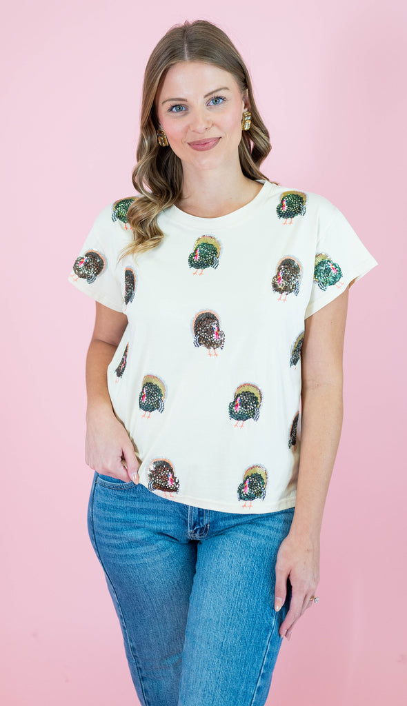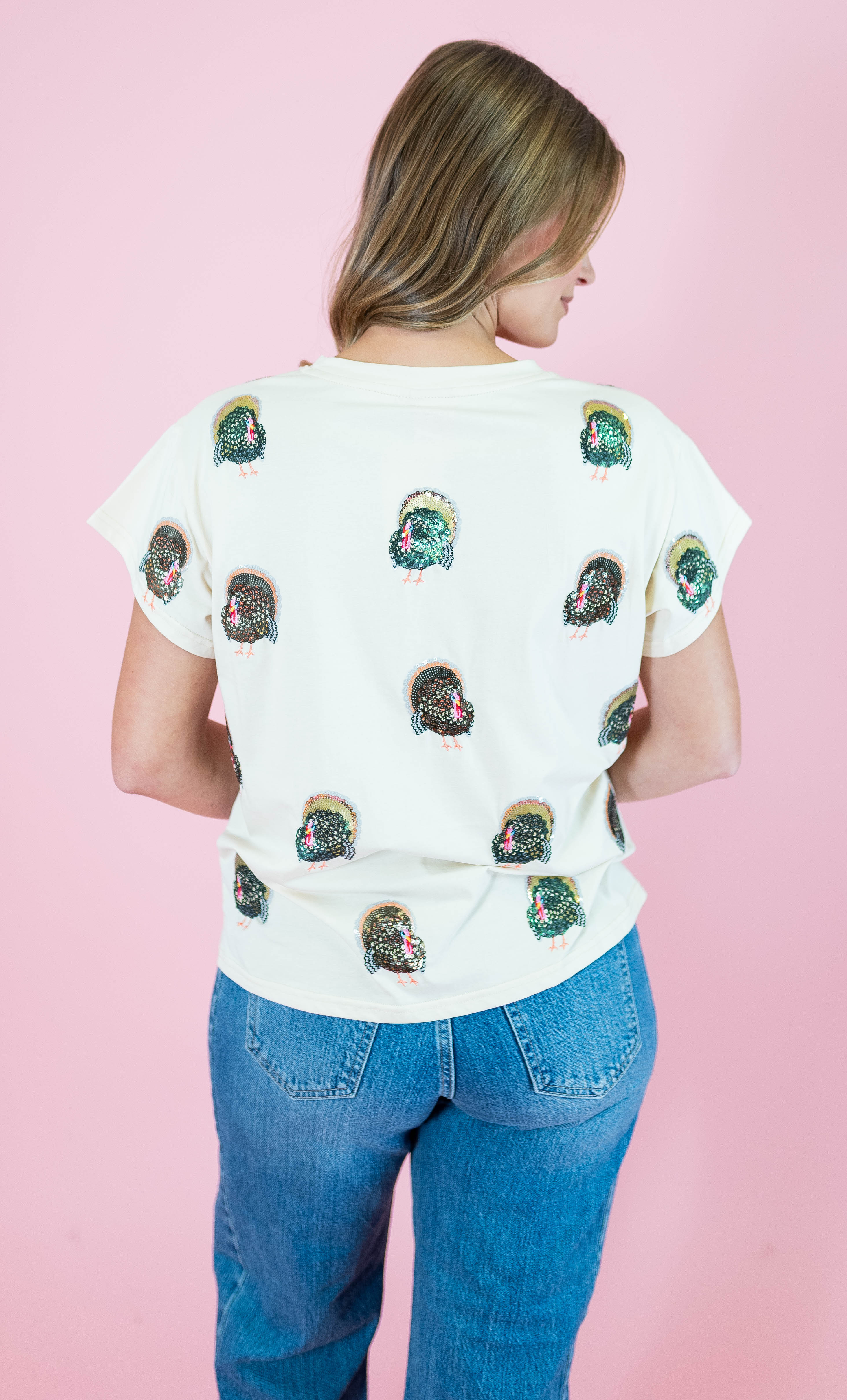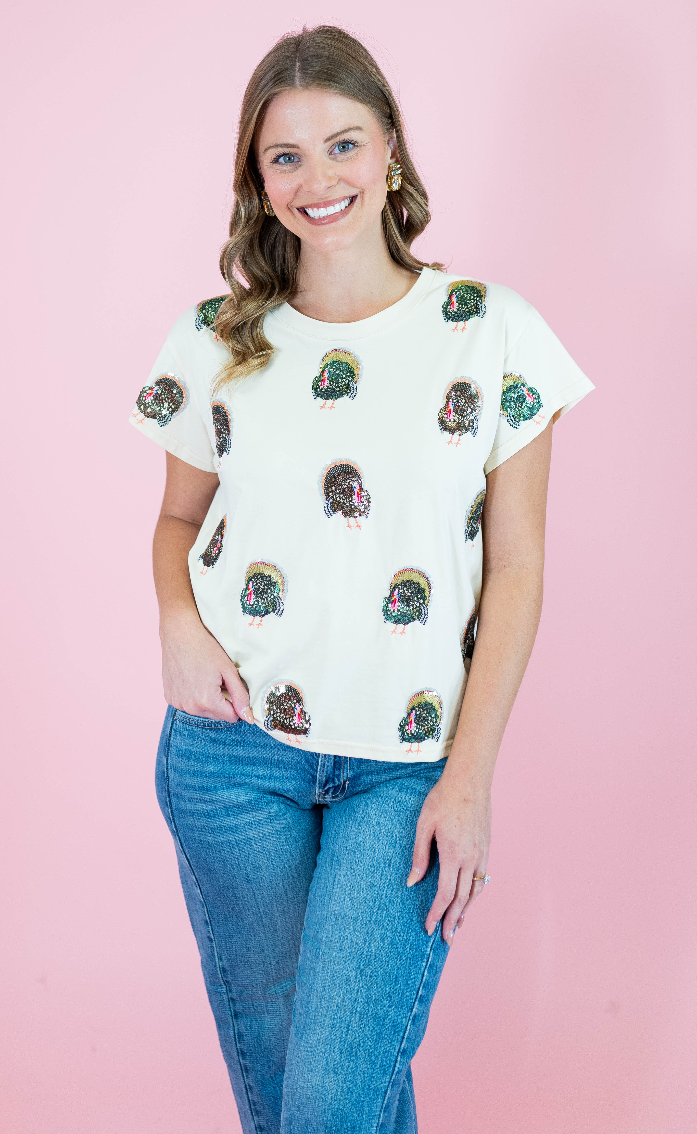 Queen Of Sparkles: Beige Small Turkey Icon Tee