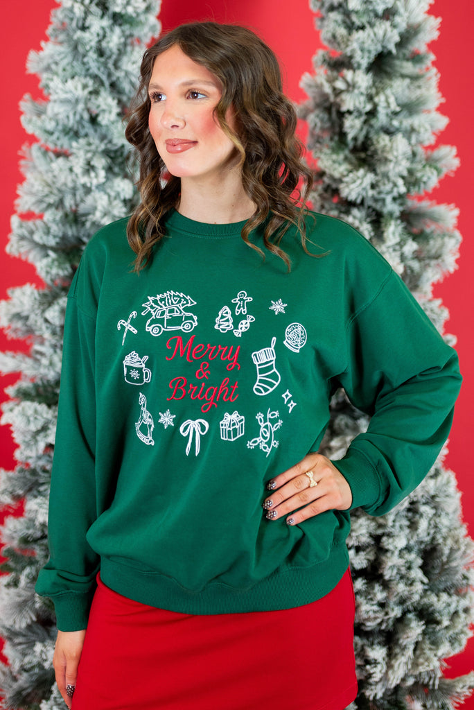 Celebrate the season in cozy style with this Christmas Doodle Embroidered Sweatshirt. Crafted in rich hunter green, it features charming embroidered holiday symbols that bring festive cheer to your everyday wardrobe. Perfect for holiday gatherings, casual outings, or relaxing at home, this sweatshirt combines comfort with seasonal flair. The detailed embroidery adds a touch of personality and warmth that generic holiday wear simply can't match. Make it your go-to piece for spreading Christmas spirit all season long.