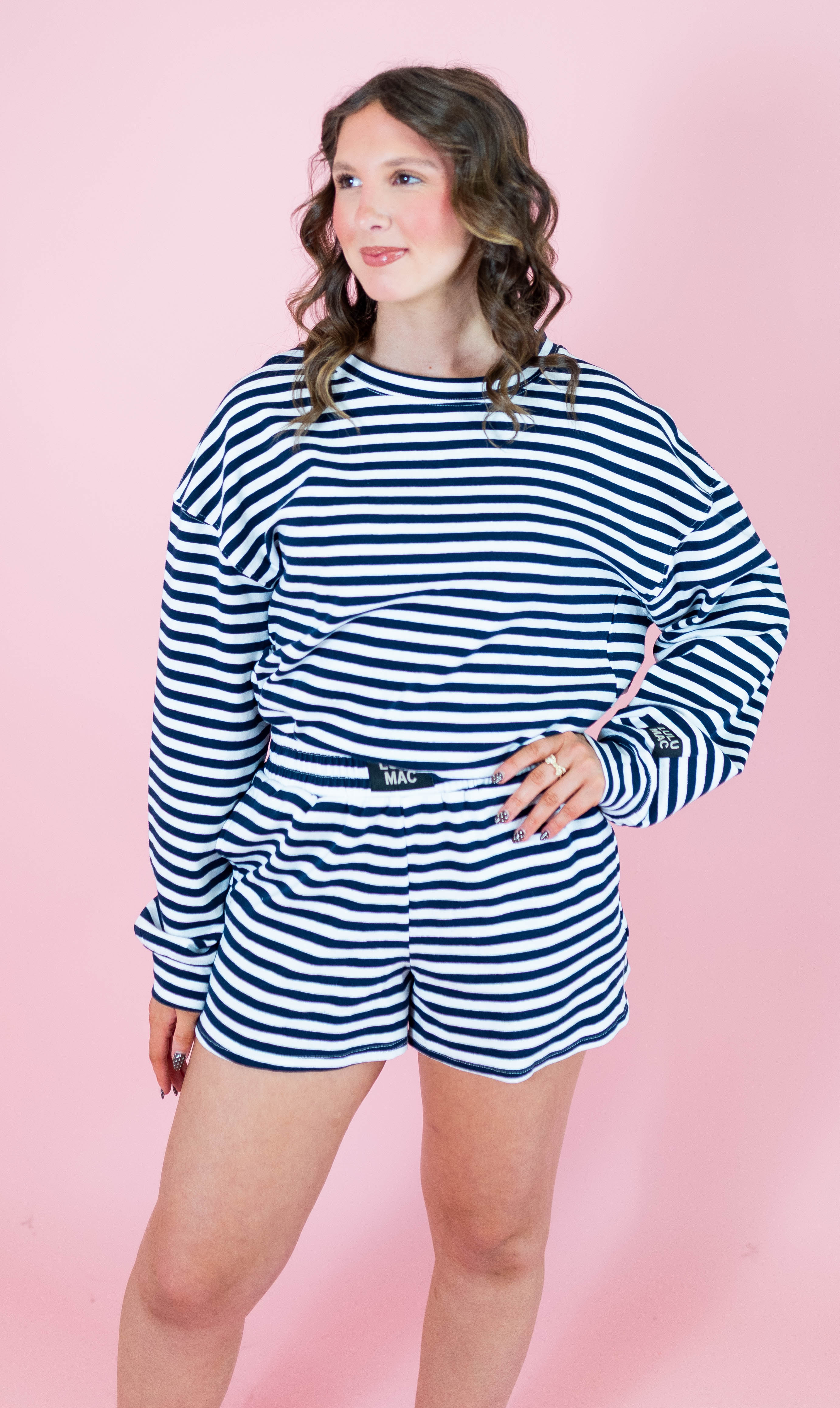Pair it with matching Stripe Society Pants to complete the set—or mix it with your favorite basics for a laid-back yet polished look.