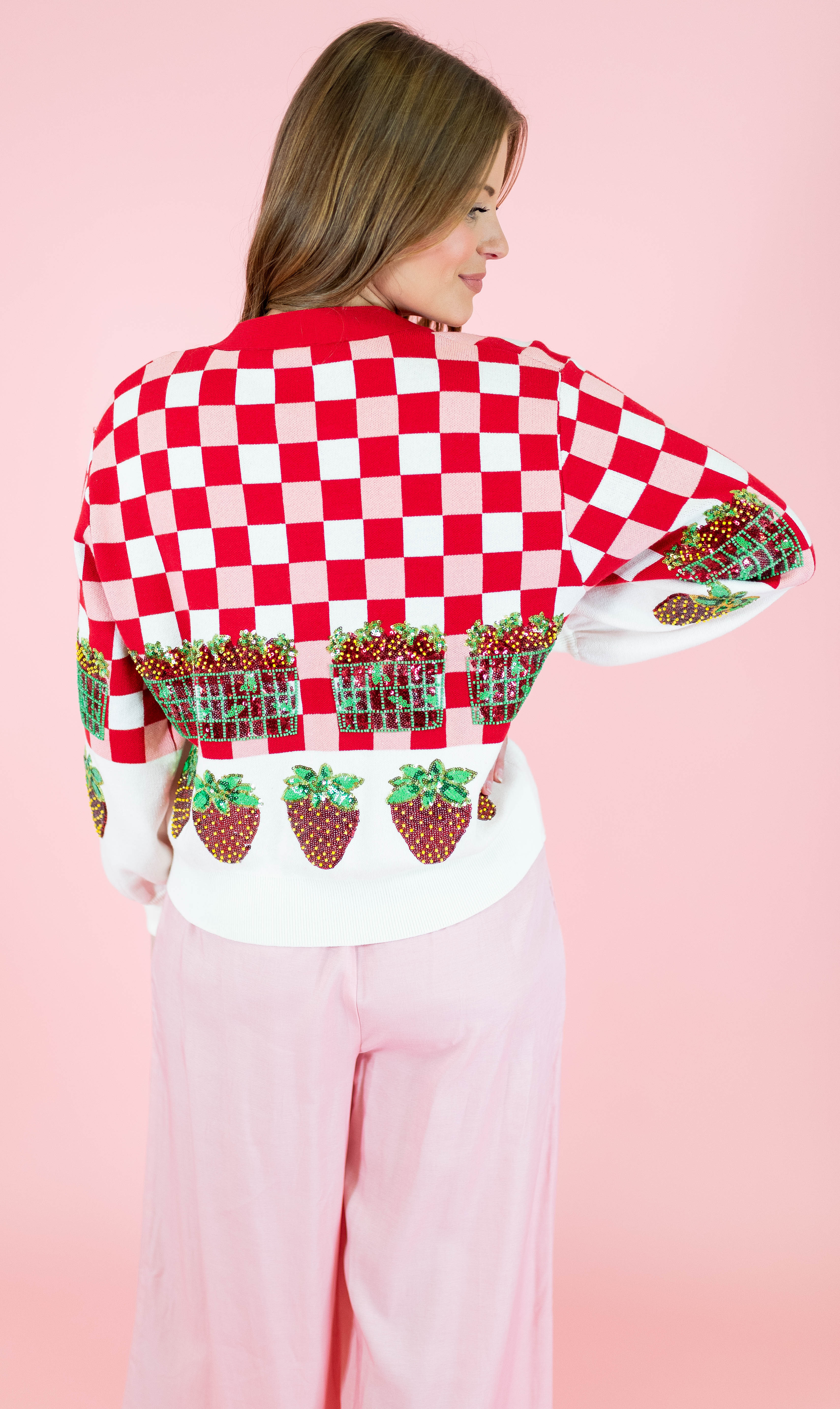 Queen Of Sparkles: Checkered Strawberry Button Up Cardigan