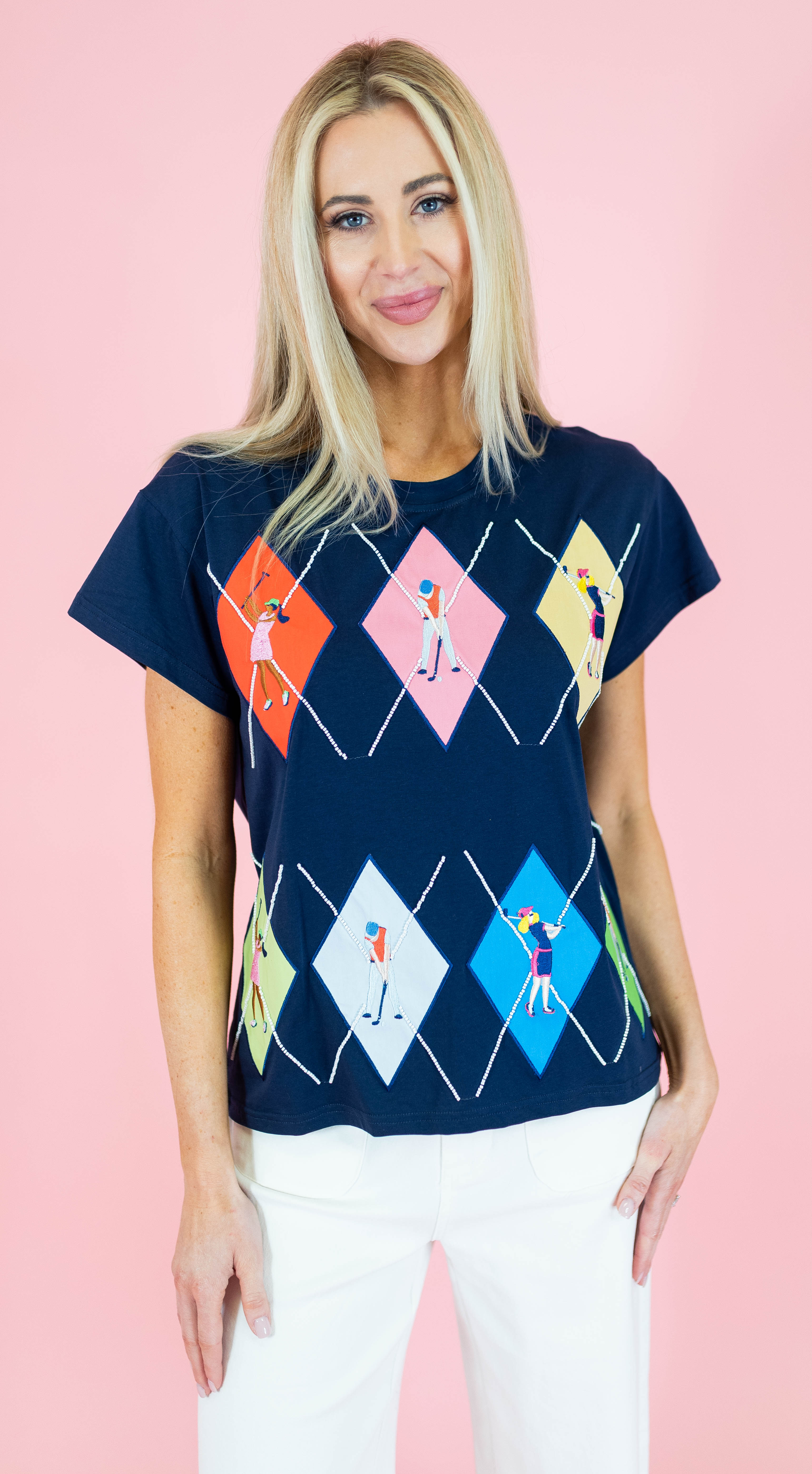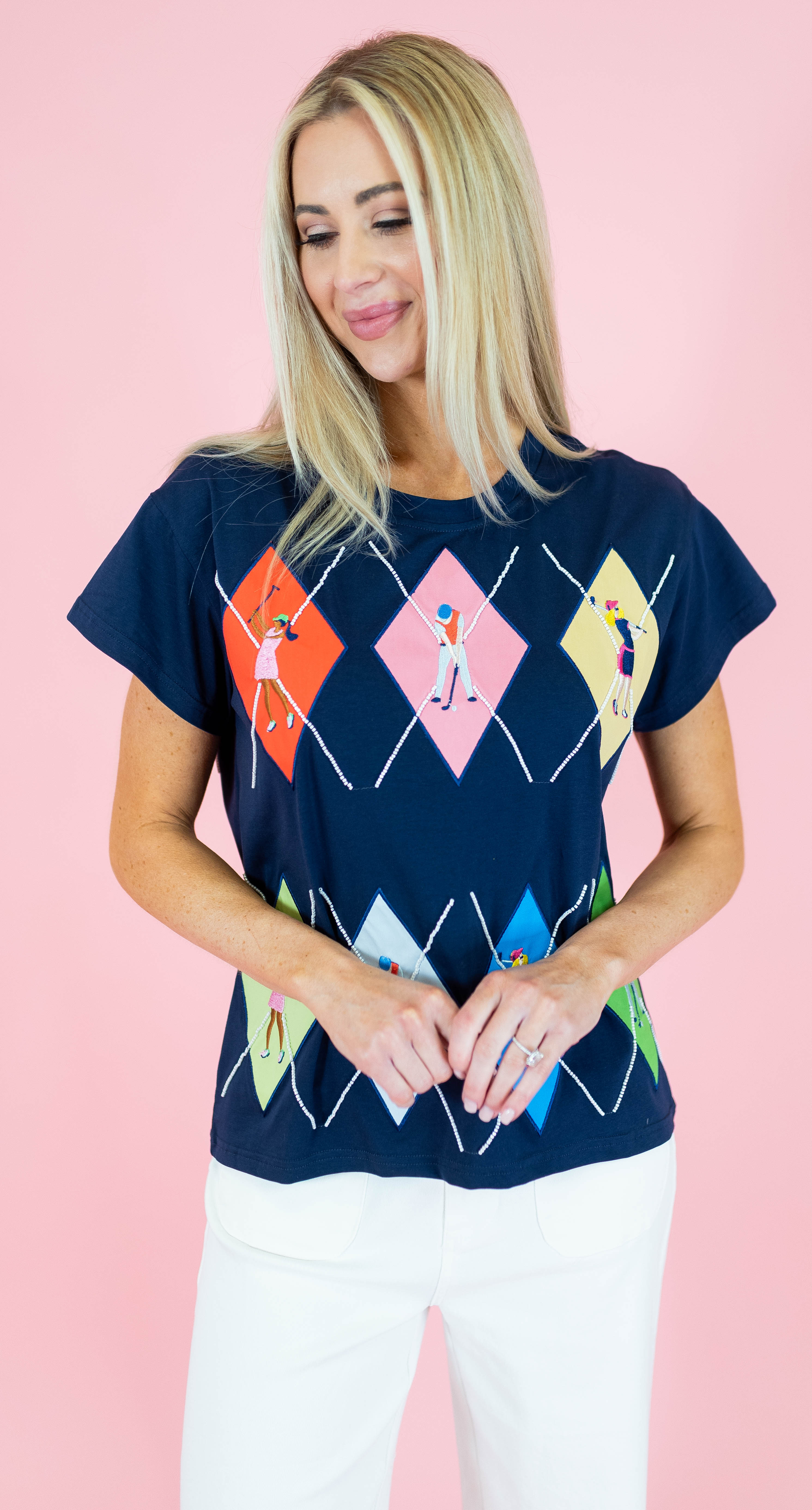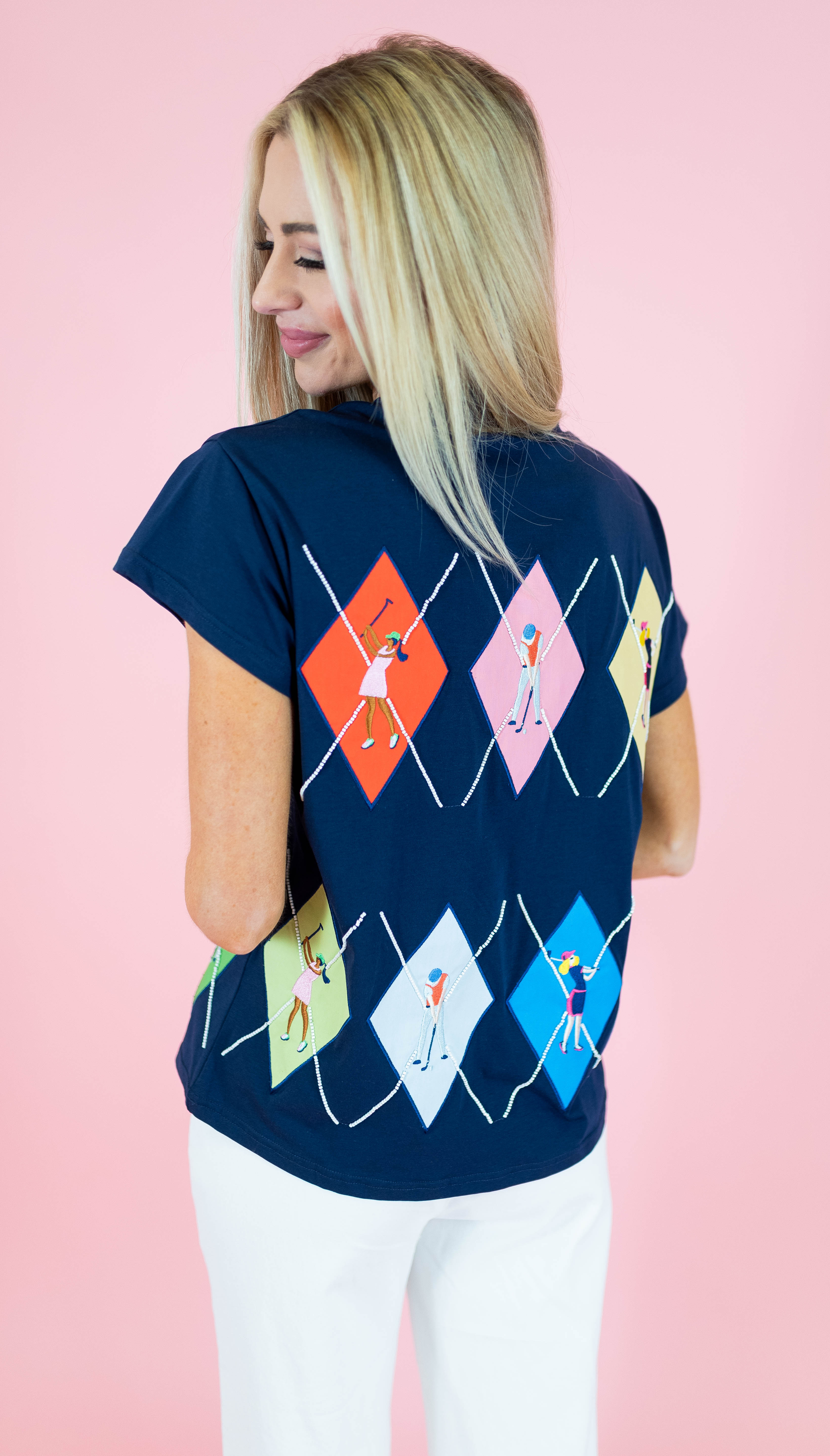 Queen Of Sparkles: Navy Multi Argyle Golfer Tee