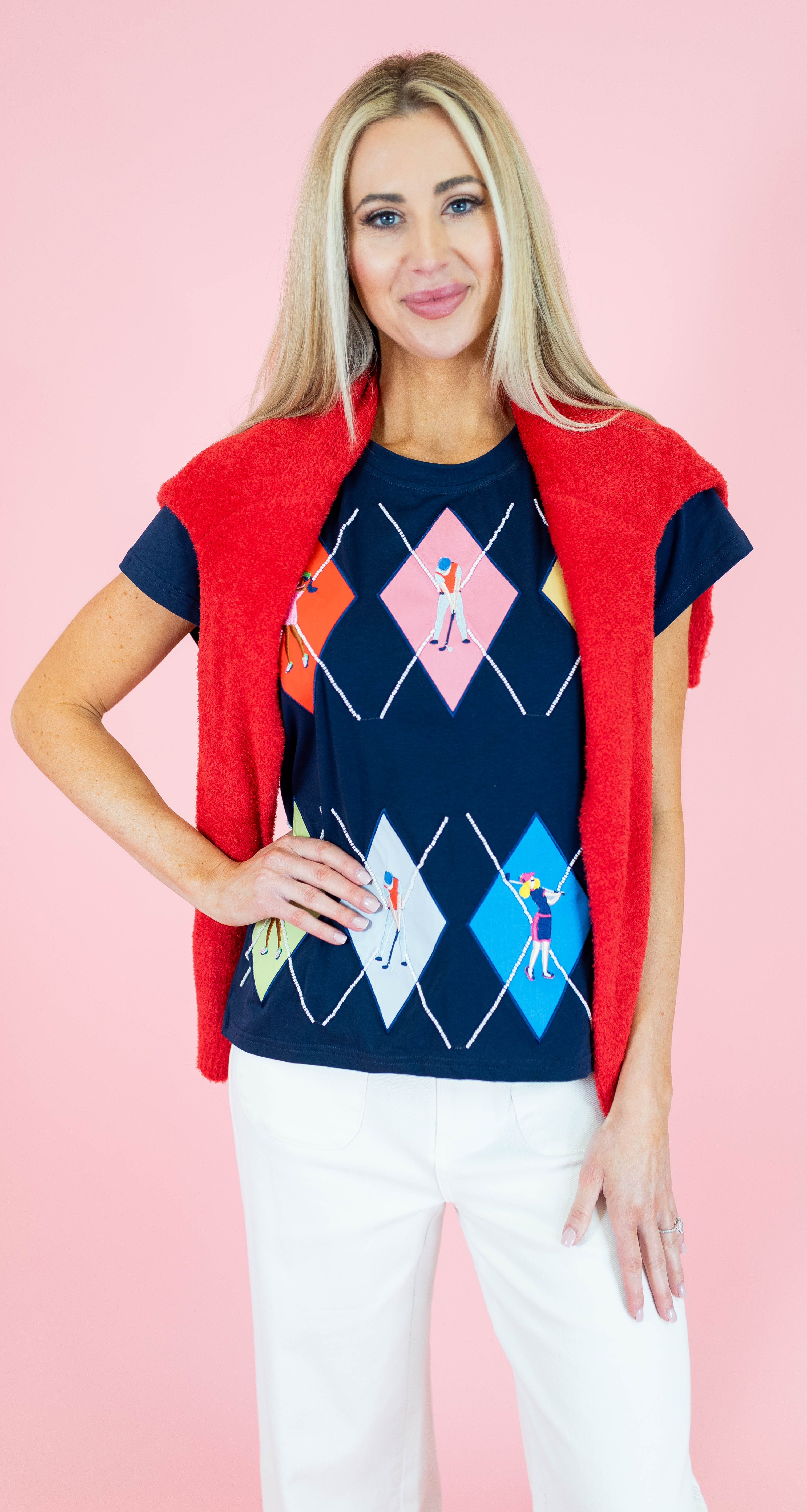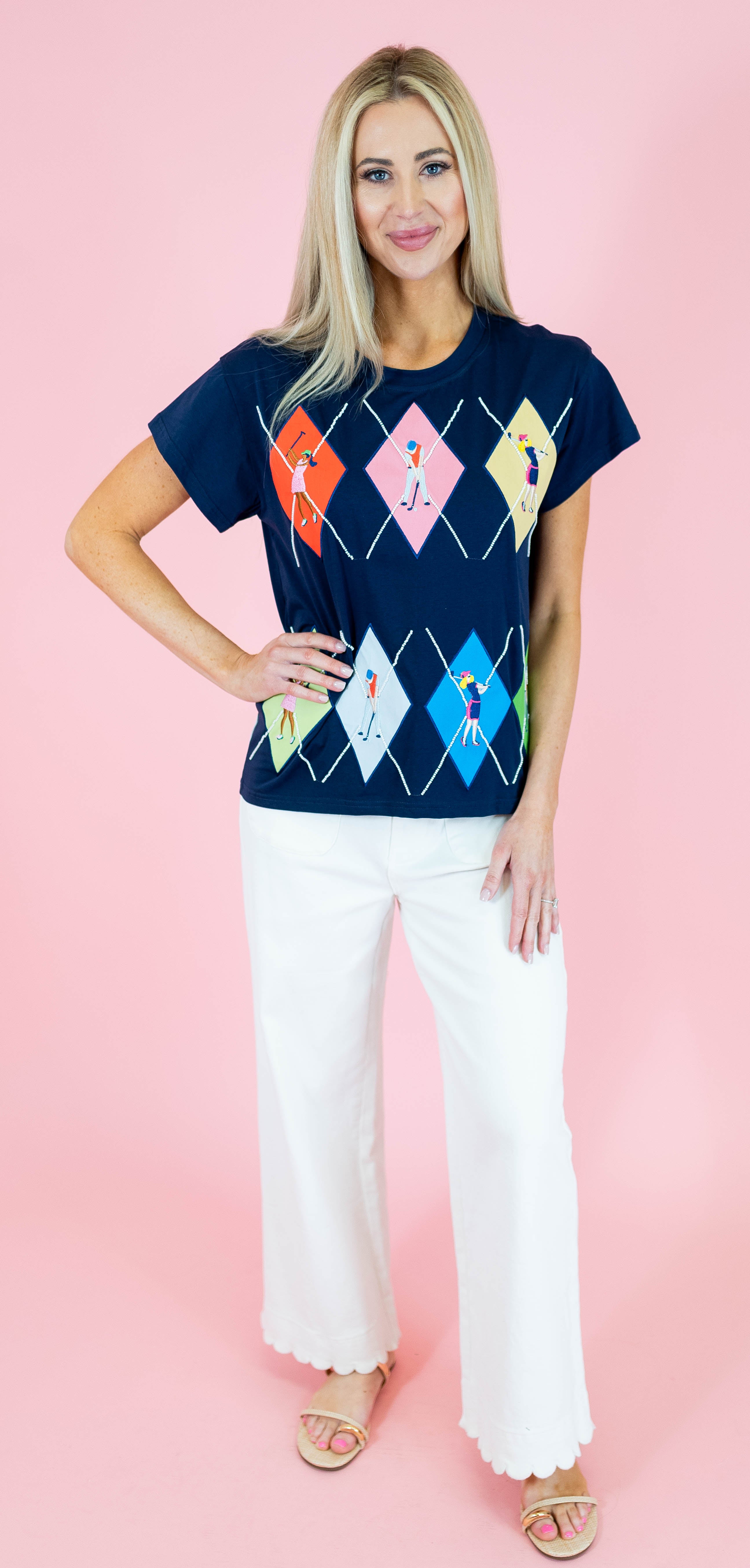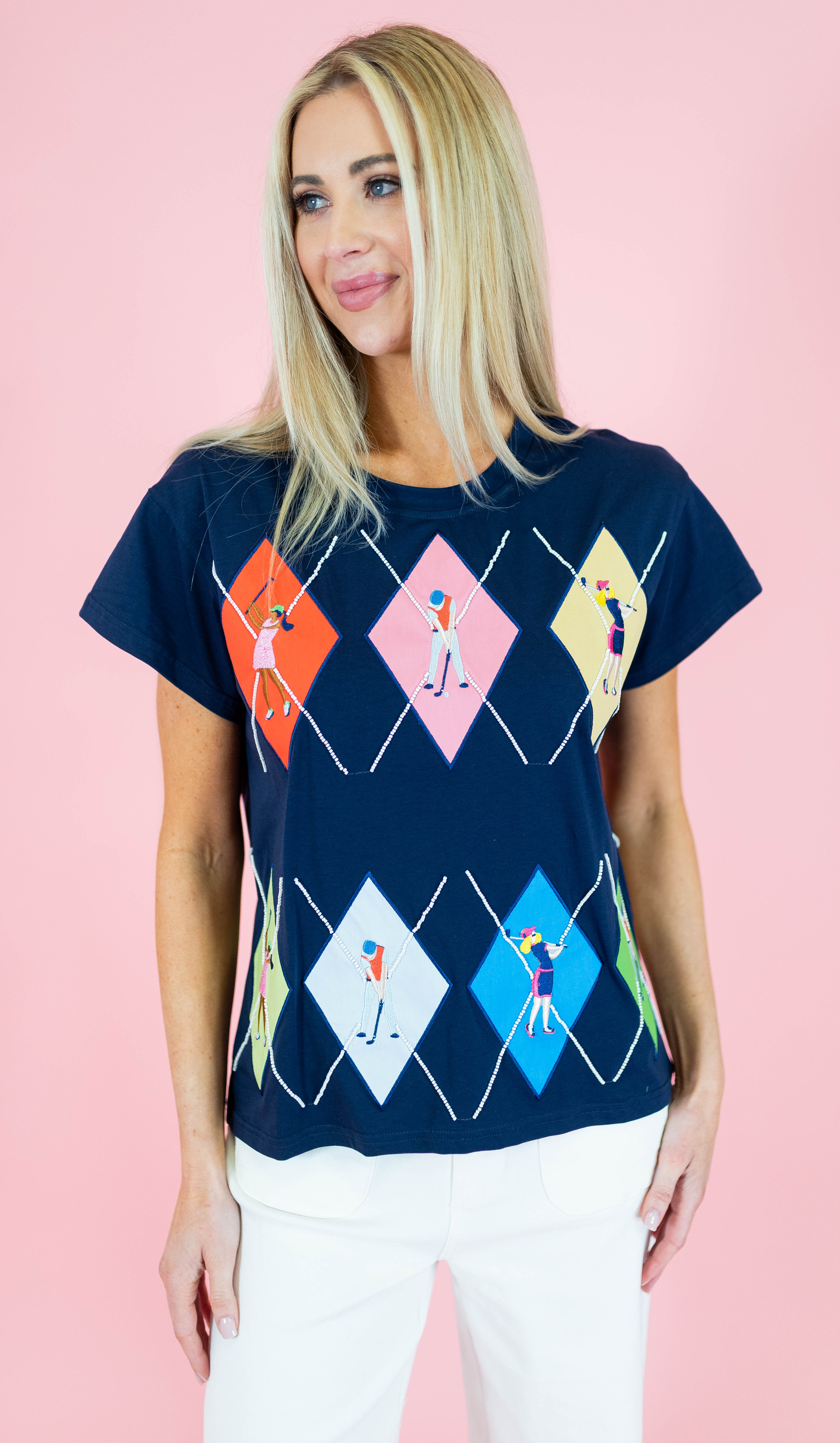 Queen Of Sparkles: Navy Multi Argyle Golfer Tee