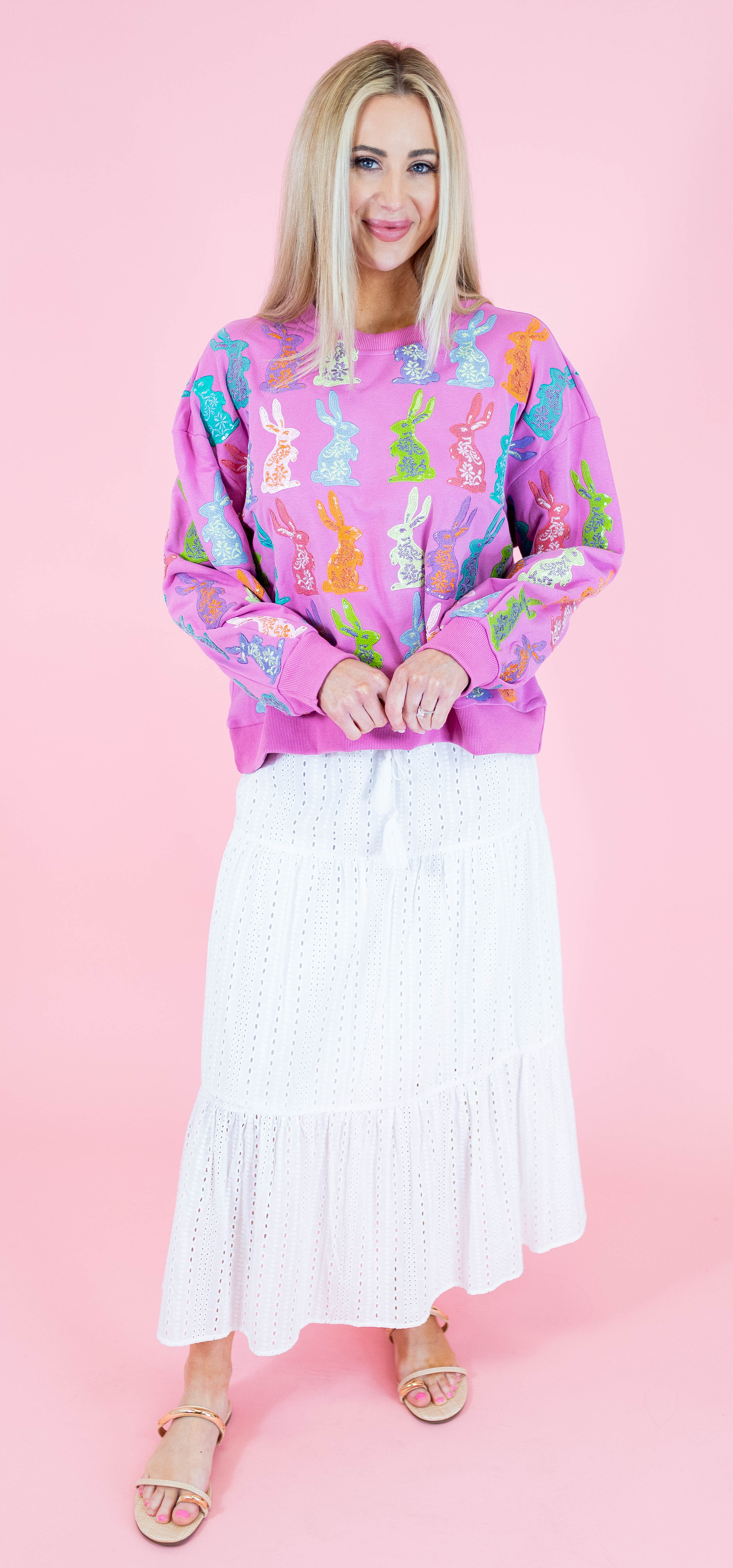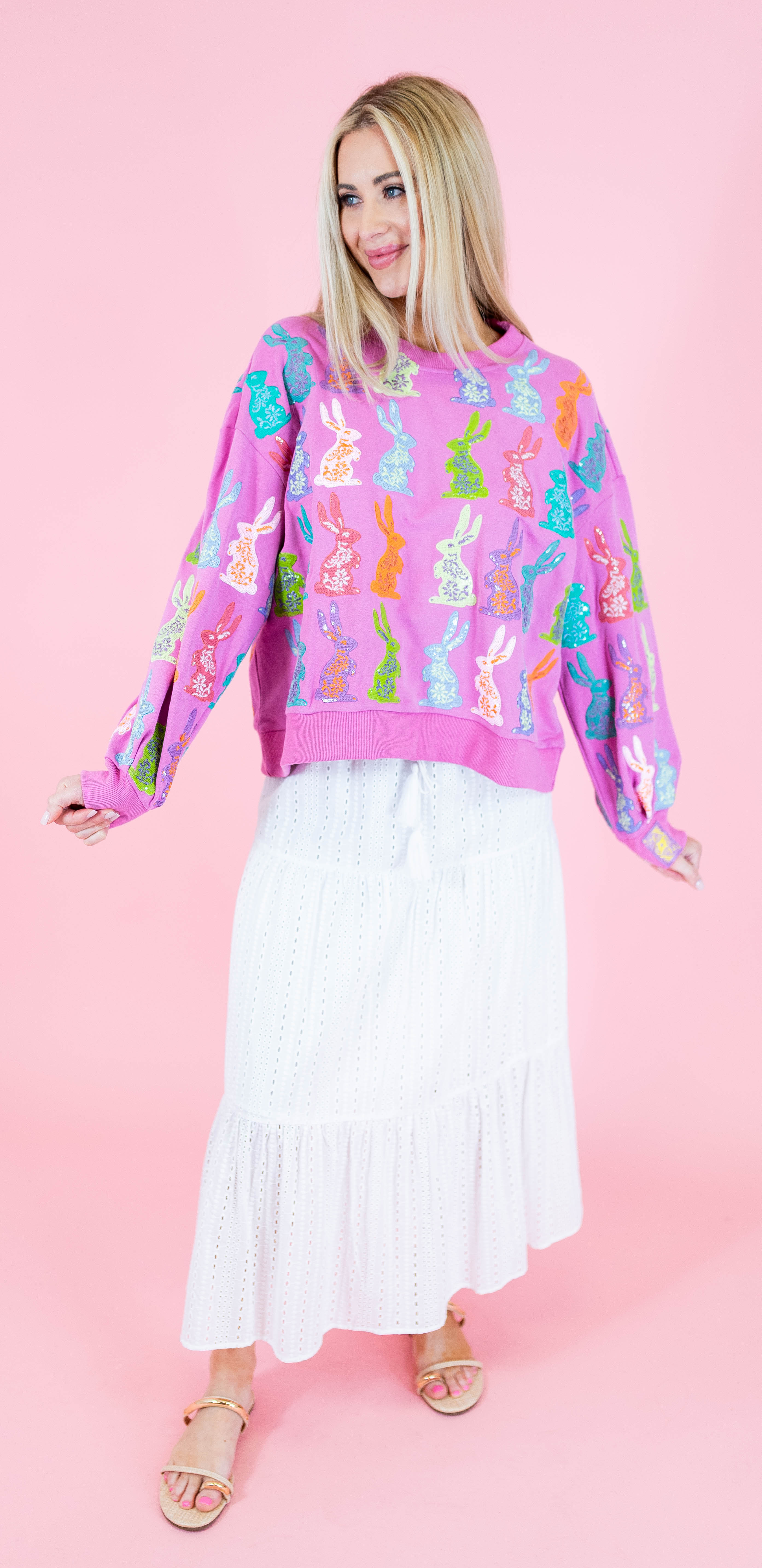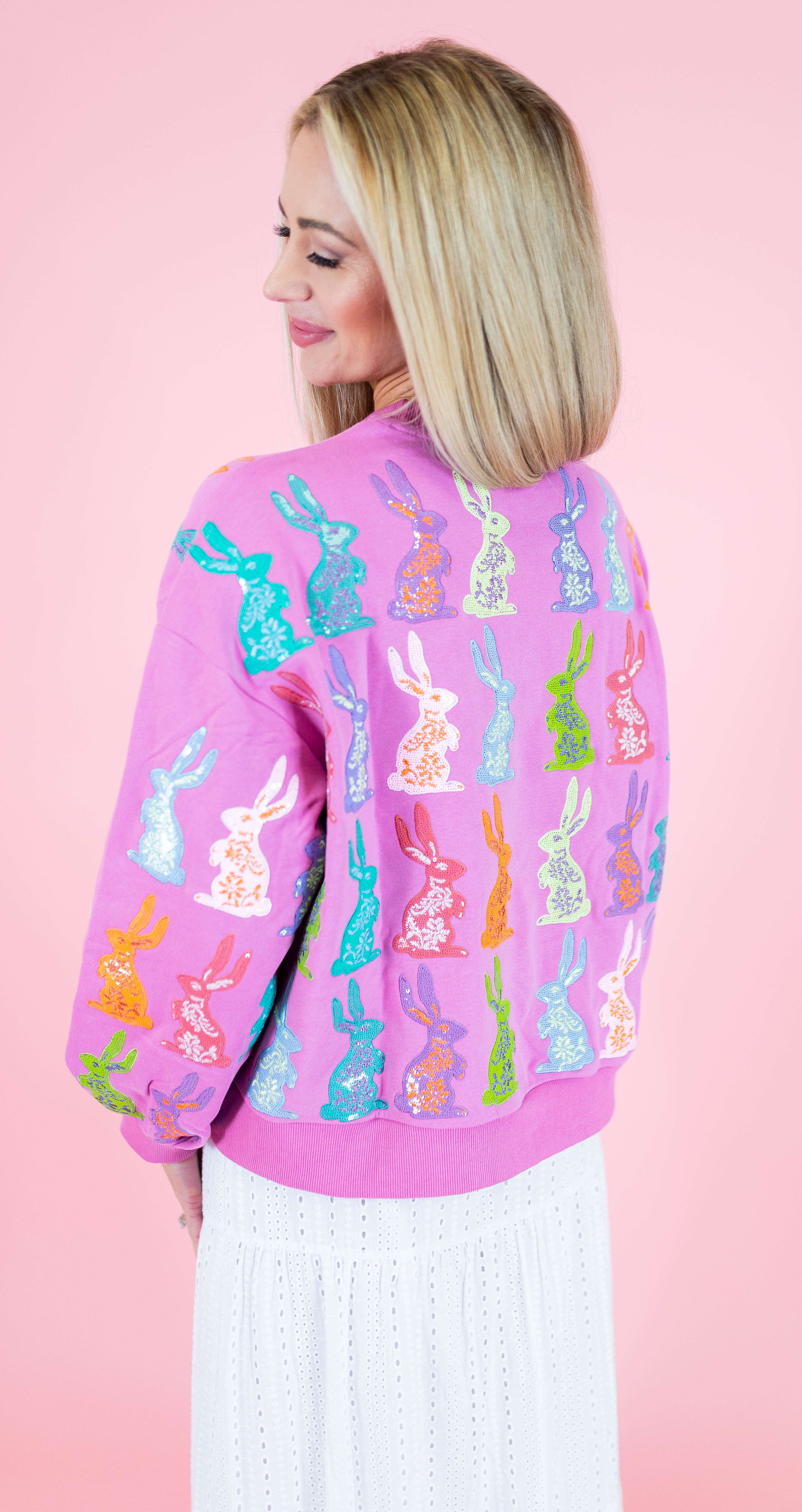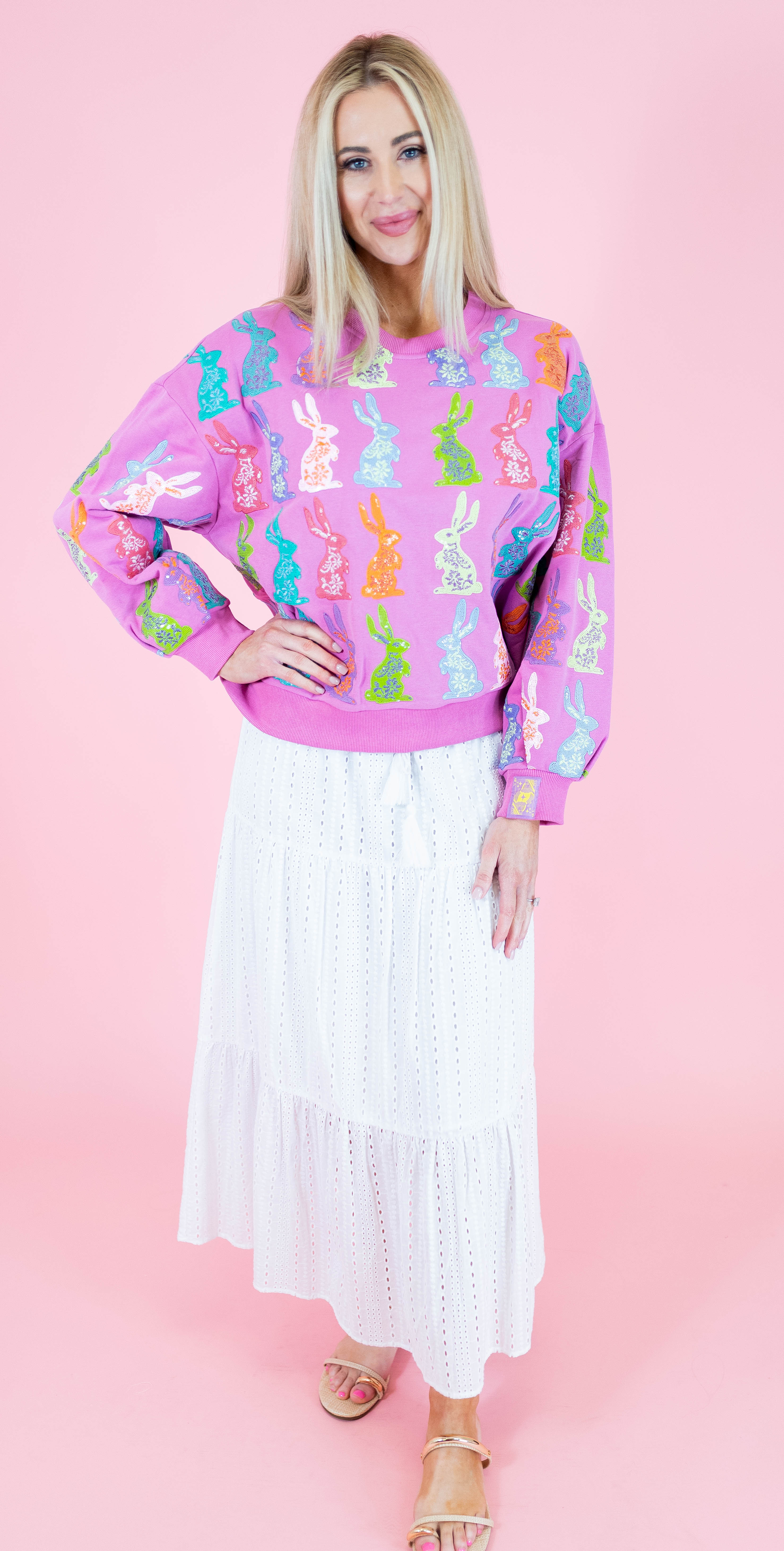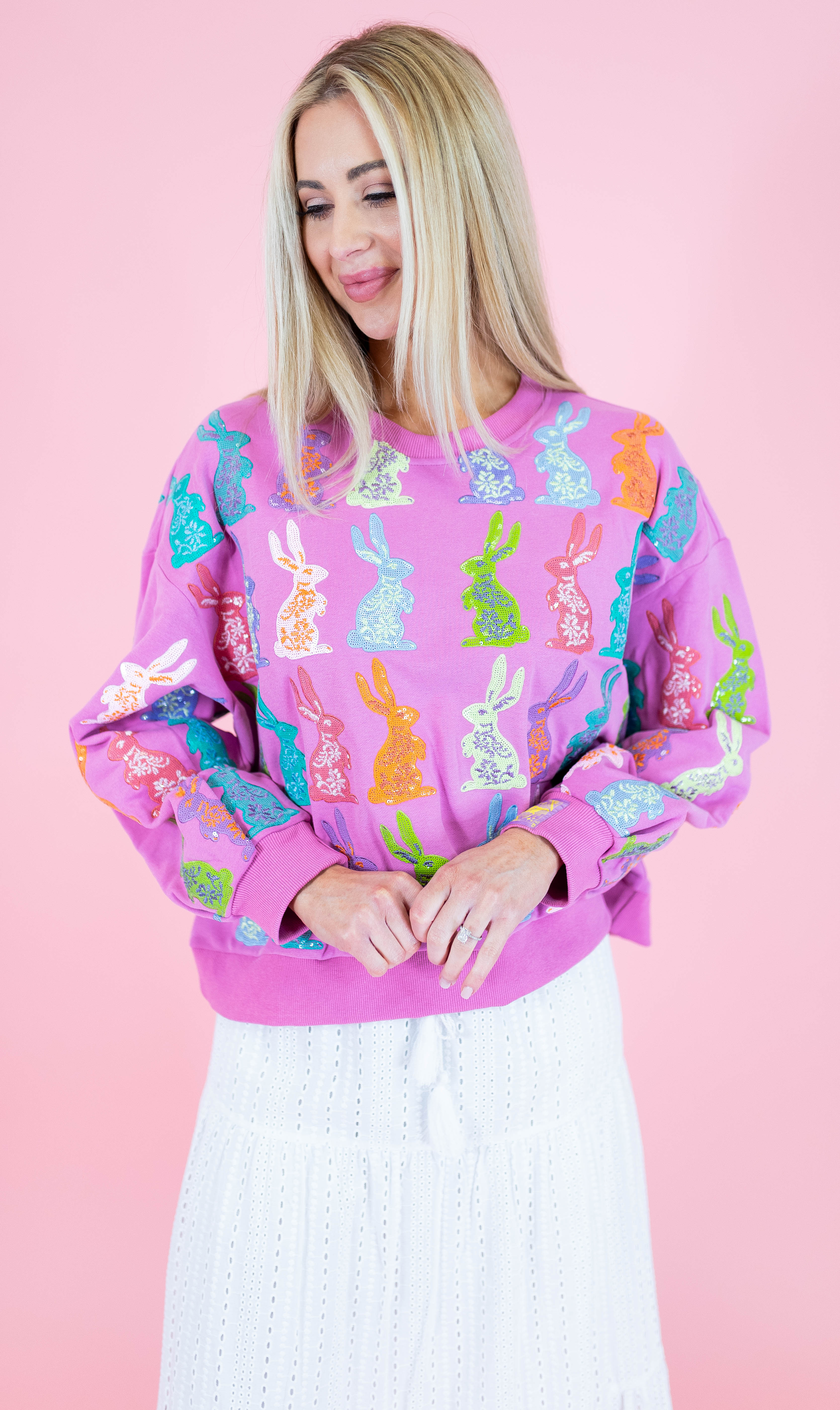 Queen Of Sparkles: Purple Multi Easter Bunny Sweatshirt