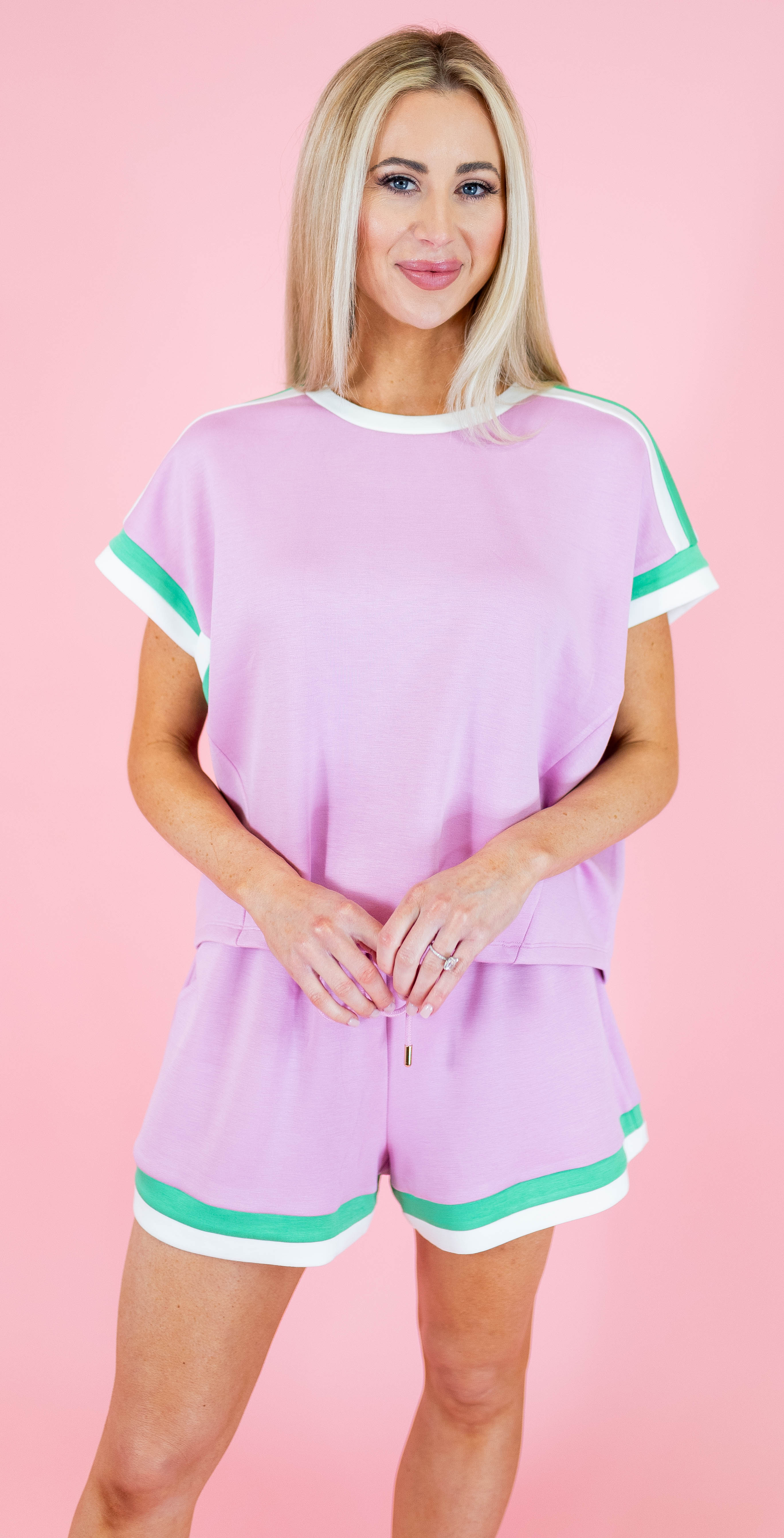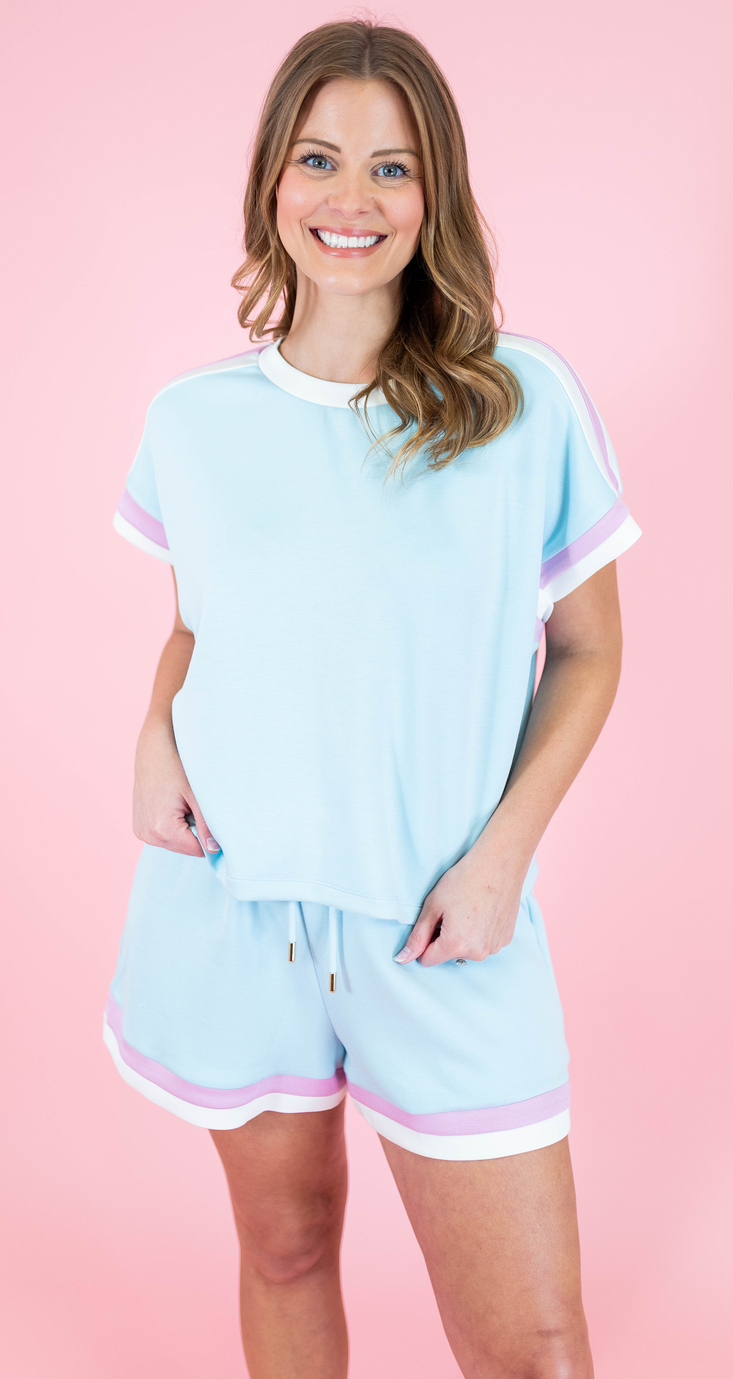 Refresh your spring wardrobe with this breezy knit top! Crafted in soft, breathable fabric, it's the perfect layering piece for mild weather days. Available in cheerful light blue and light pink, this short-sleeve essential pairs beautifully with our matching spring shorts for an effortless, coordinated look. Whether you're running errands or meeting friends, you'll love how comfortable and put-together you feel.