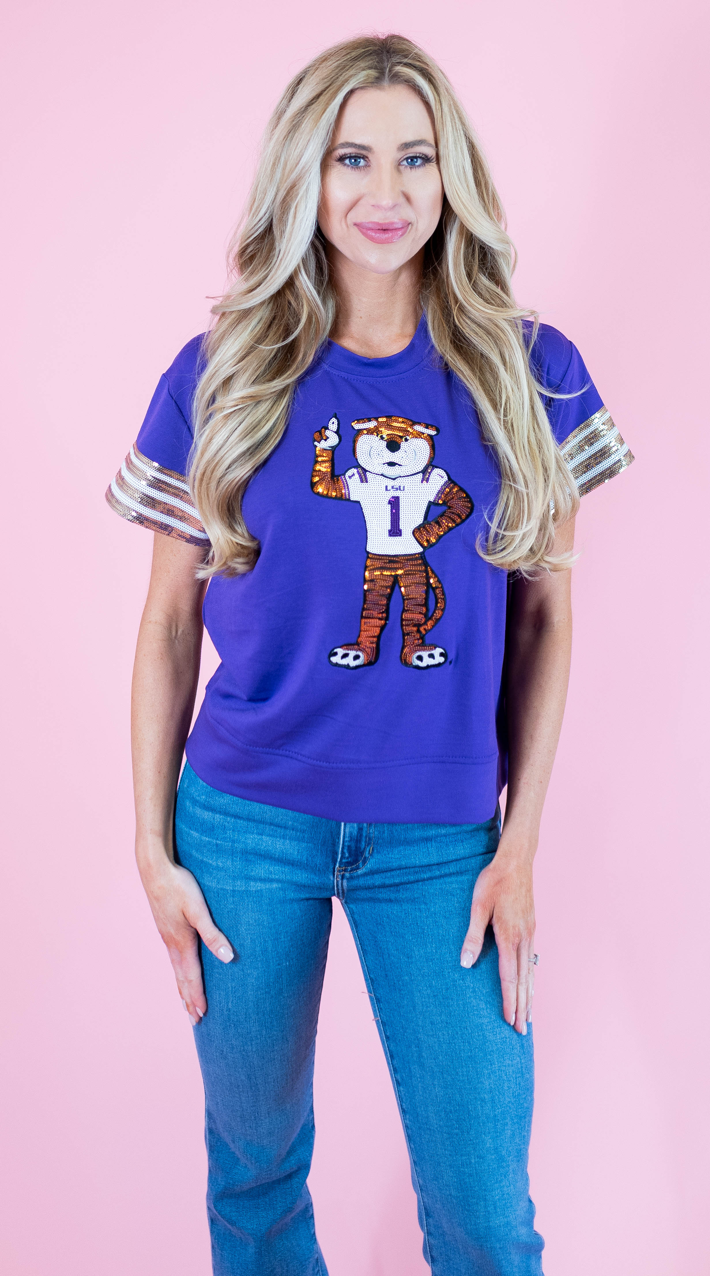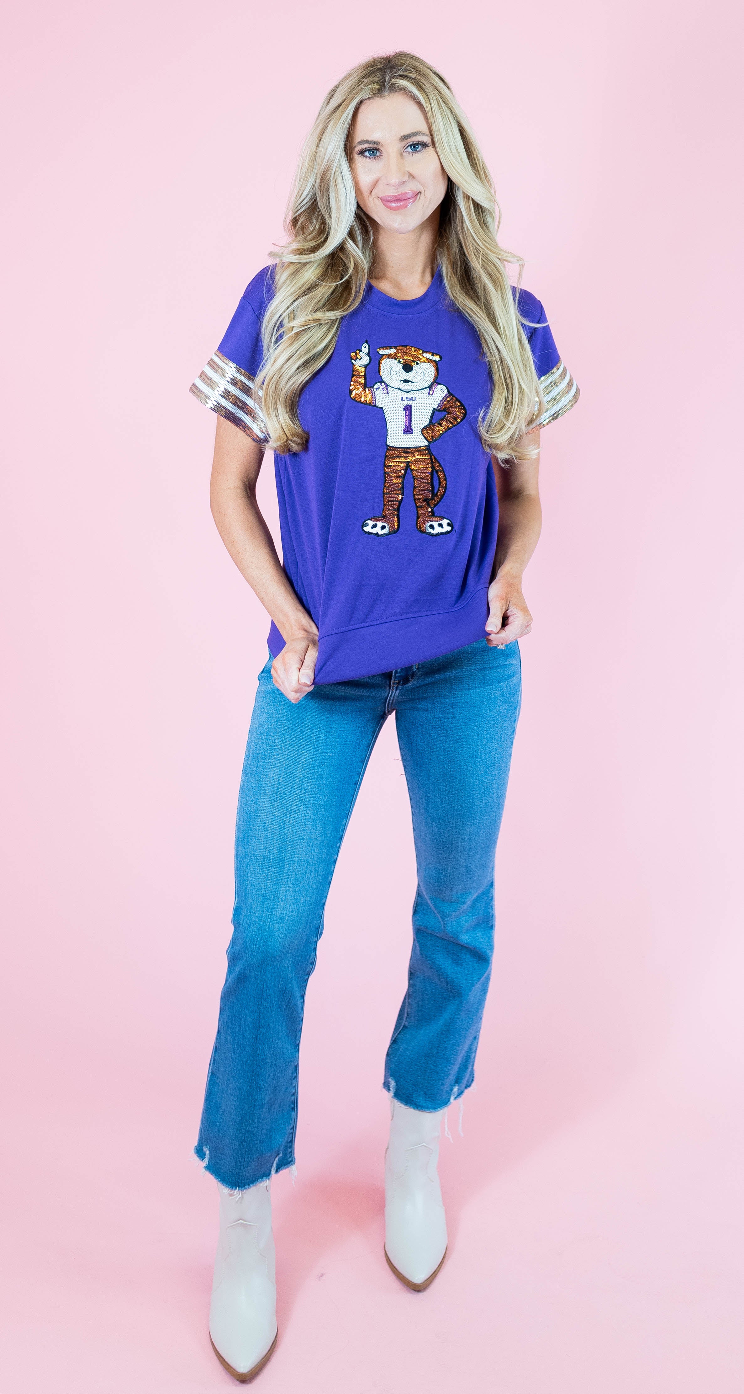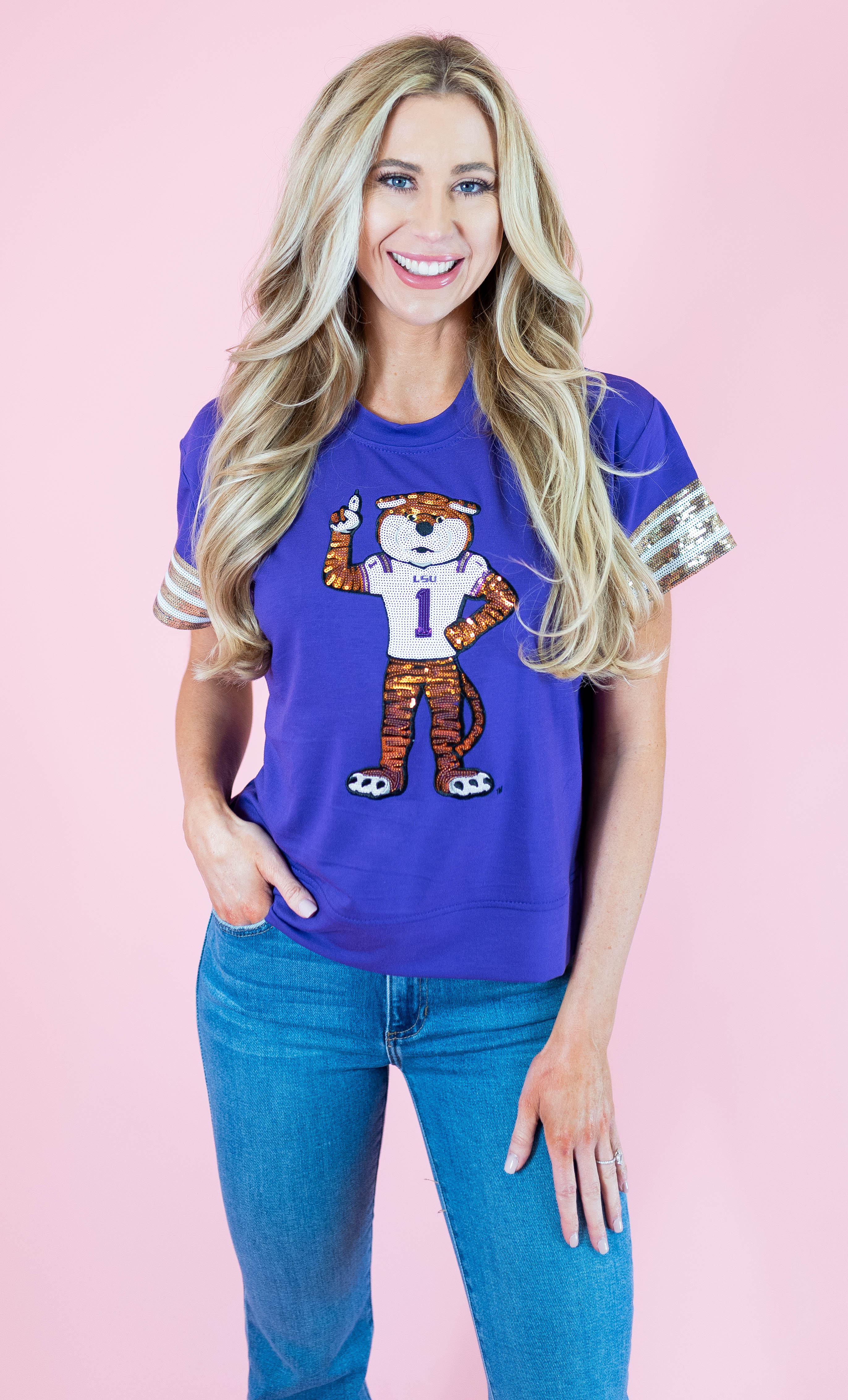 Show your LSU pride with this iconic mascot tee featuring Mike The Tiger. Perfect for game days, campus wear, or any occasion where you want to rep your team in style. The classic design captures the spirit of LSU athletics with vibrant color and timeless appeal. Comfortable, versatile, and unmistakably Tigers—this is a must-have for loyal fans and alumni alike.