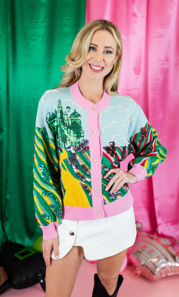 Queen Of Sparkles: Licensed Colorblock Glinda & Elphaba Button Up Cardigan