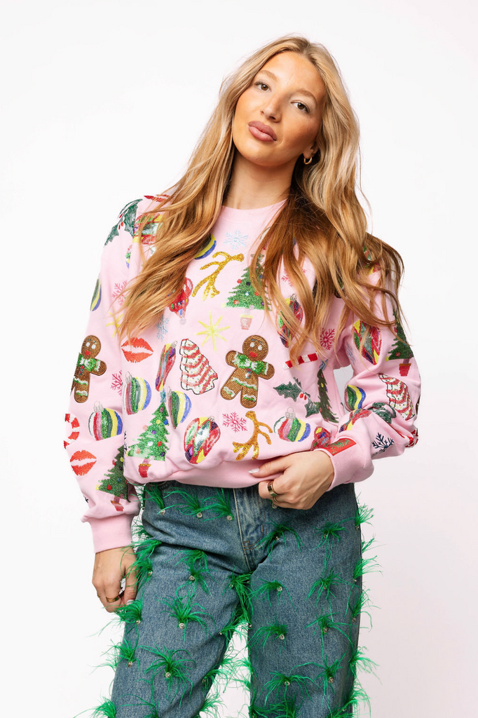 Queen Of Sparkles: Pink Christmas Icons Sweatshirt