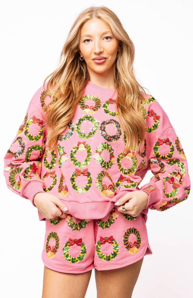 Queen Of Sparkles: Hot Pink Multi Wreaths Sweatshirt